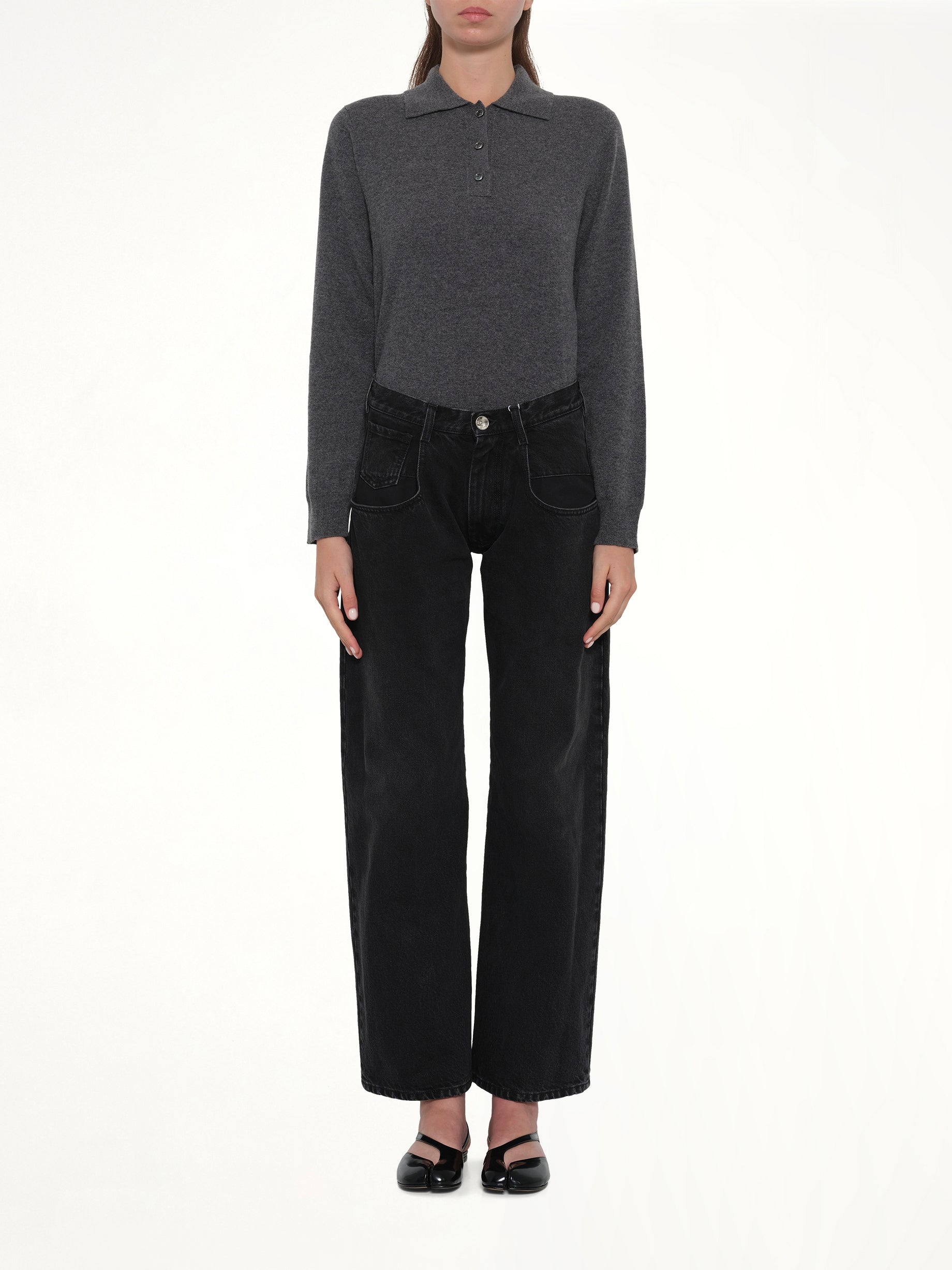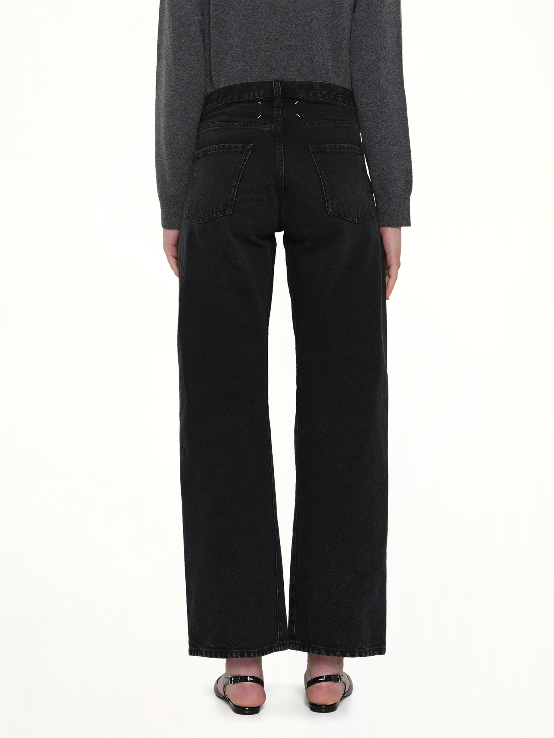 Maison Margiela's Straight Jeans with Contrasted Pockets in Black is a stylish and modern addition to any wardrobe. These jeans offer a unique twist on a classic silhouette, featuring distinct pocket detailing that sets them apart.