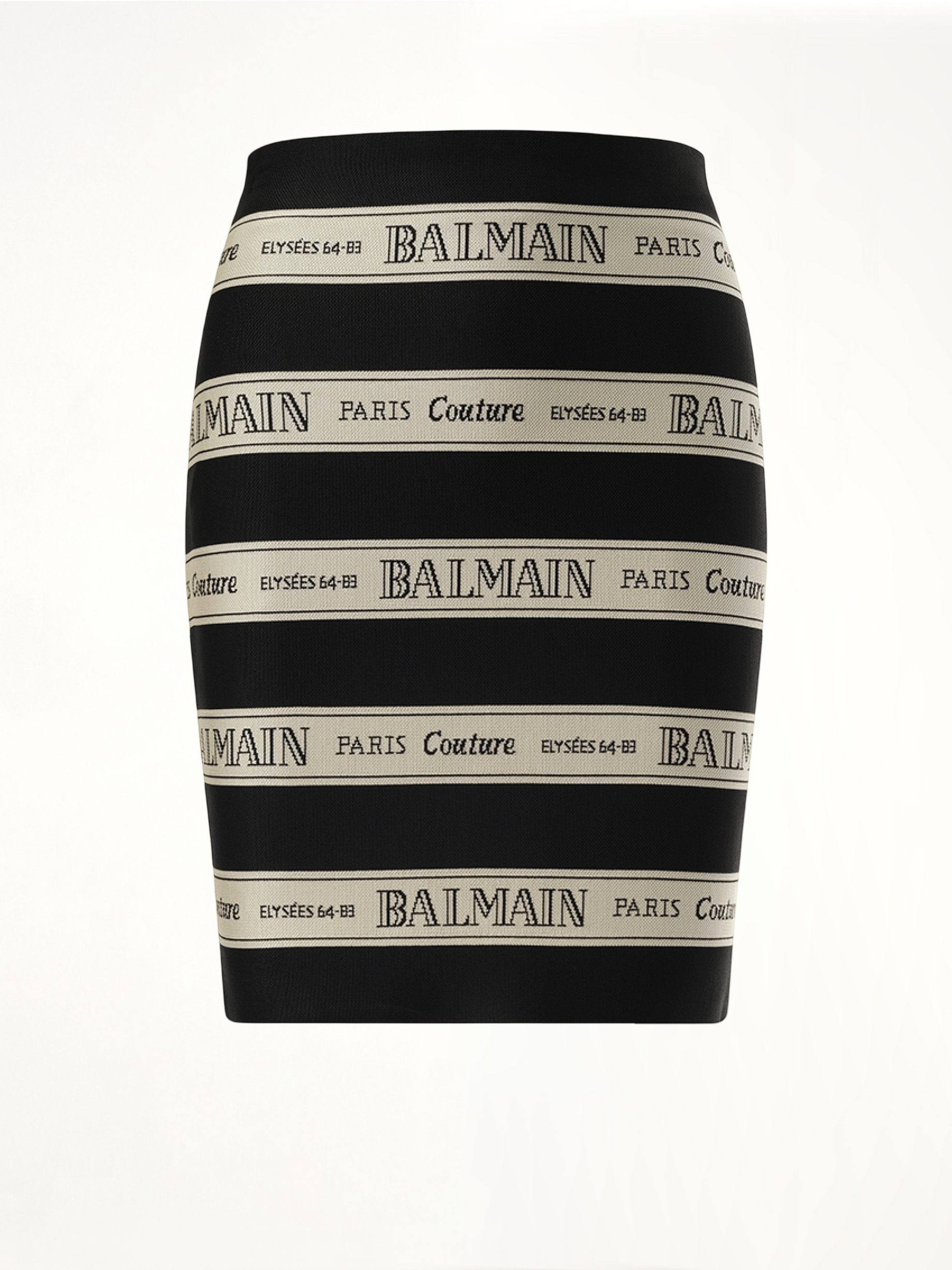 Expertly crafted from high-quality jacquard fabric, this Striped Balmain Short Skirt in Black/Beige offers a flawless fit and modern style. With its bold, contrasting stripes and flattering silhouette, this skirt is perfect for making a statement at any occasion.