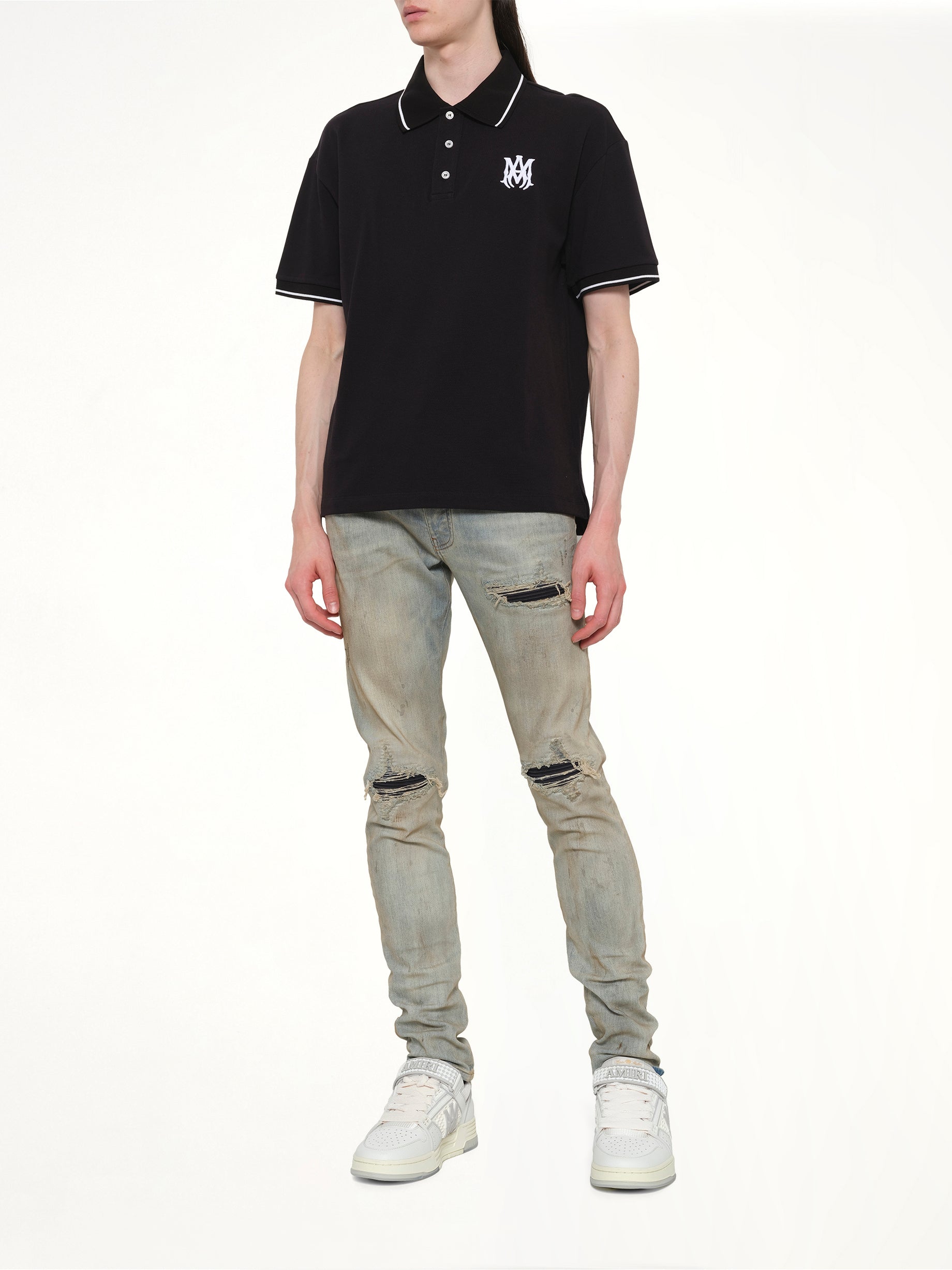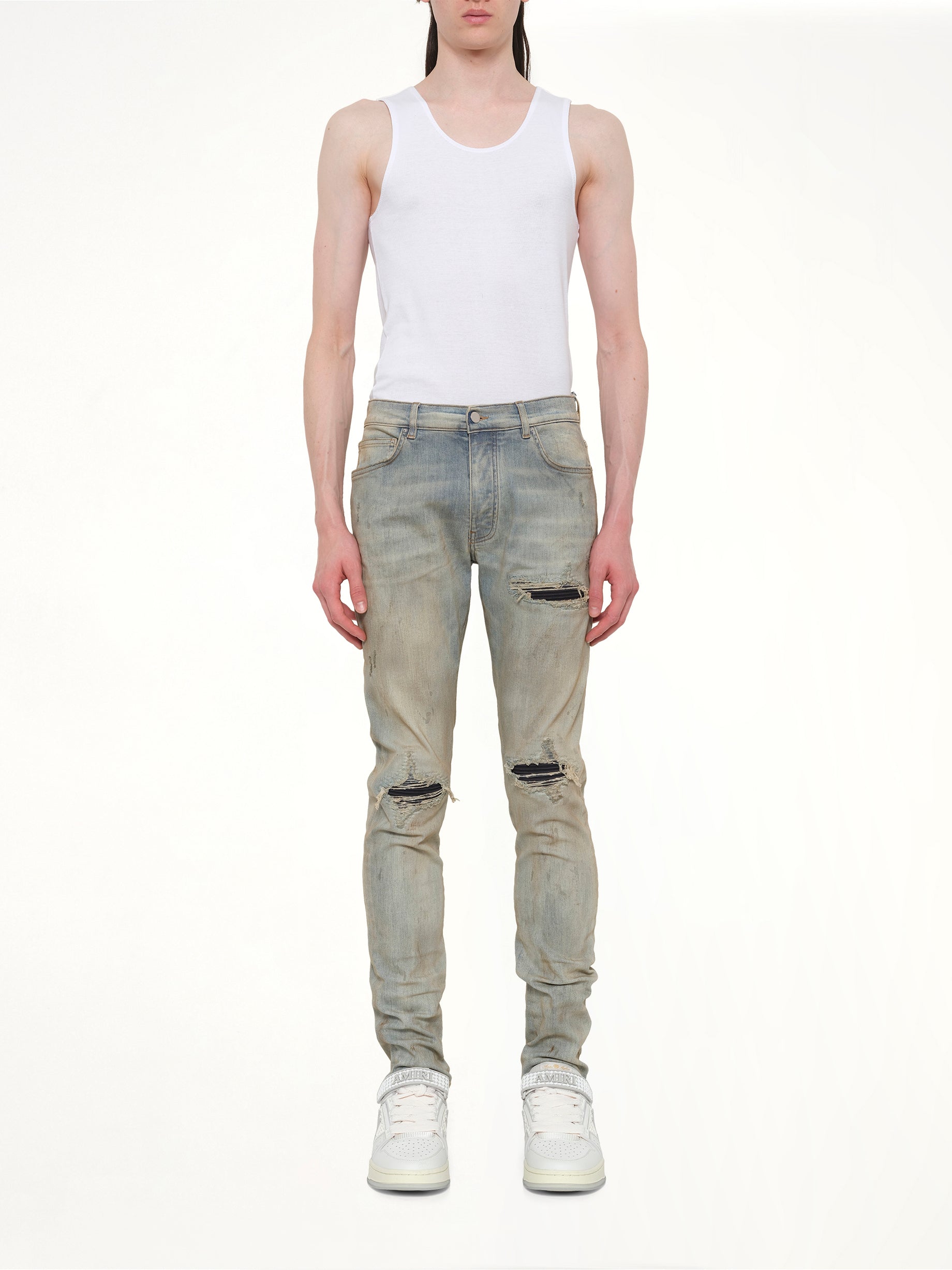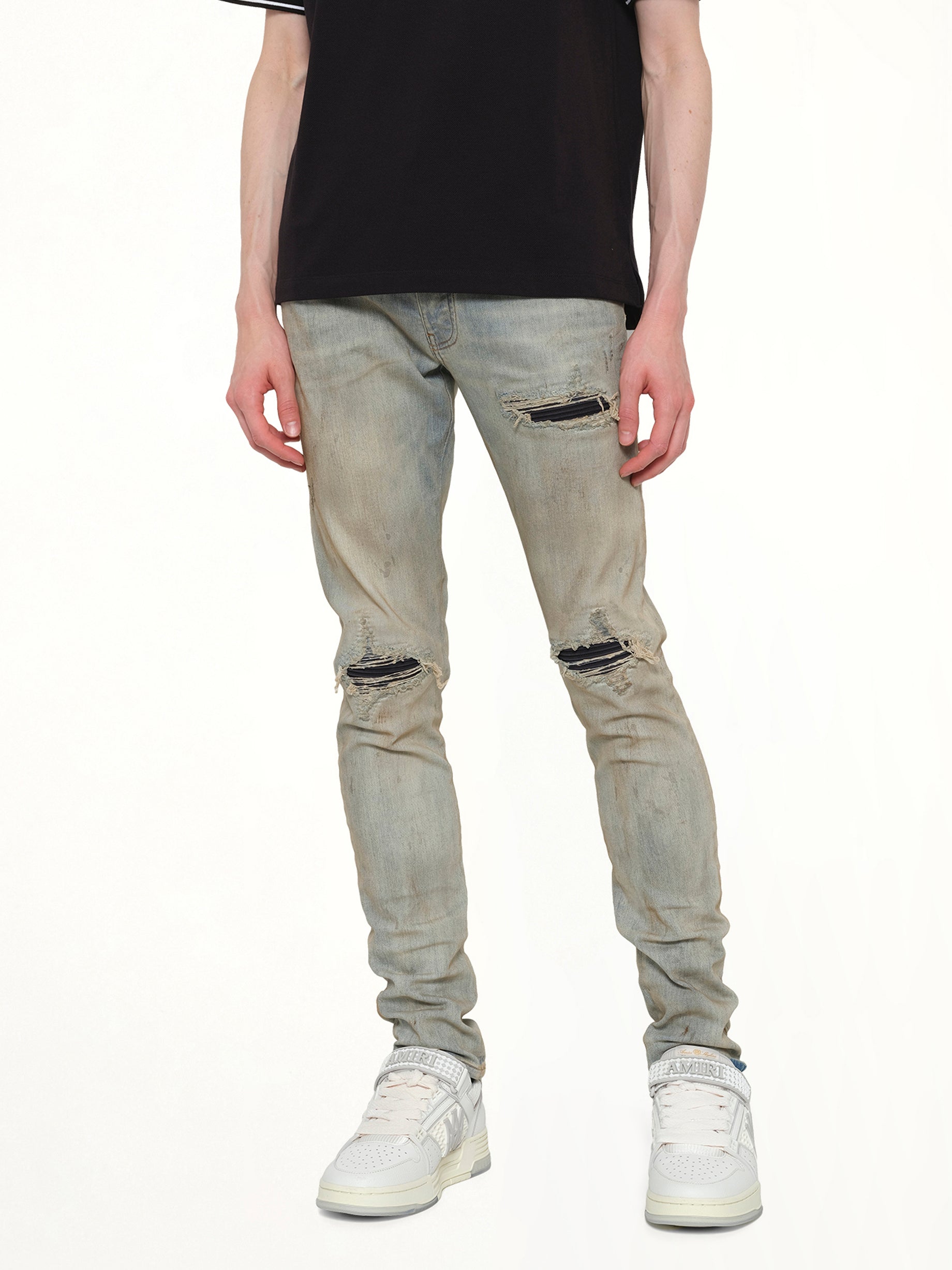 Amiri's Suede MX1 Jeans in Perfect Antique Indigo is a stylish blend of luxury and edge, offering a unique take on classic denim. These jeans feature intricate detailing and a distinctive wash that sets them apart.