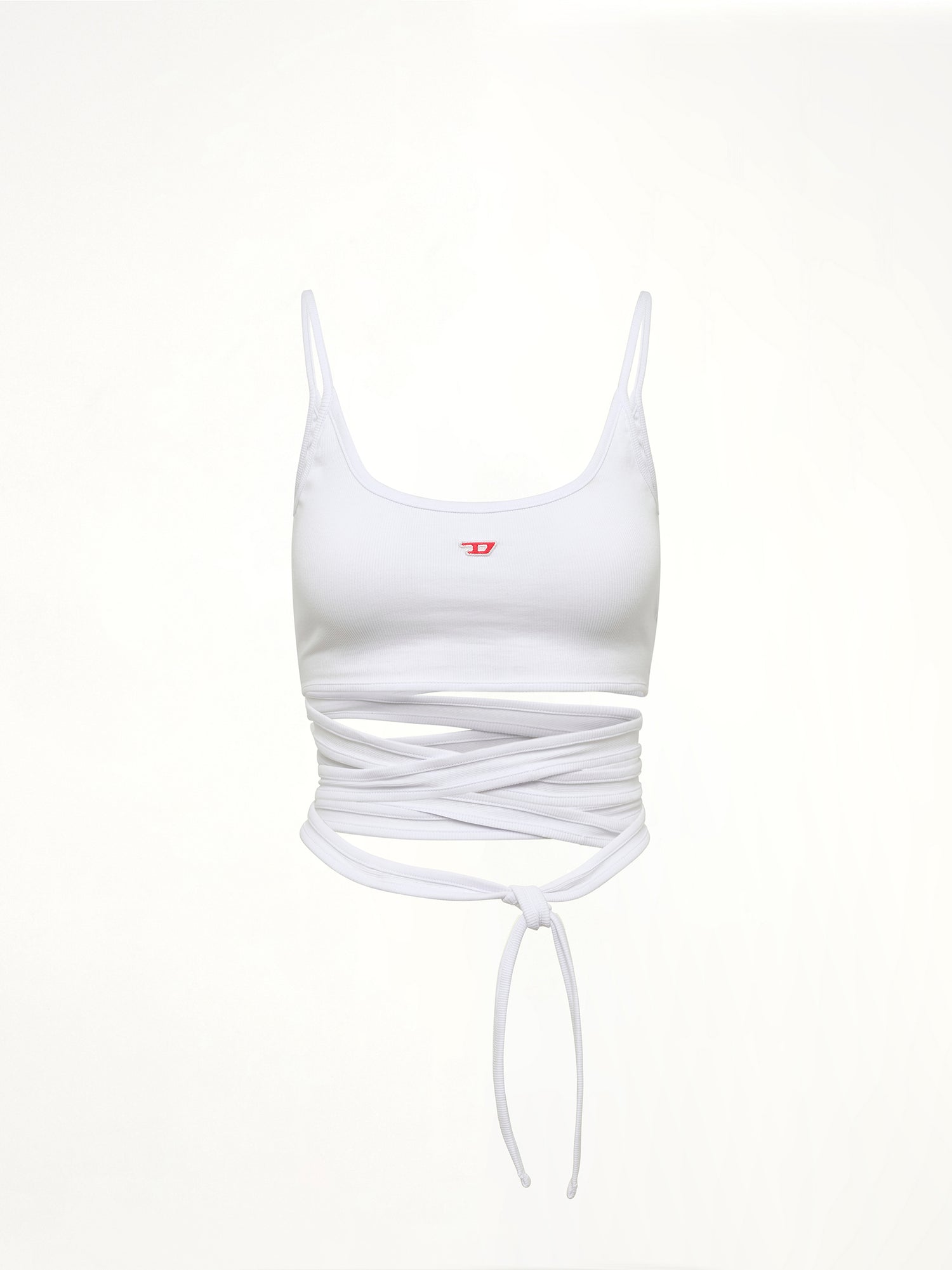 Diesel's T-LEYA-TAIL Top in White is a stylish and versatile addition to any wardrobe. This top combines modern design with a classic color, making it perfect for various occasions.