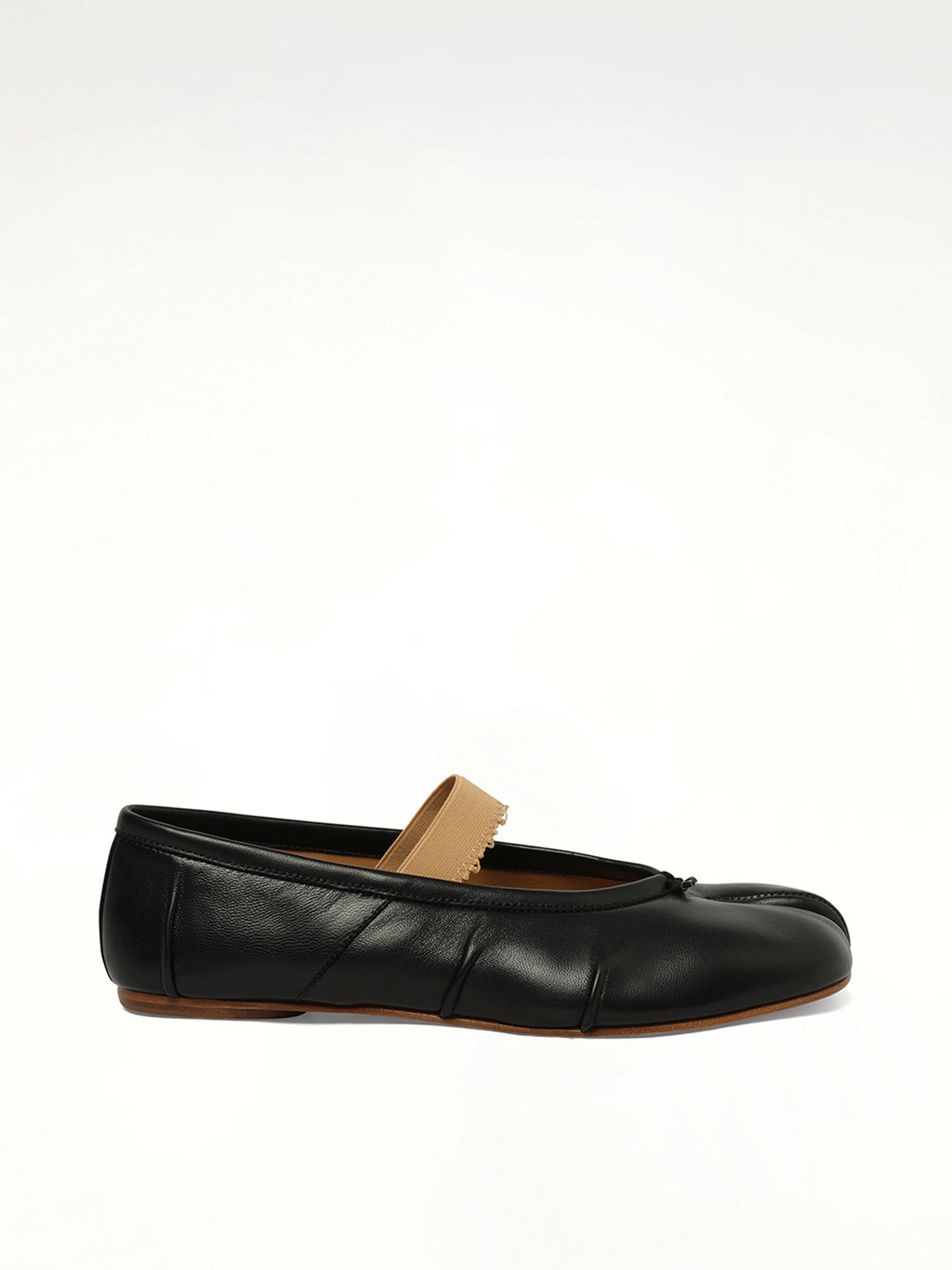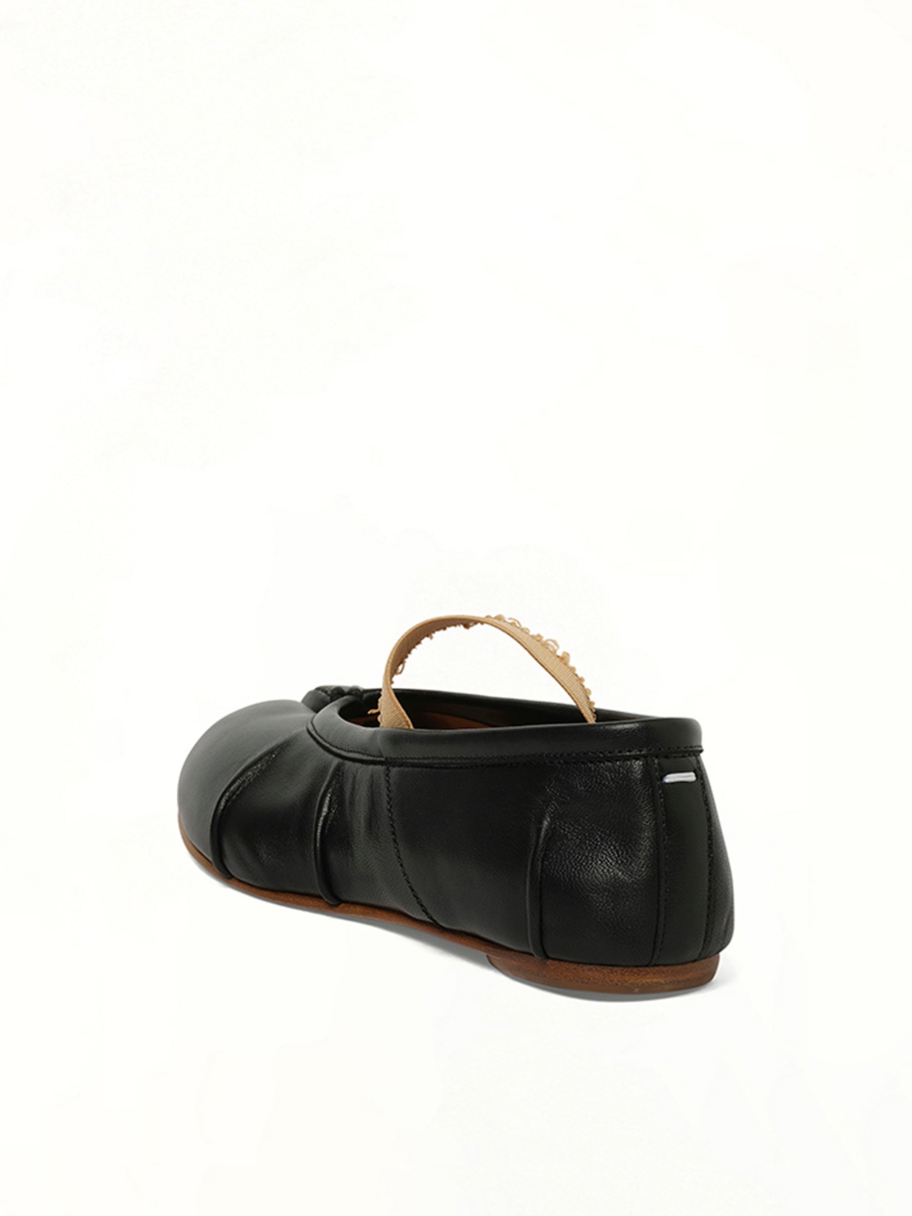 Tabi Ballerina Flat Elastic Band in Black/Nude