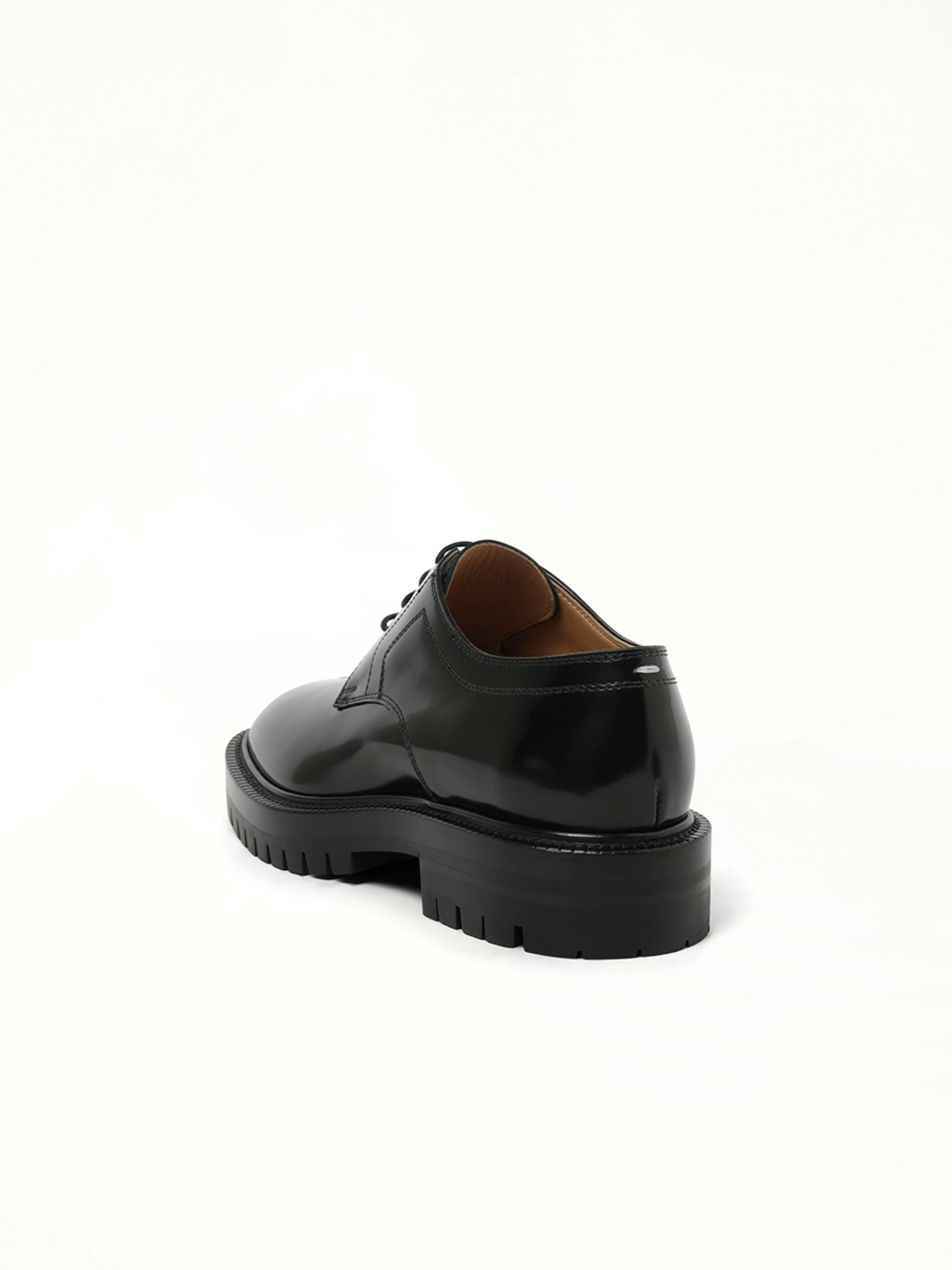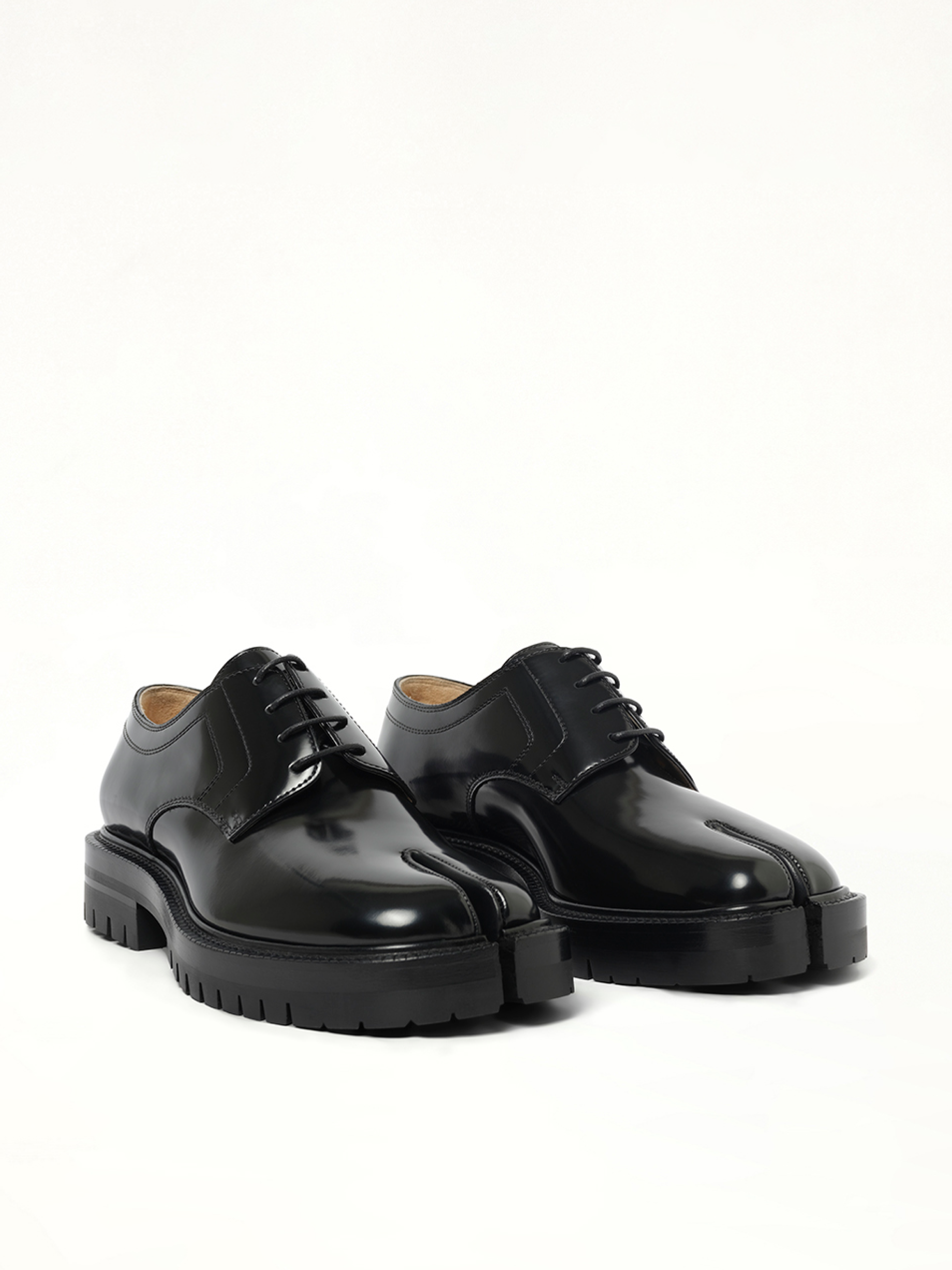 Maison Margiela's Tabi Lace-Ups Chunky Sole in Black is a bold reinterpretation of the classic lace-up shoe, featuring the iconic split-toe design. The chunky sole adds a modern edge, making it a standout piece for any fashion-forward wardrobe.