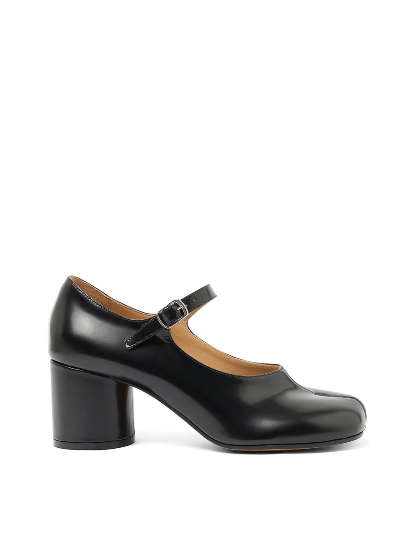 Elevate your style with our Tabi Mary Jane 60cm Heel in Black. These shoes offer effortless sophistication for any occasion. The unique Tabi design adds a touch of edginess to your look. Made with high-quality materials, these heels are built to last.