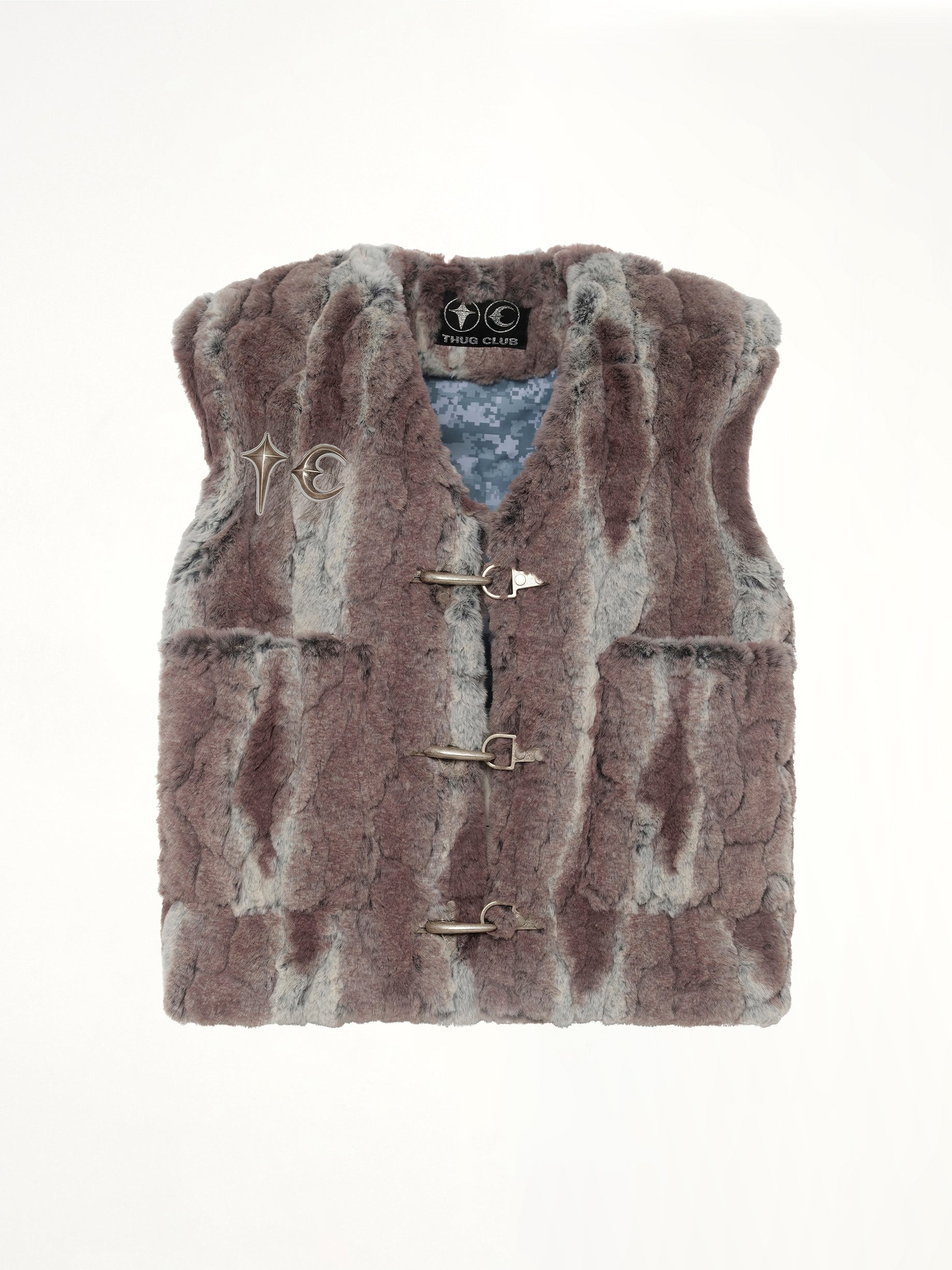 Thug Club's TC Skull Fur Vest in Ivory is a bold statement piece that combines edgy design with luxurious comfort. Perfect for those who want to stand out, this vest adds a unique touch to any outfit.