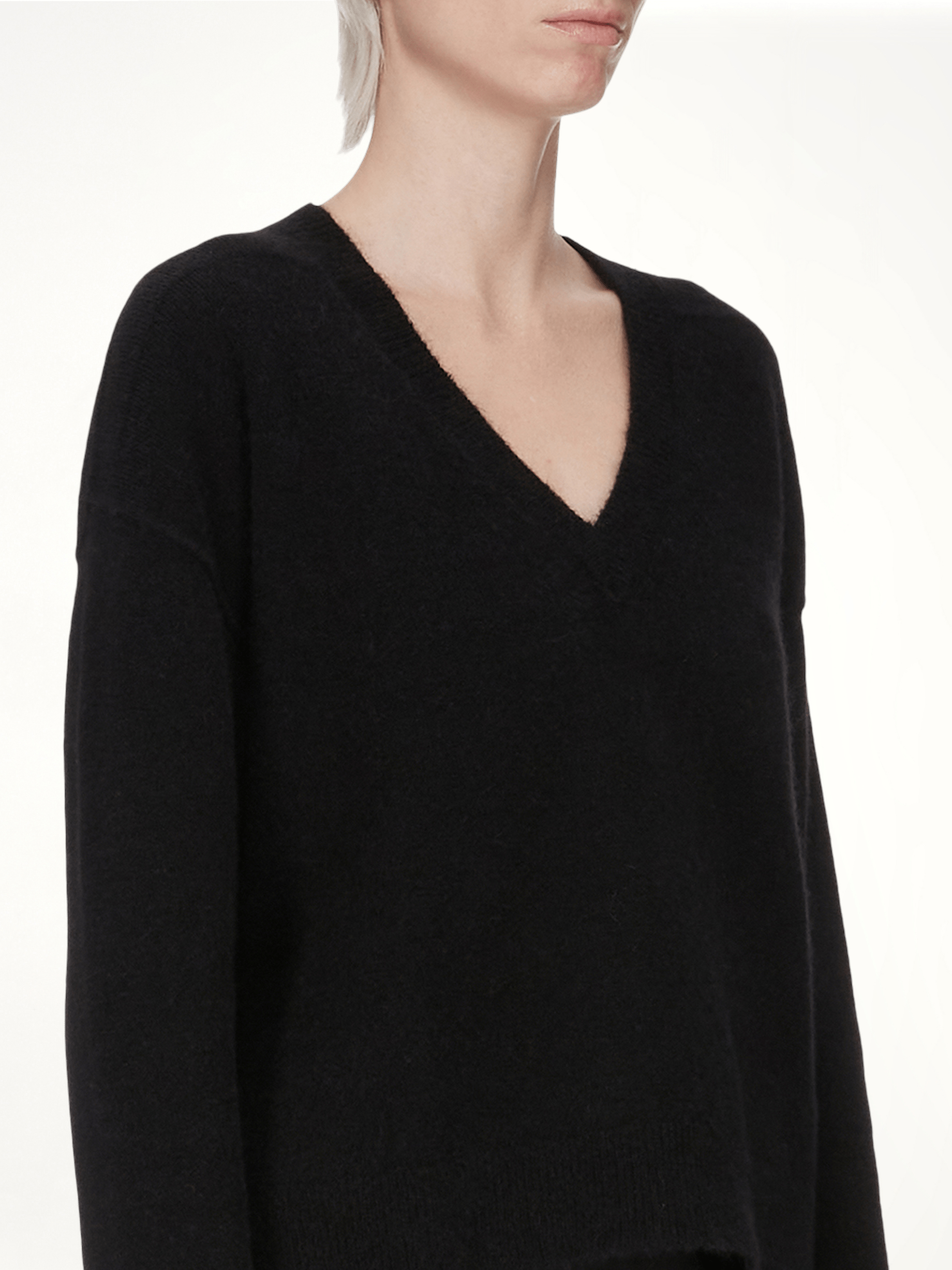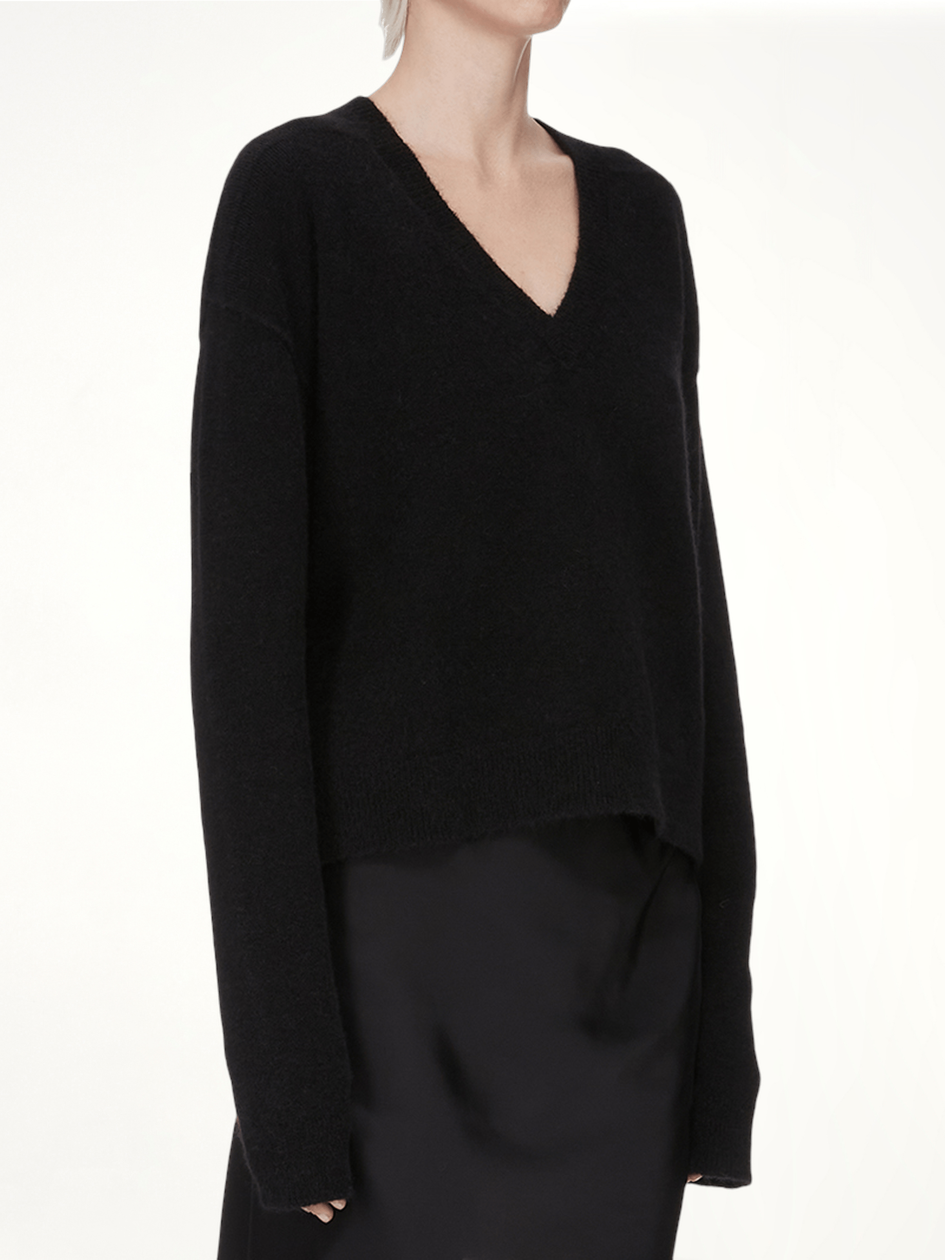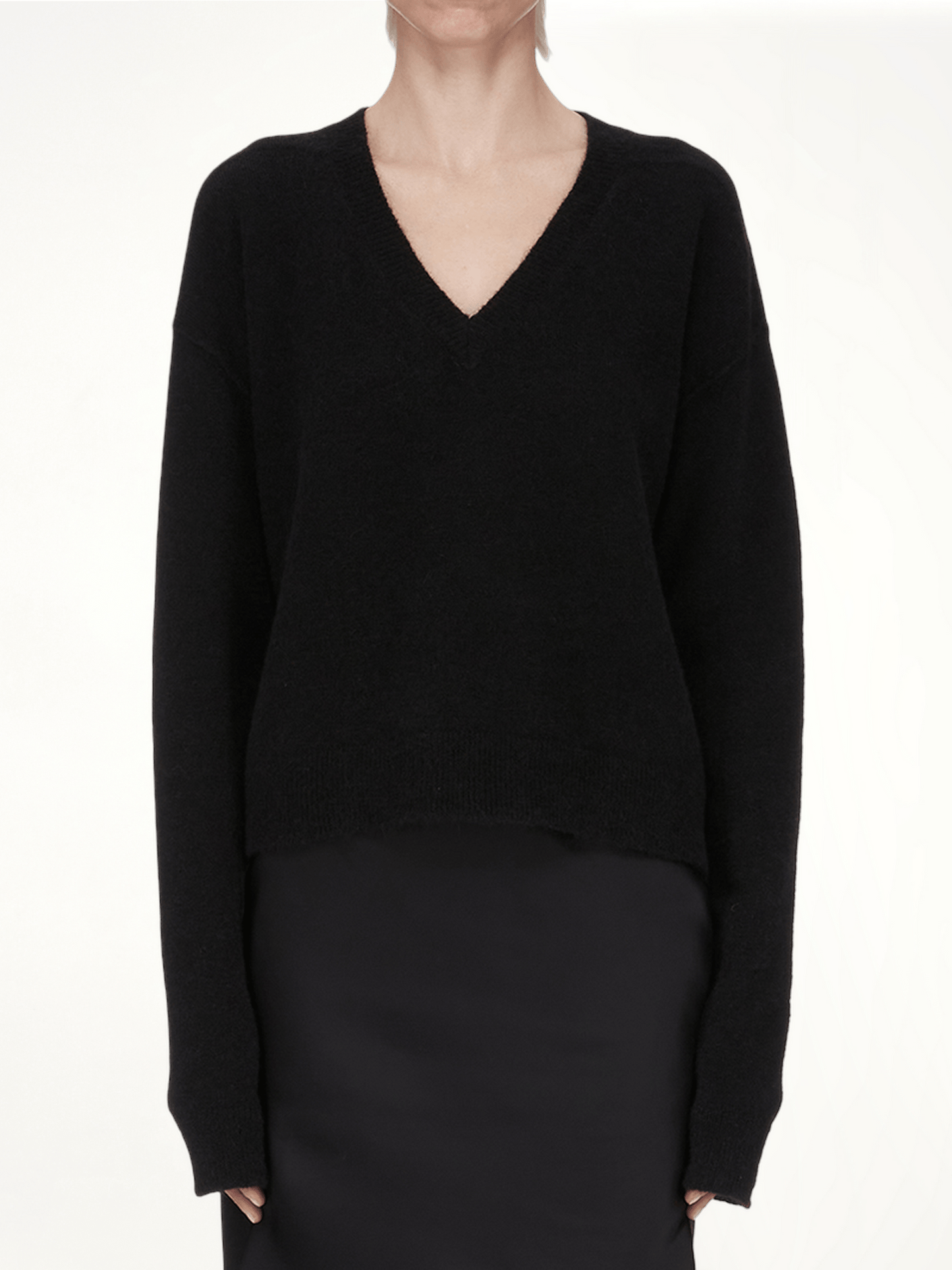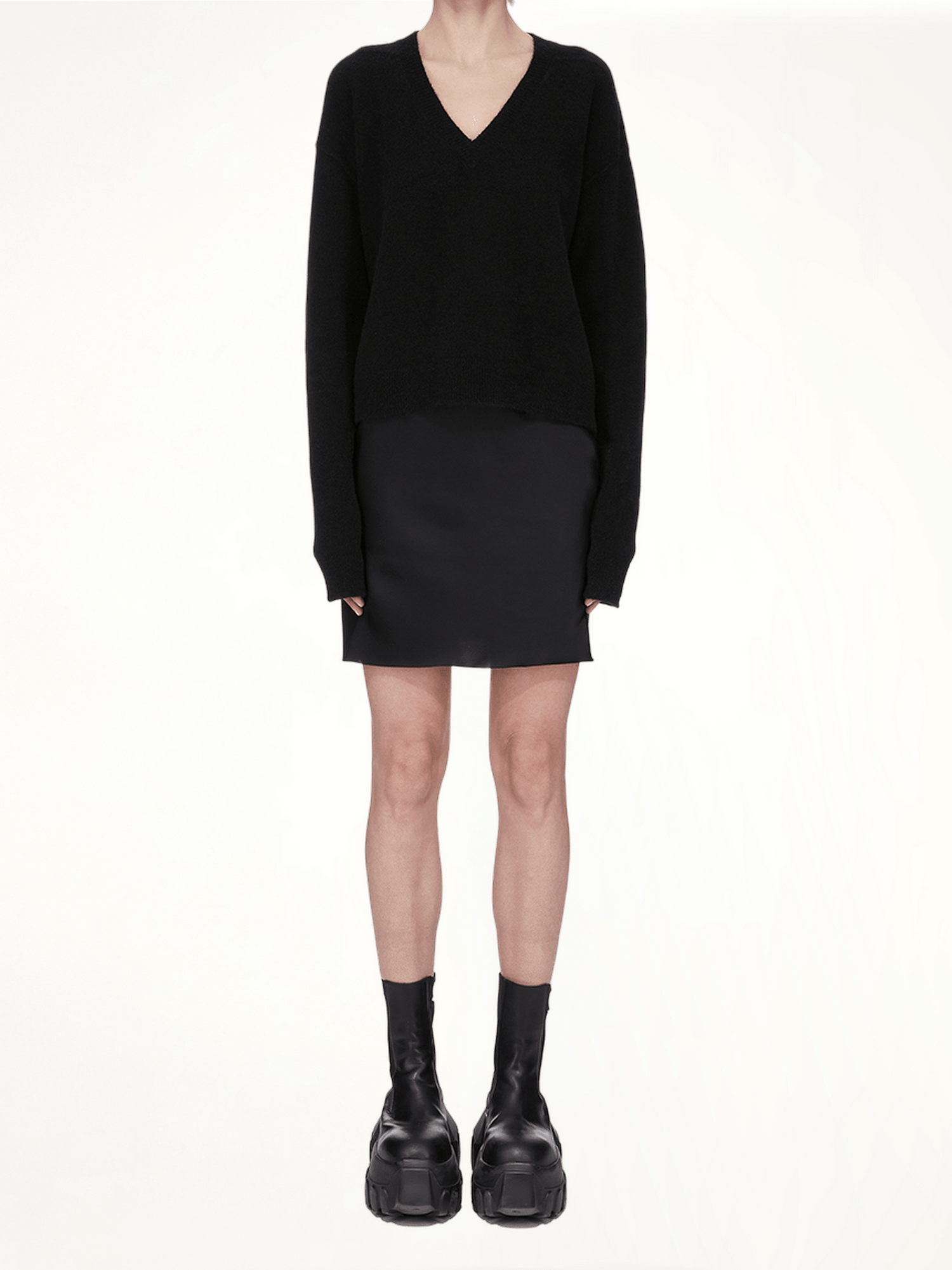 Rick Owens's Tommy V Neck in Black is a sleek and versatile addition to any wardrobe. This piece combines modern design with timeless elegance, perfect for any occasion.