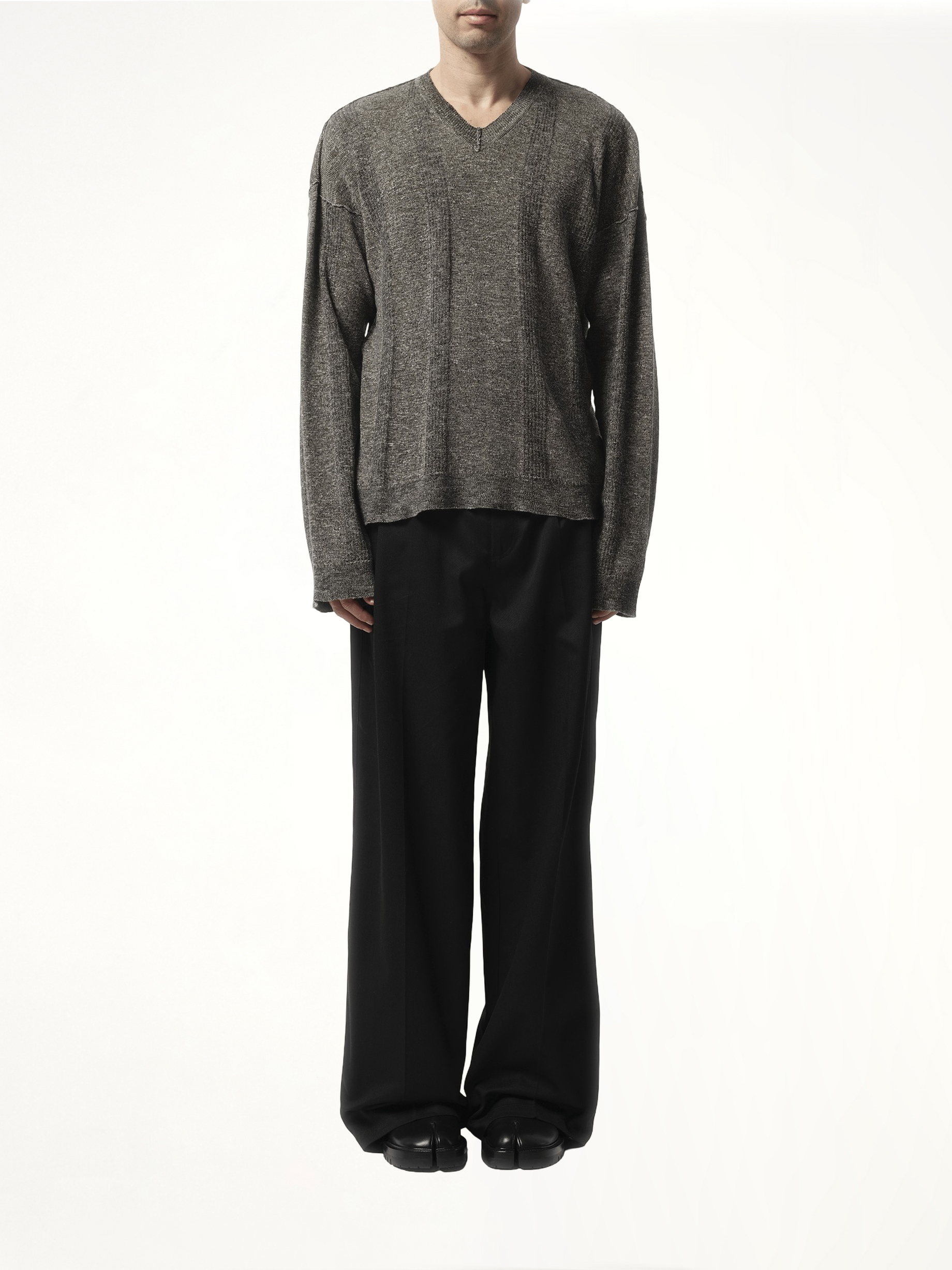 Maison Margiela's V-Neck Sweater in Black offers a minimalist yet refined aesthetic. Crafted from premium knit fabric, it delivers both comfort and sophistication, making it a versatile wardrobe essential.