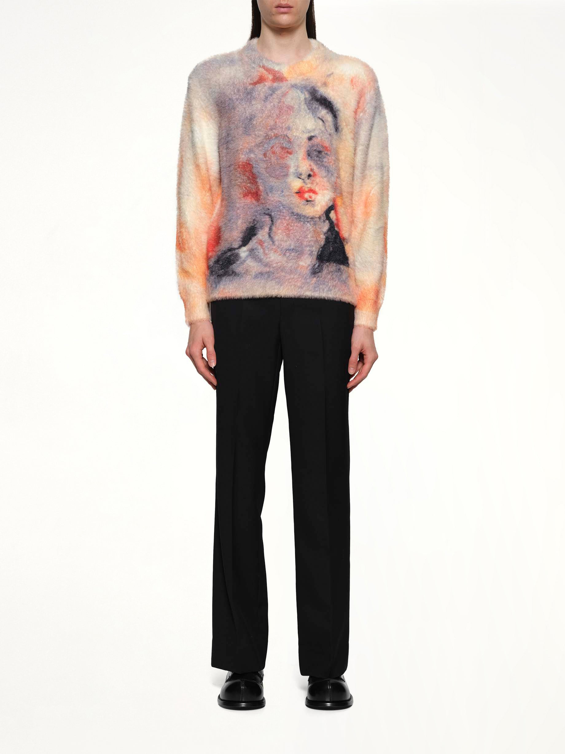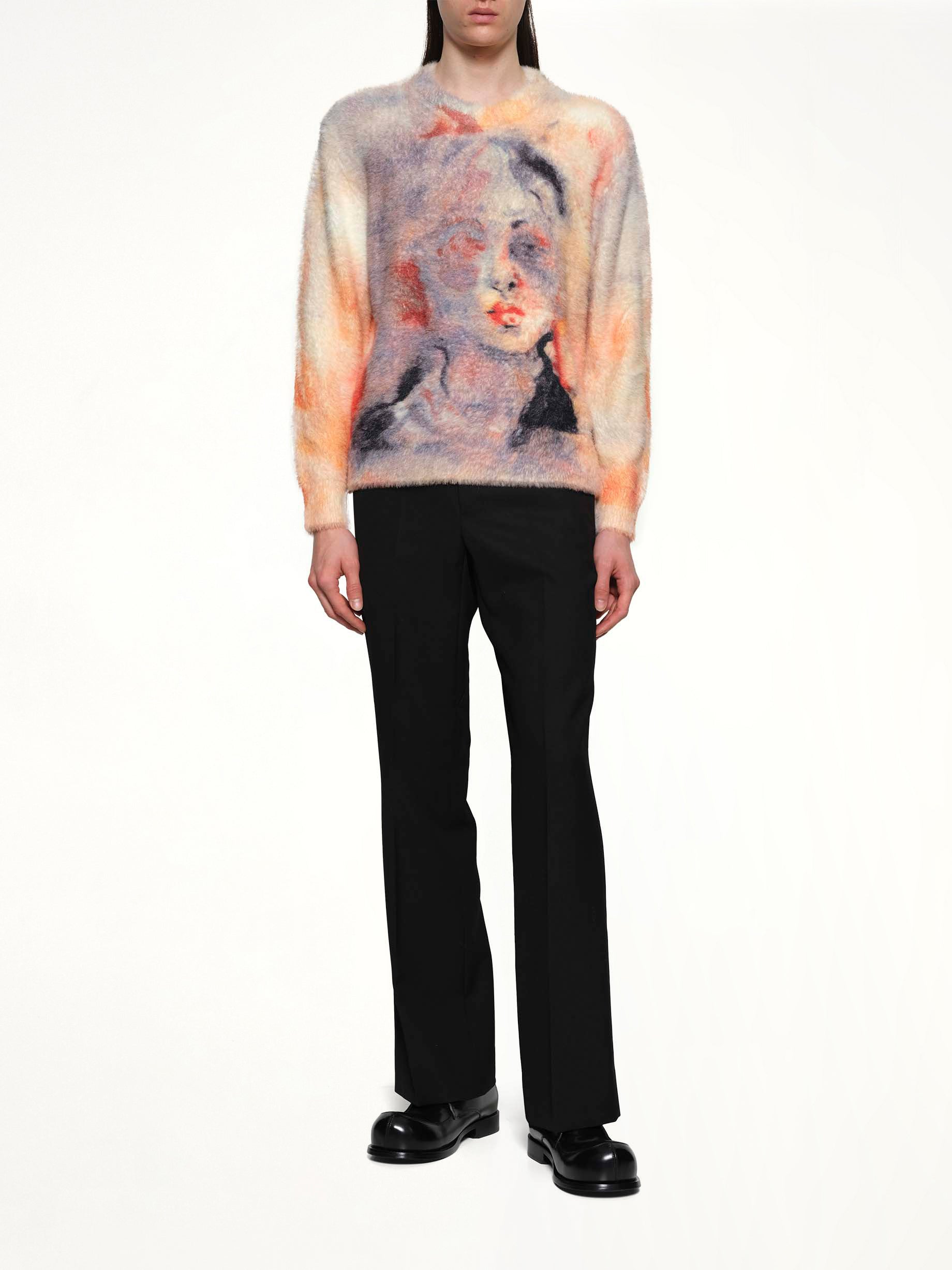 Kid Super's Watercolour Face Mohair Sweater in Multicolour is a vibrant and artistic piece that stands out in any wardrobe. This sweater features a unique watercolour face design, making it a statement piece for any fashion-forward individual.