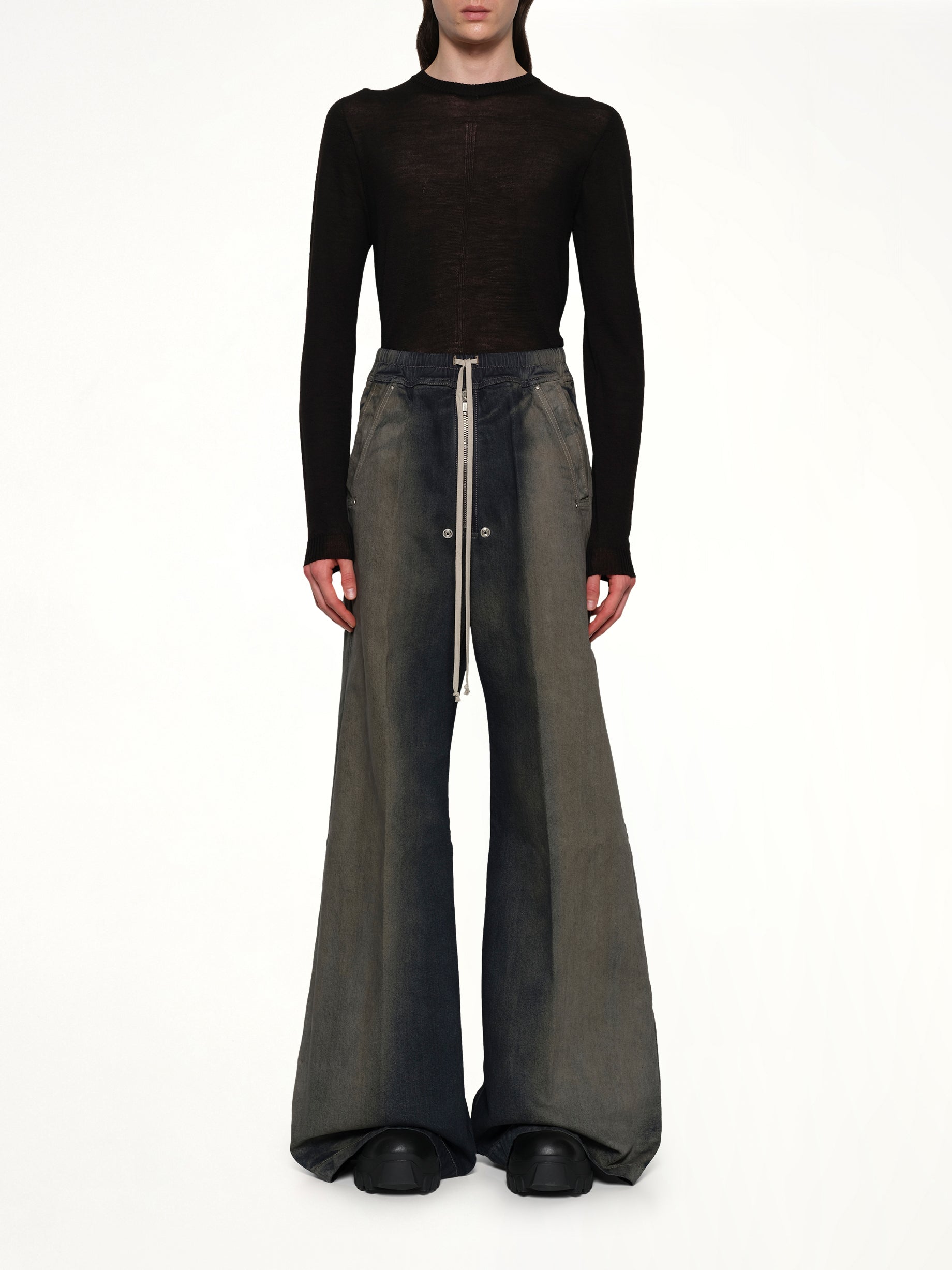 Rick Owens's Wide Bela Pants in Darkdust Degrade is a statement piece that combines avant-garde design with a unique color gradient. These pants offer a bold silhouette, perfect for those looking to make a fashion-forward impact.