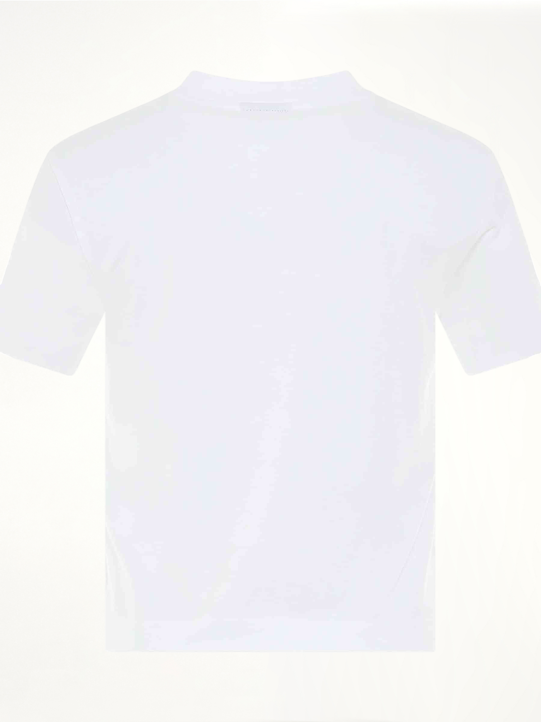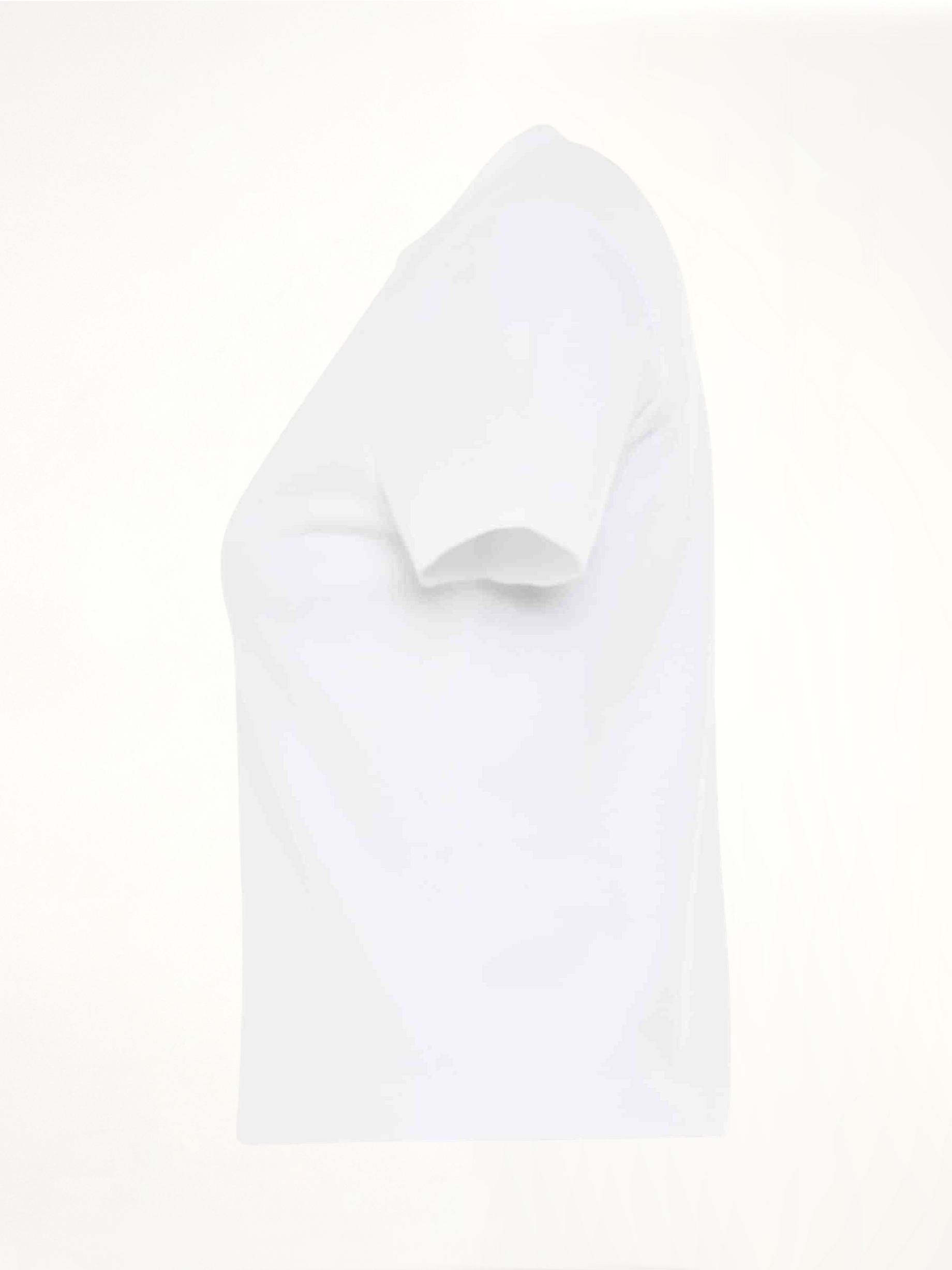Elevate your everyday look with our Women Gros Grain Logo T-Shirt in White. Made from high-quality grosgrain fabric, this white t-shirt features our signature logo for a touch of elegance. Perfect for pairing with jeans or a skirt, this t-shirt offers both comfort and style.
