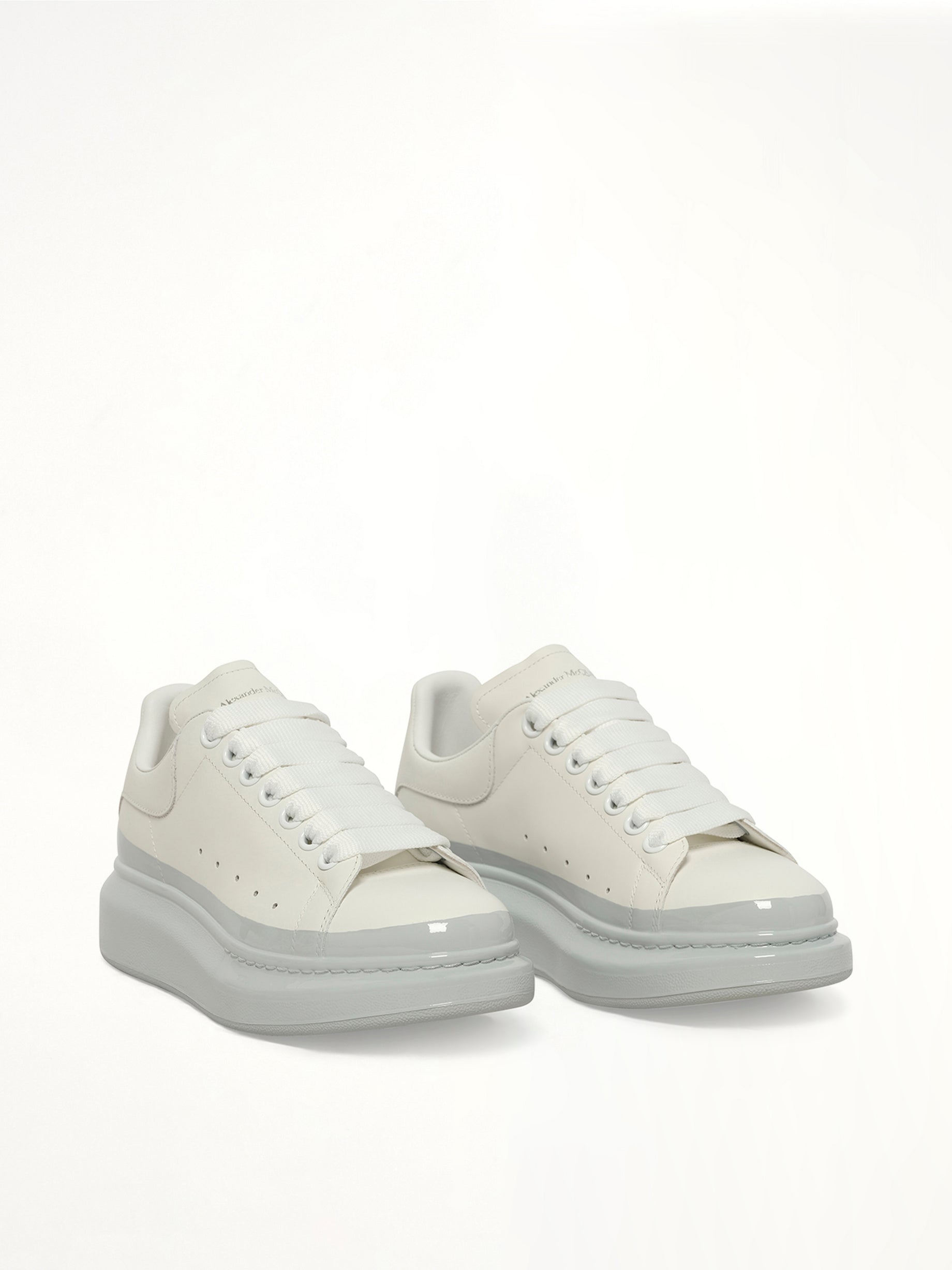 Alexander McQueen's Womens Larry Oversized Sneaker in White/Ice Blue is a statement piece that combines luxury with contemporary style. These sneakers feature a bold design that elevates any casual outfit.