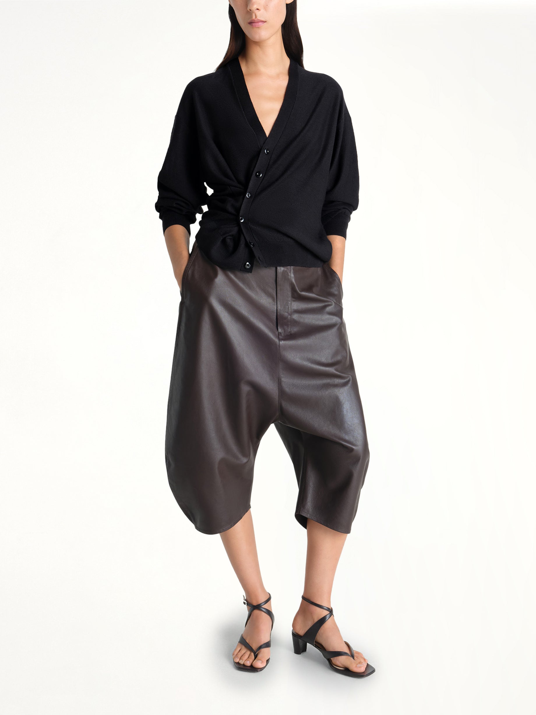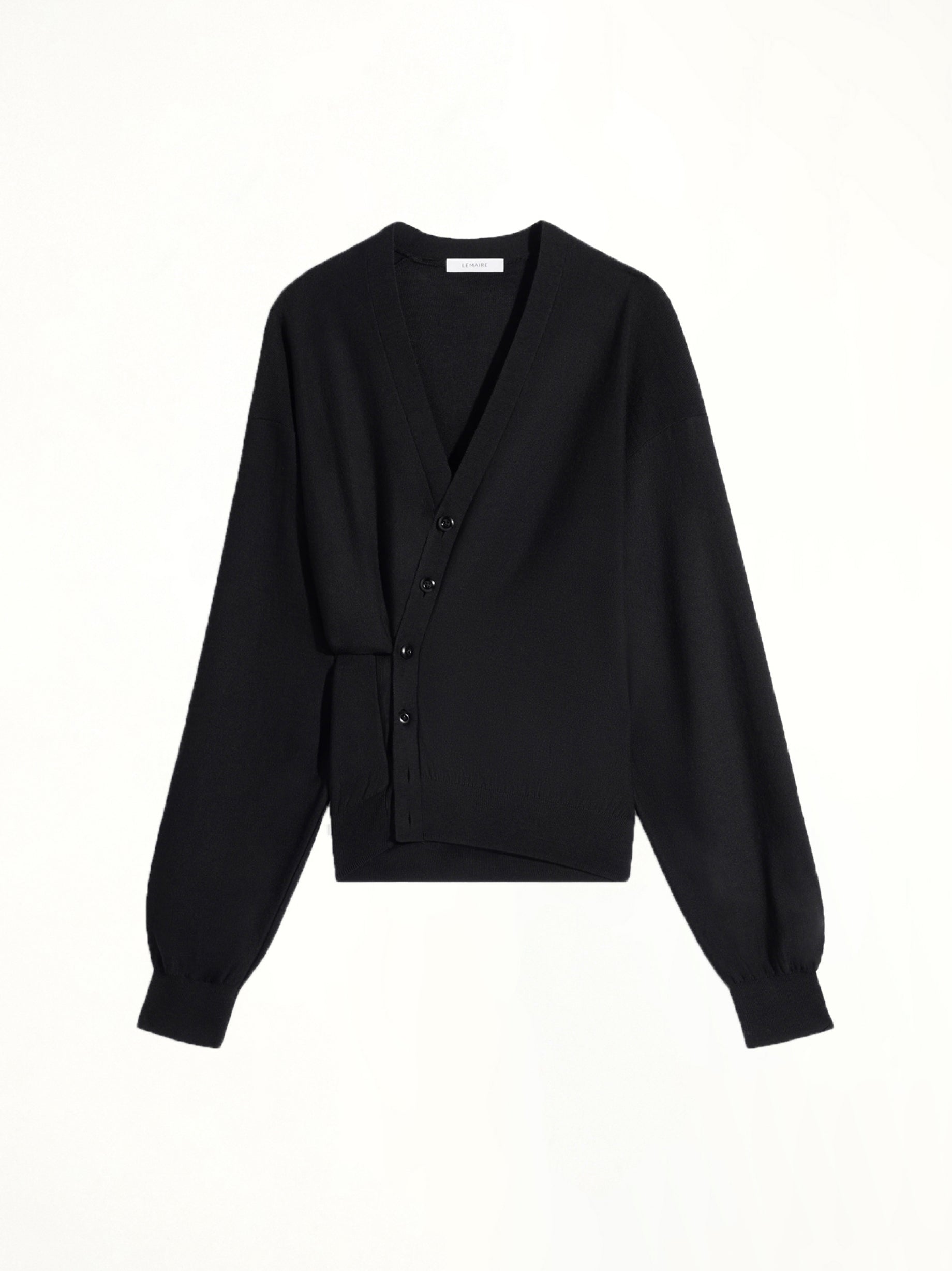 Lemaire's Twisted Cardigan in Black is a sophisticated and versatile piece that adds a modern twist to any wardrobe. Its unique design and timeless color make it a must-have for fashion-forward individuals.