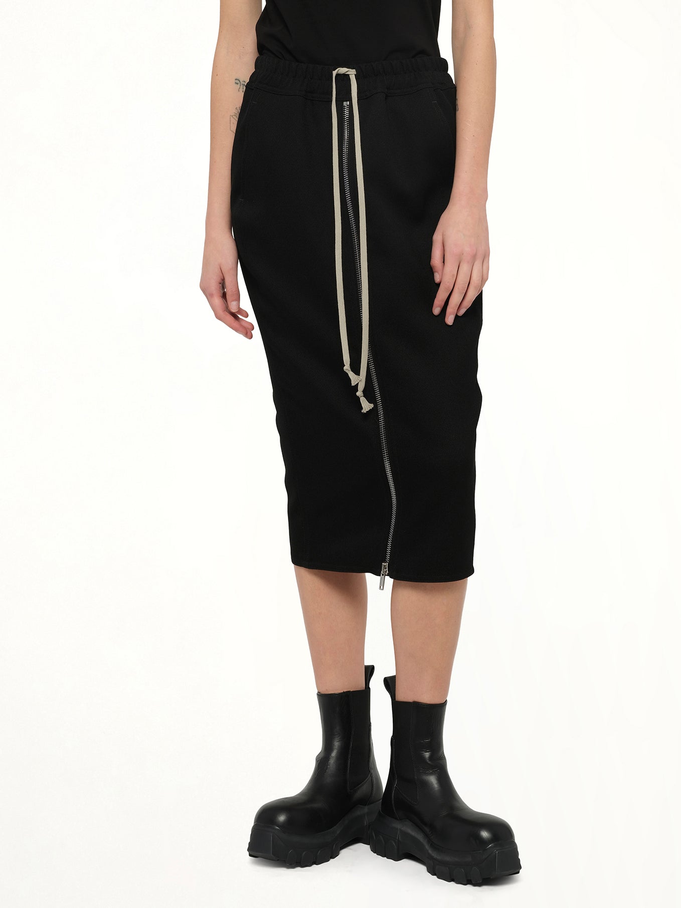 Rick Owens's Zipped Short Pillar in Black is a striking piece that embodies the designer's avant-garde aesthetic. This item features a unique silhouette that is both bold and versatile.