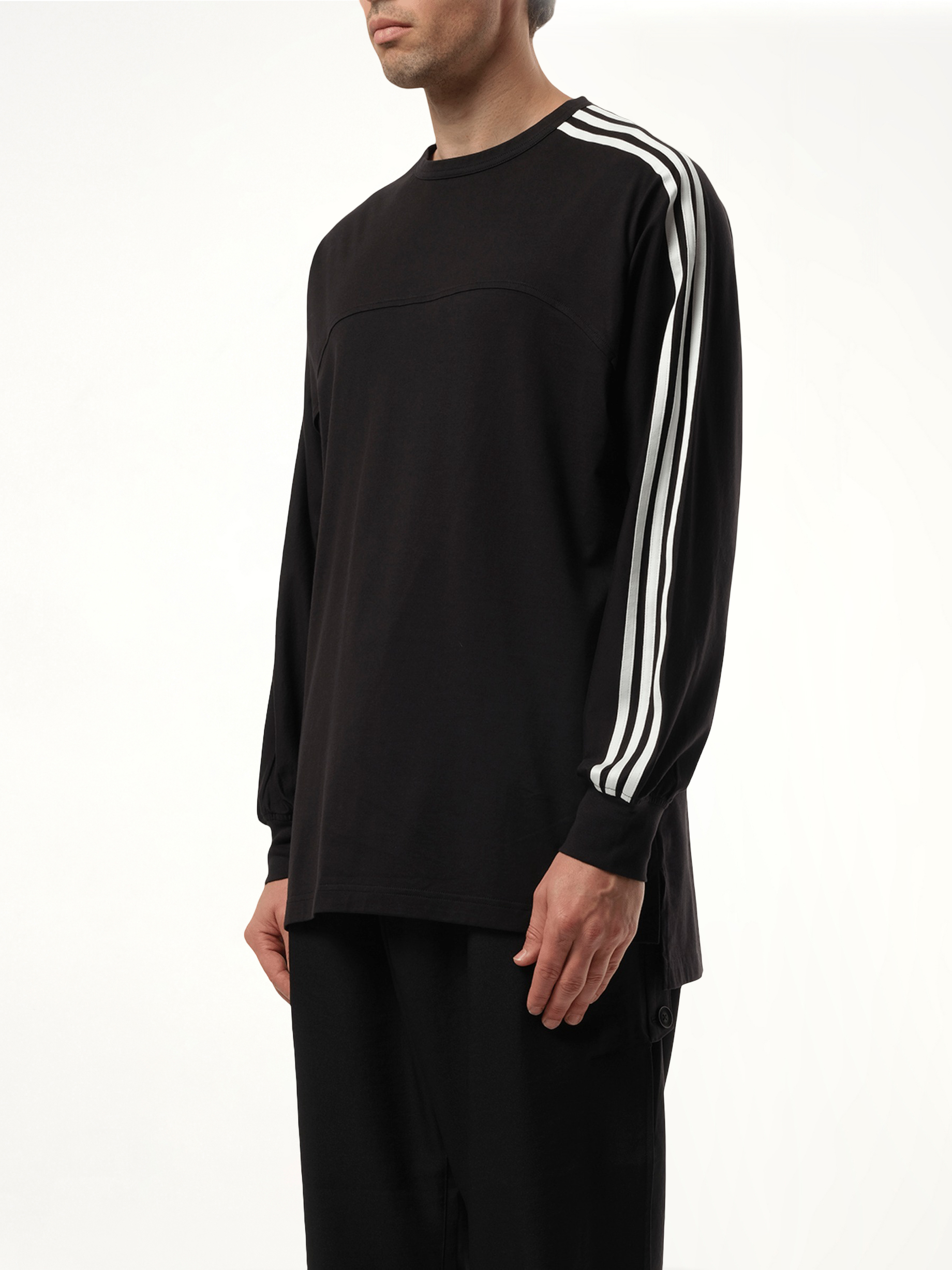 3 Stripe Long Sleeve T-Shirt in Black