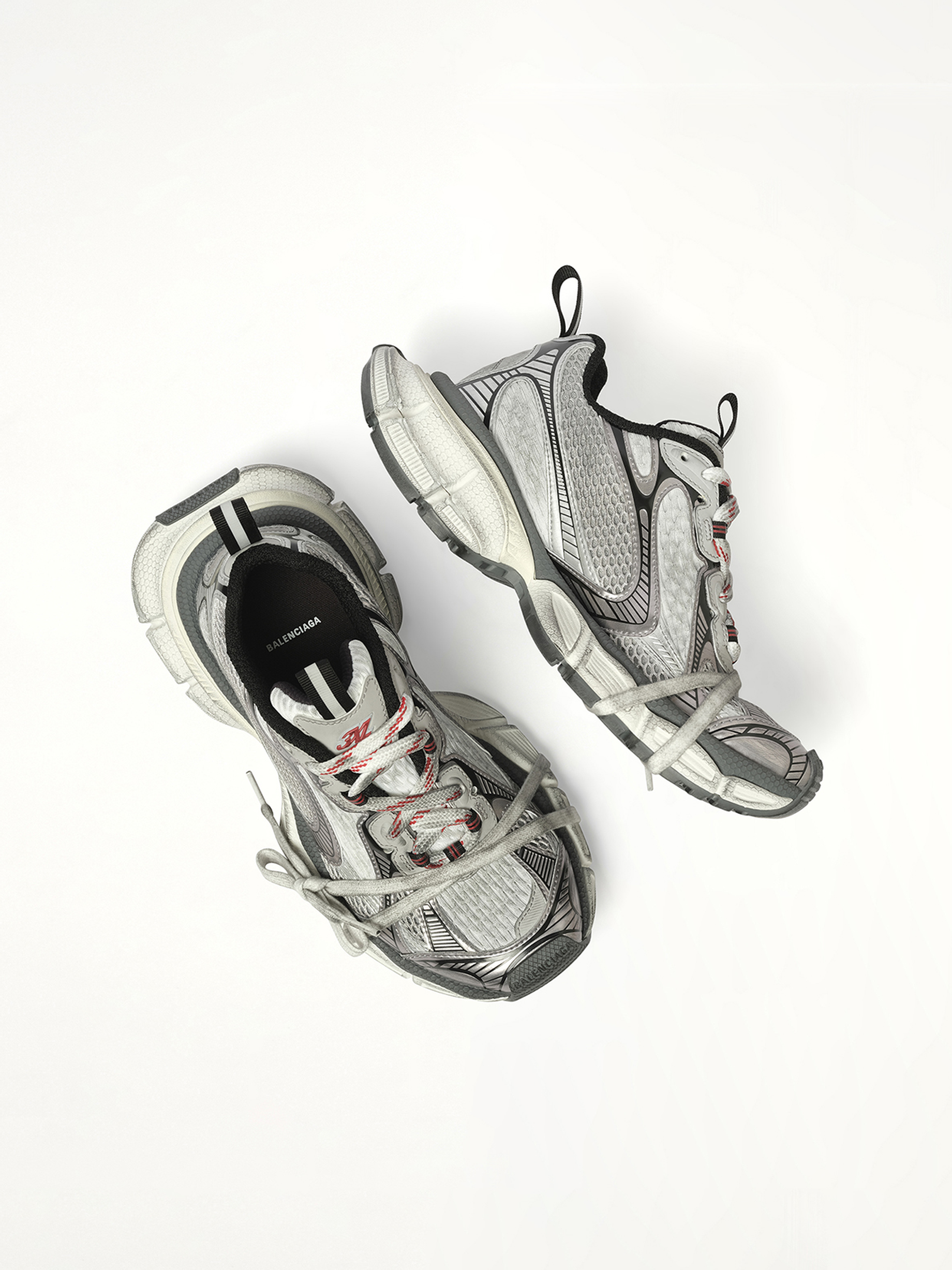 Balenciaga's 3XL Sneaker in Grey/White/Red is a bold statement piece that combines contemporary design with a retro flair. Elevate your footwear collection with this unique blend of style and comfort.