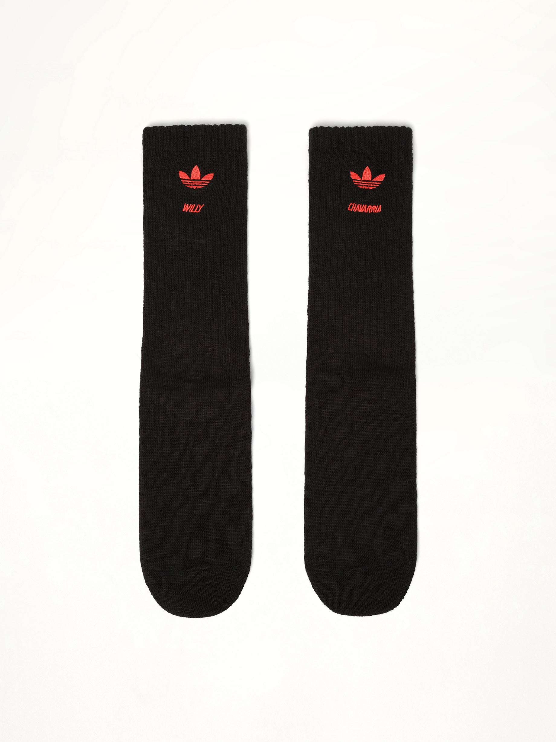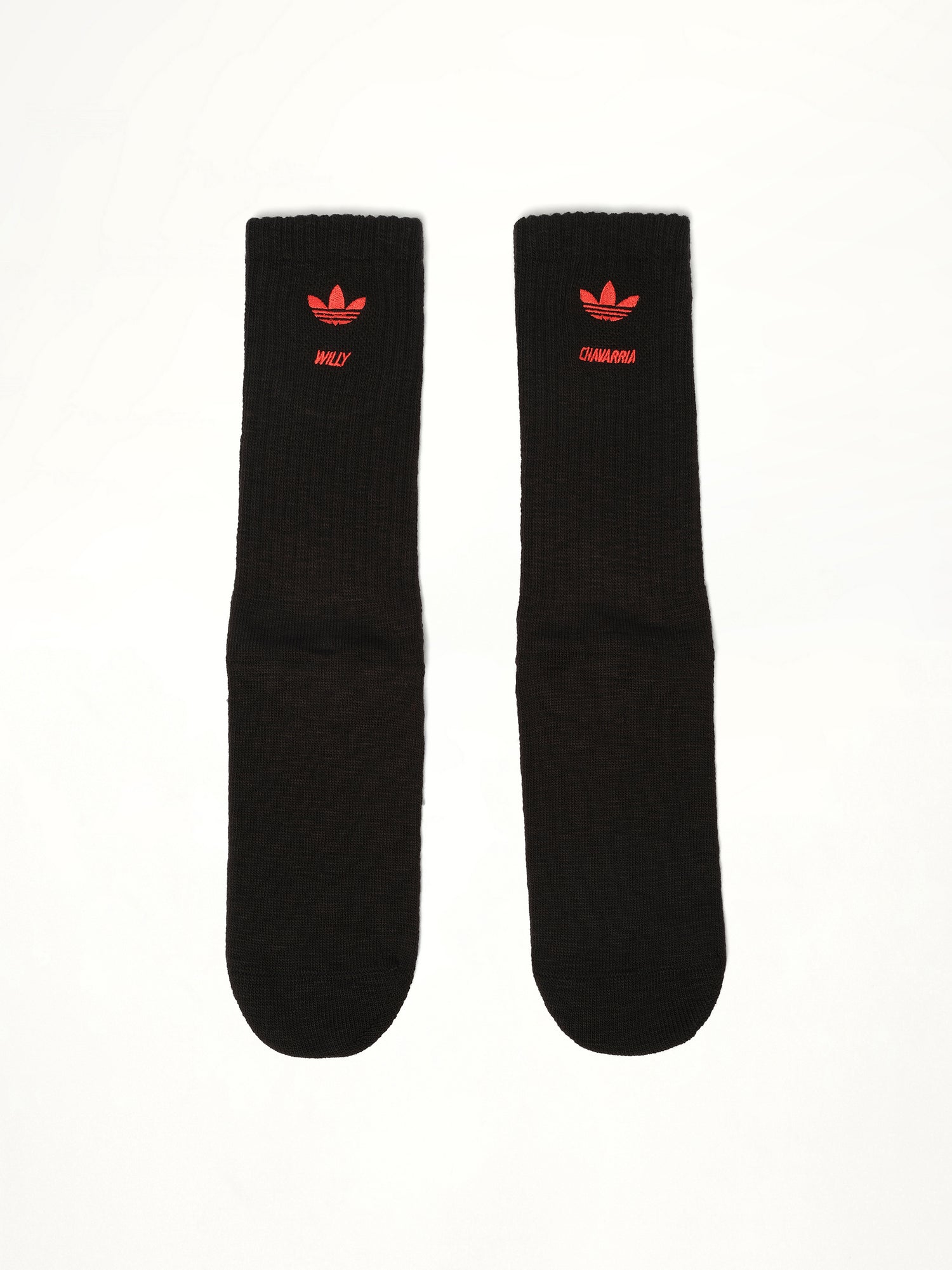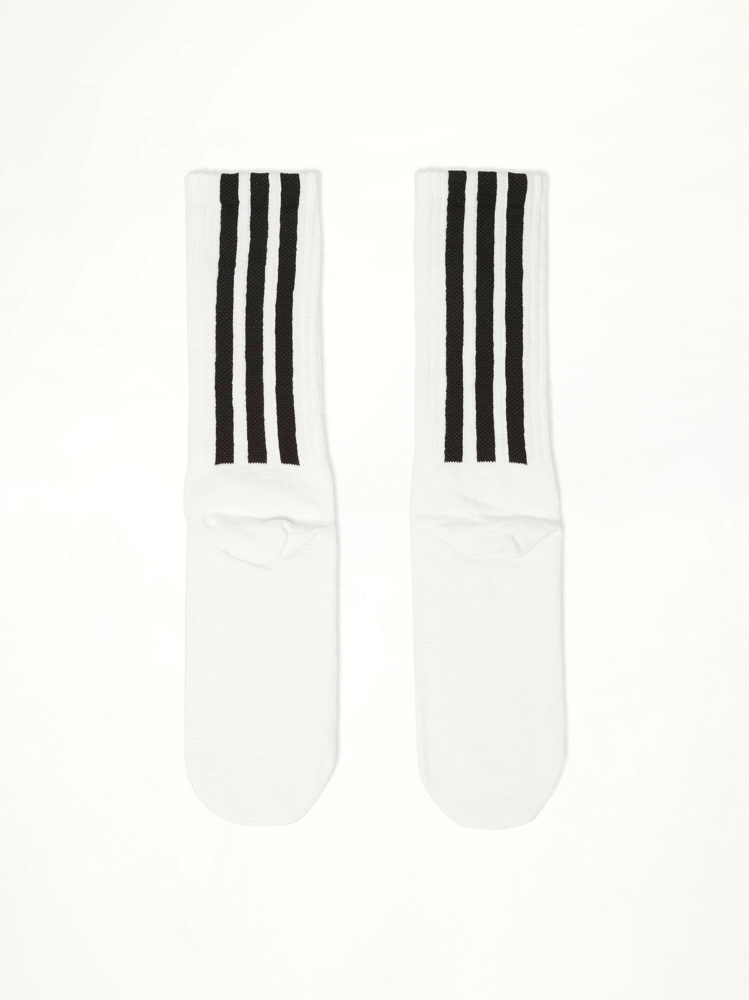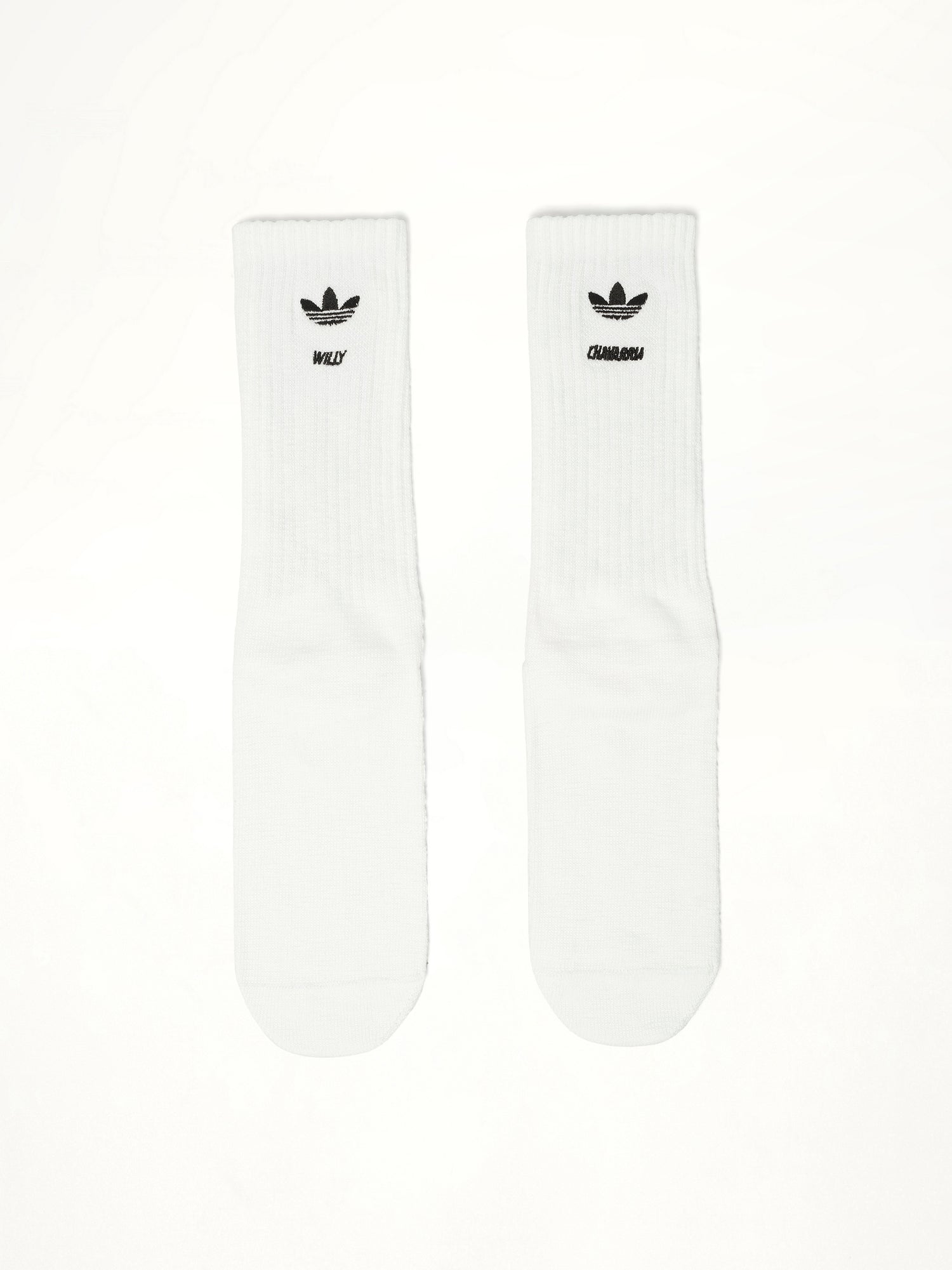 Adidas X Chavarria Socks in White, a collaboration piece that fuses the iconic Adidas stripes with Chavarria's unique design ethos. Crafted from a soft and breathable cotton blend, these socks provide comfort and style, making them an essential addition to your streetwear collection.
