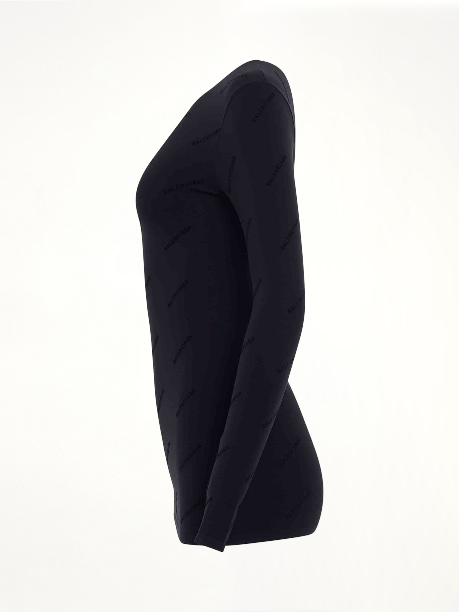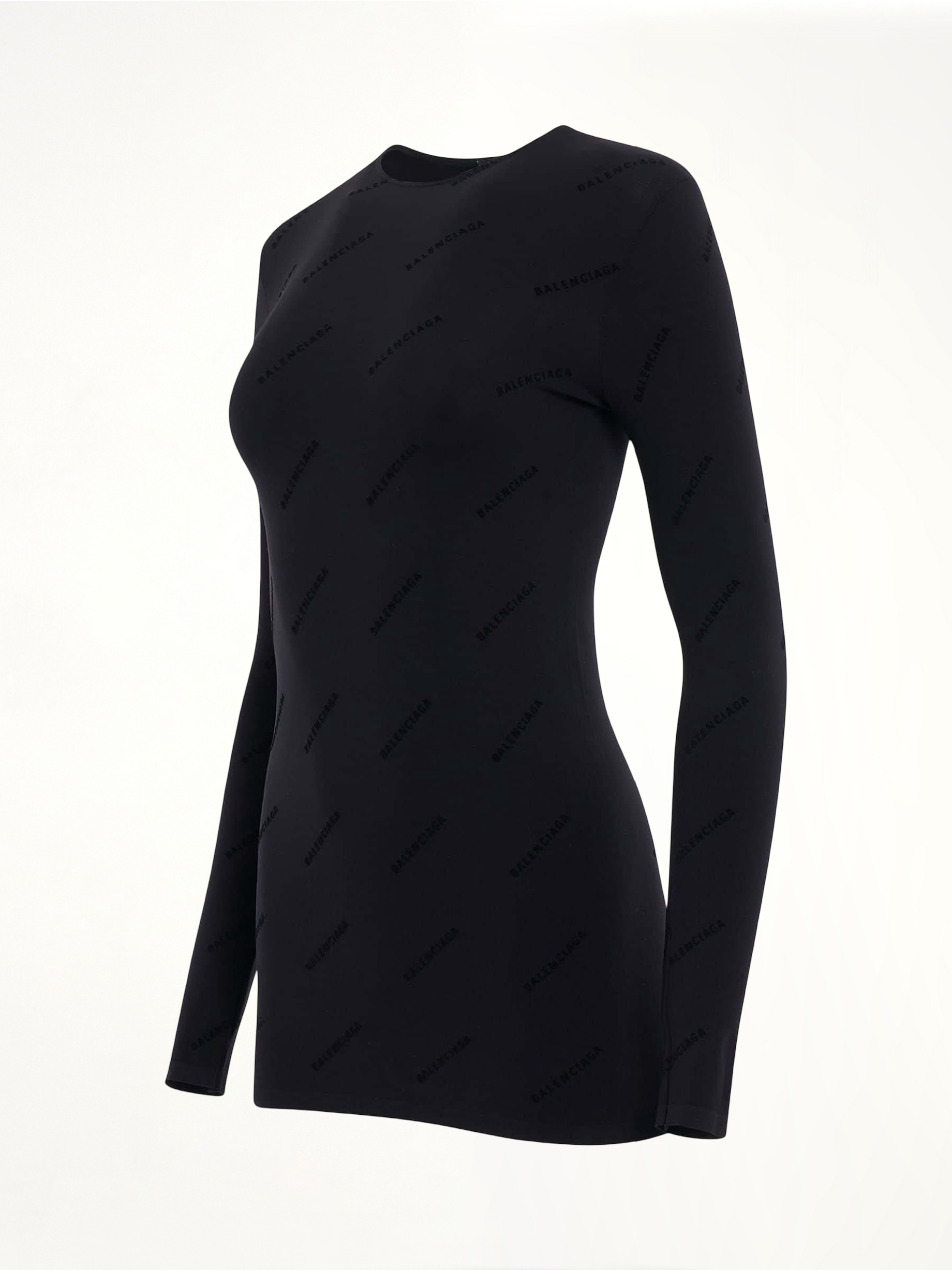 This All Over Logo Flock Top in Black is the perfect addition to any fashion-forward wardrobe. Featuring bold all-over logo detailing, it's the perfect way to add an edgy element to your look.