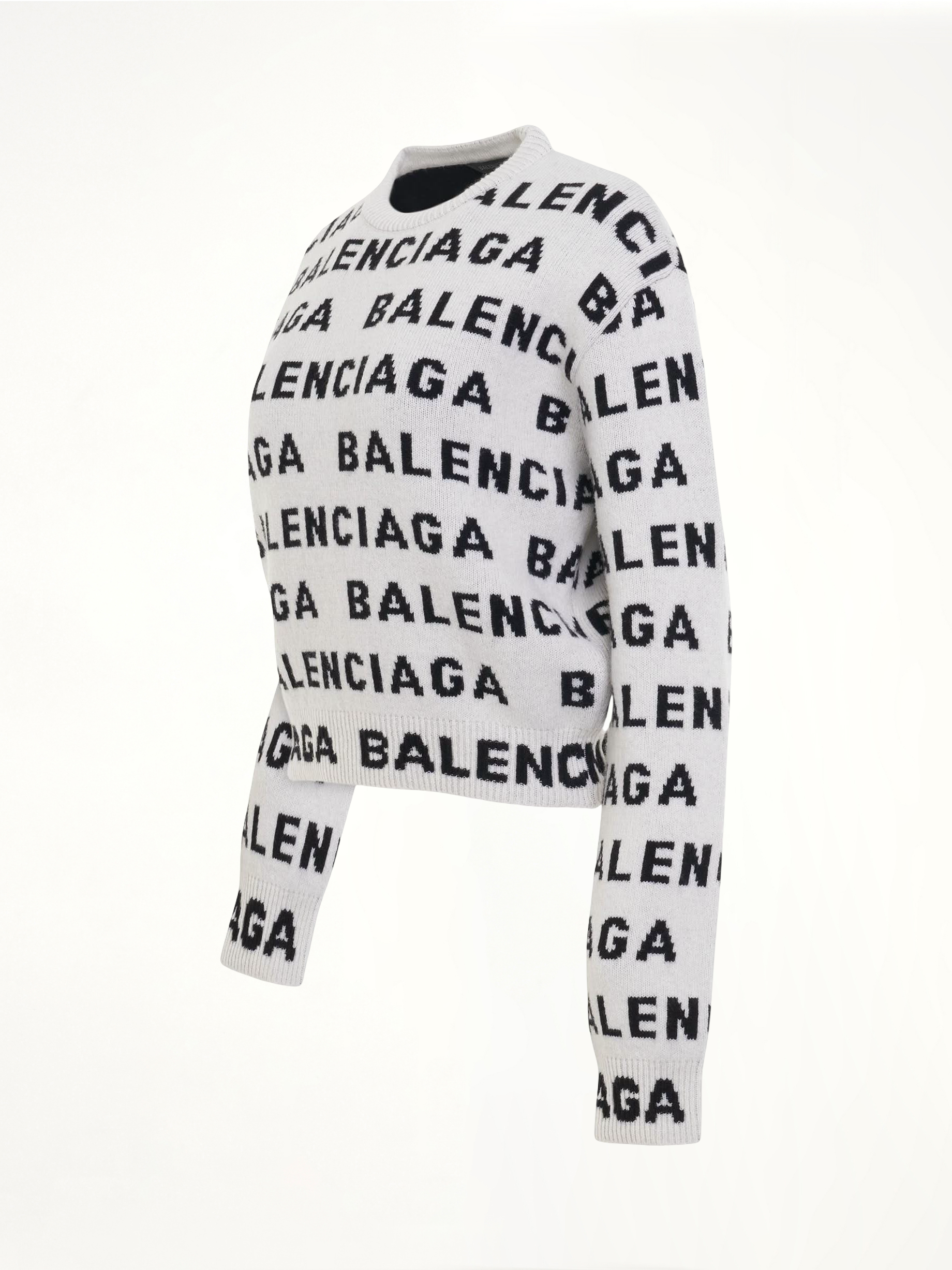 Allover Logo Horizontal Cropped Sweater in White