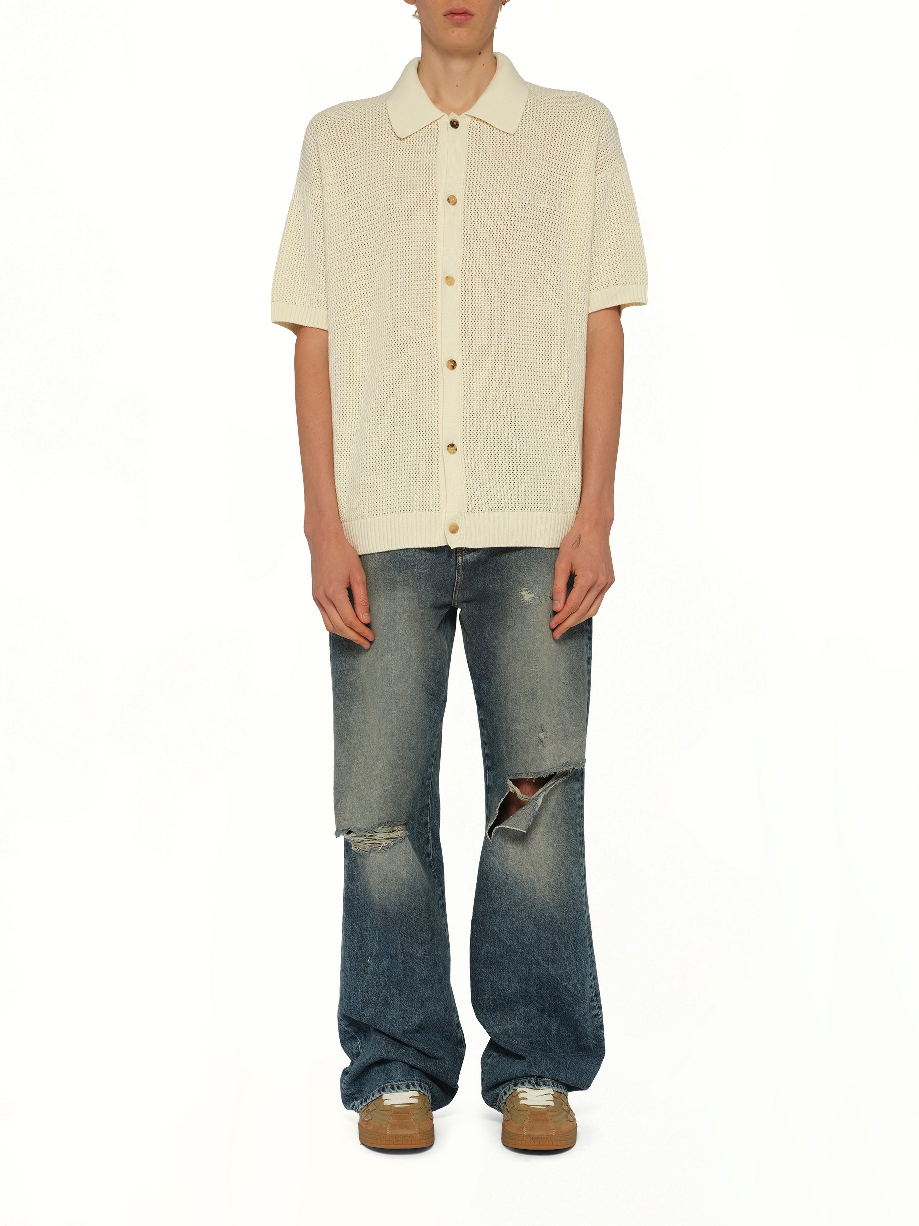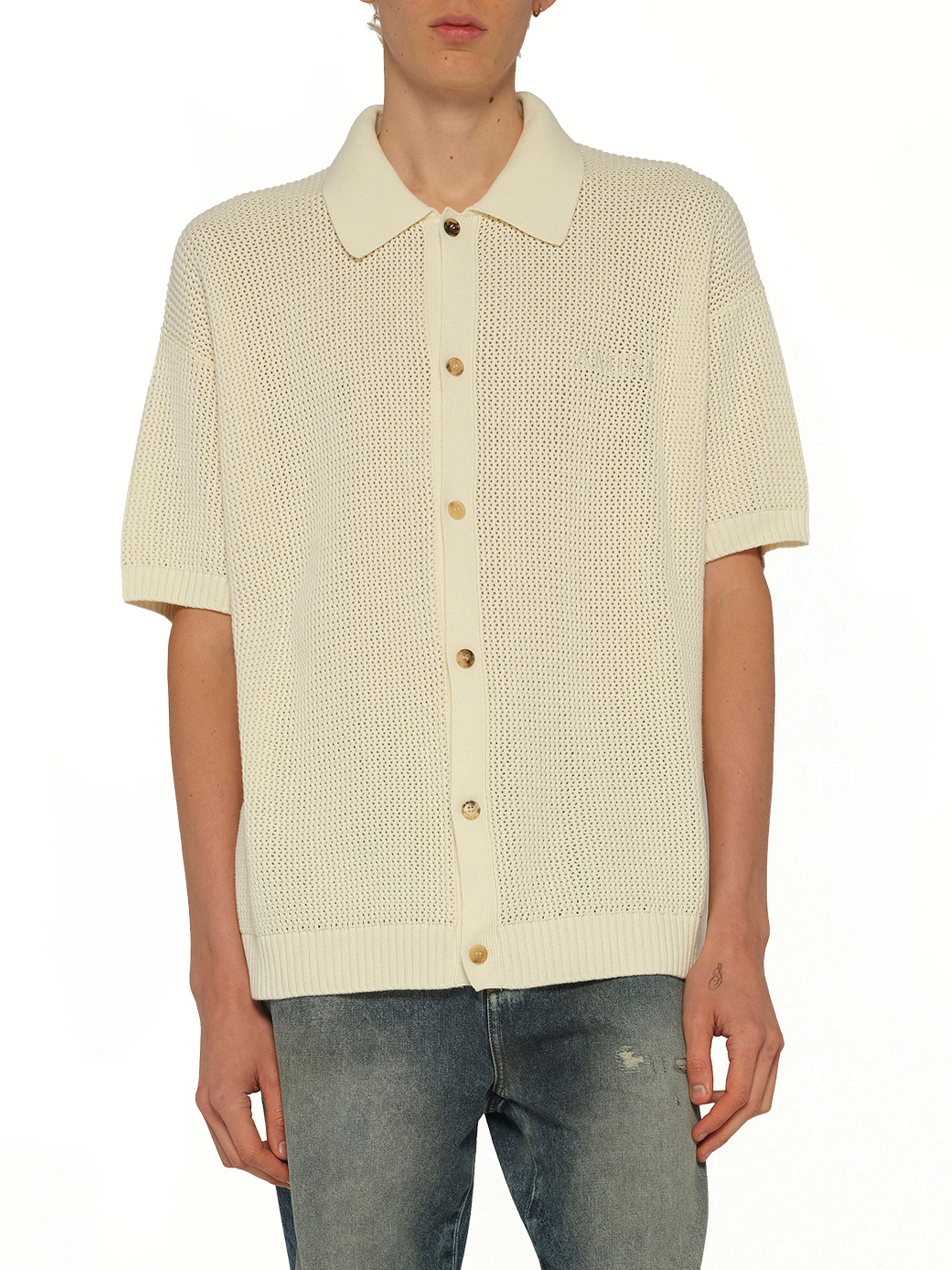Amiri Crochet Mesh Shirt in Ivory