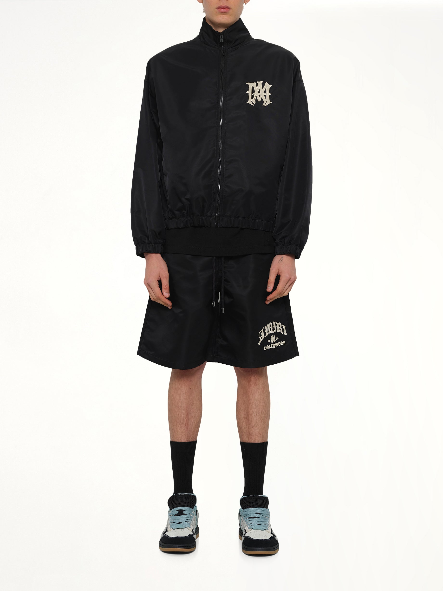 Amiri's Amiri Hollywood Jacket in Black is a statement piece that combines luxury with a rock 'n' roll edge. This jacket is designed to elevate any outfit with its sleek and modern aesthetic.
