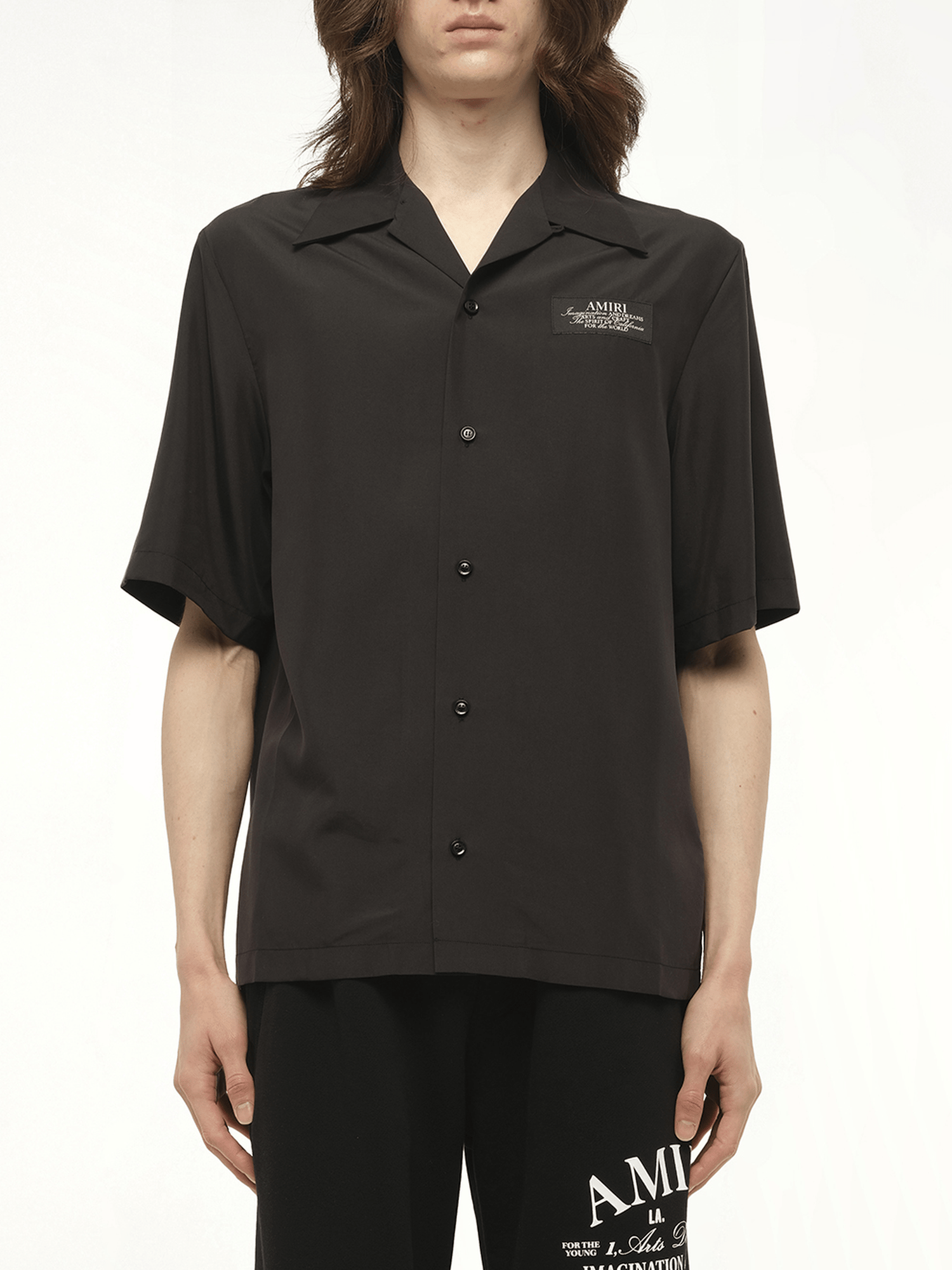 AMIRI's Amiri Spirit Bowling Shirt in Black is a stylish and contemporary piece that effortlessly combines classic design with modern flair. Perfect for any casual occasion, this shirt is a must-have addition to your wardrobe.