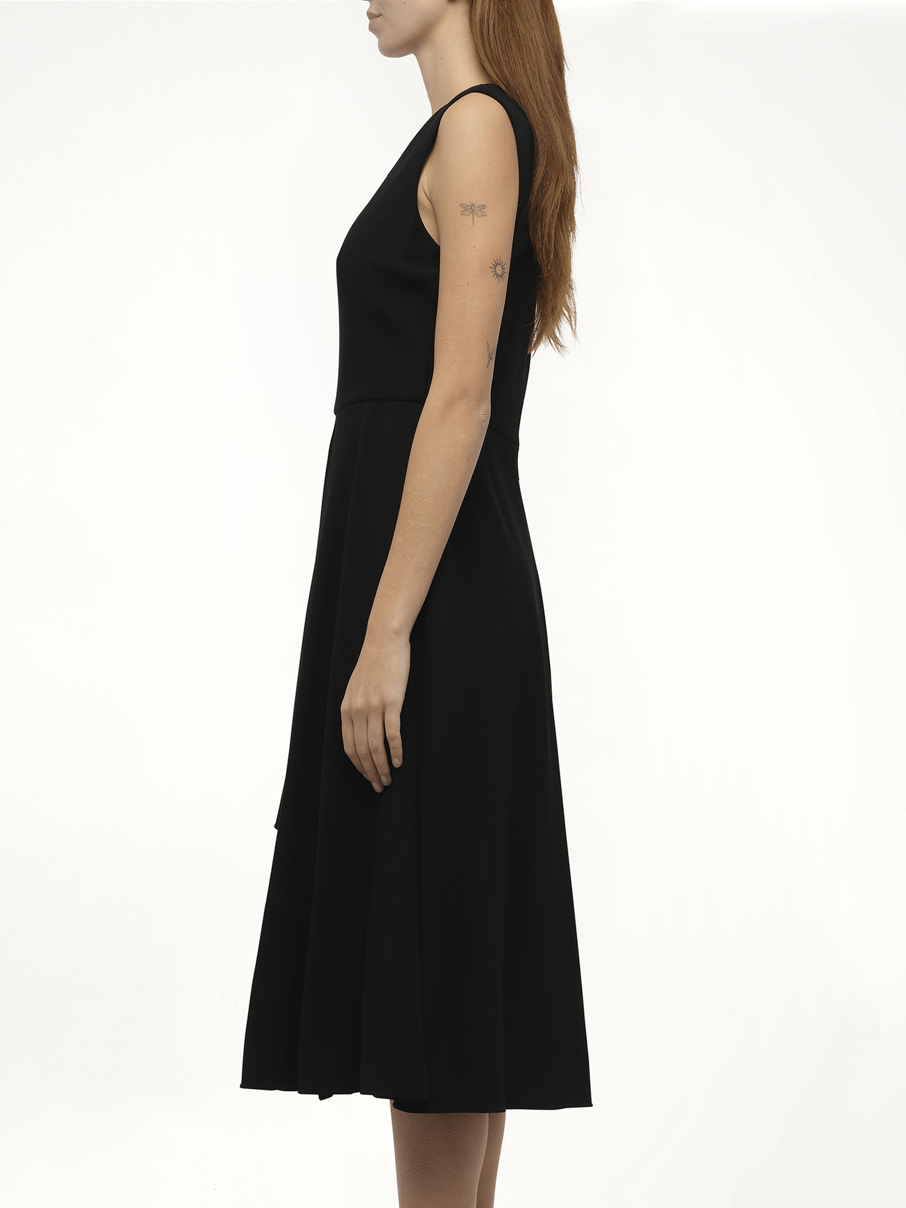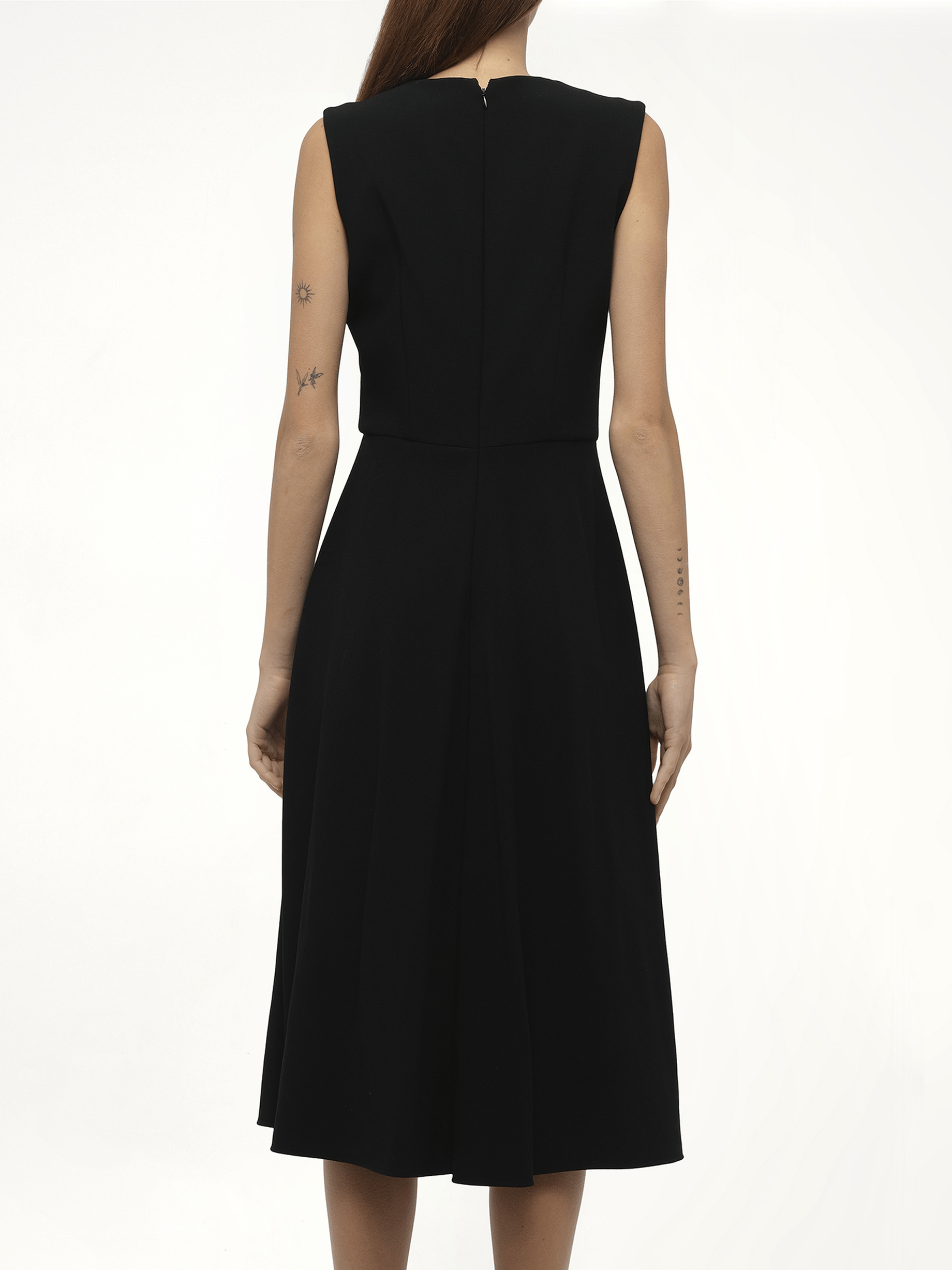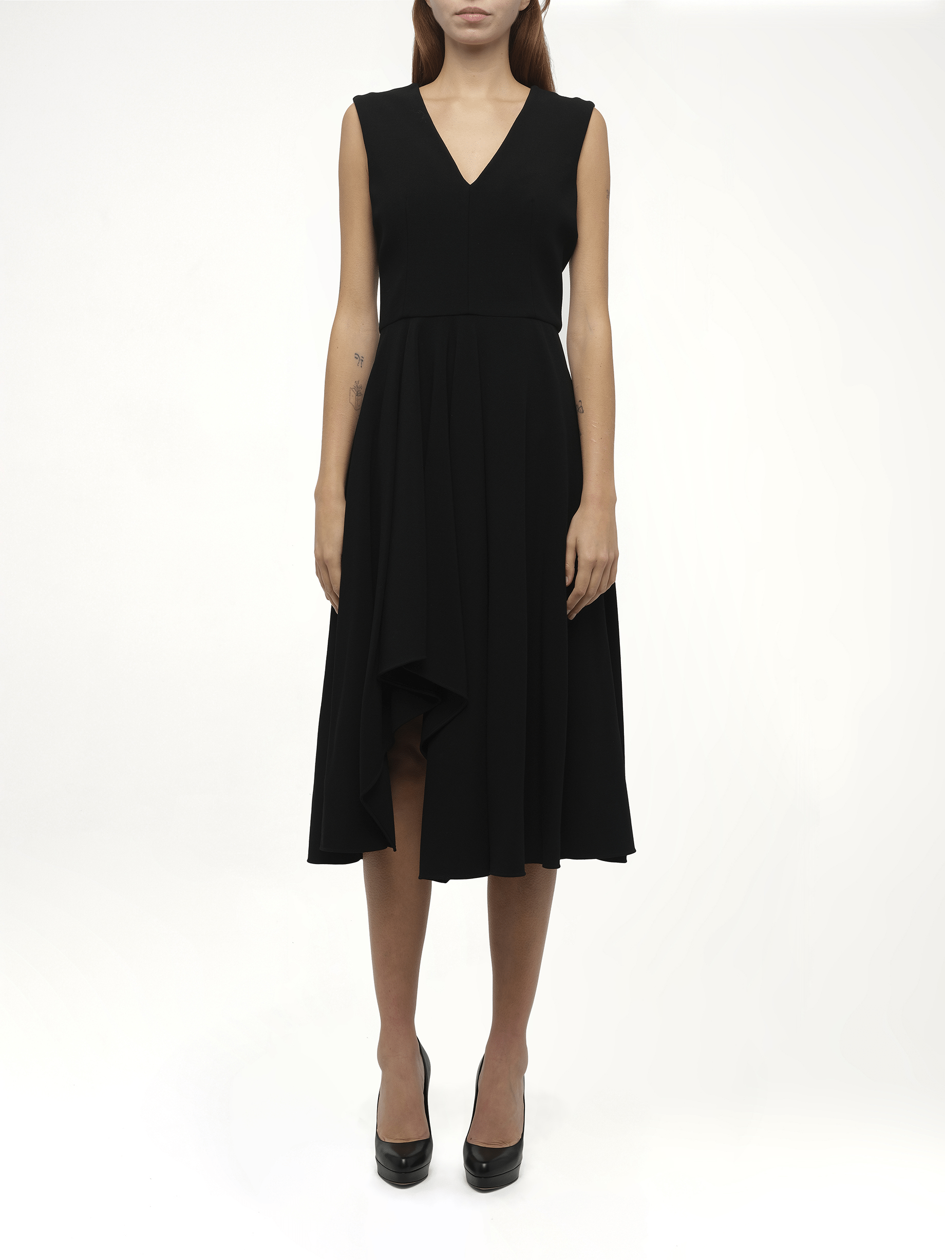 Discover the perfect blend of elegance and comfort with our AMQ crepe dress in black. Made with premium quality fabric, this dress offers a sleek and sophisticated look. Its crepe construction provides a lightweight and breathable feel, while its classic black color adds a touch of versatility. Elevate your wardrobe and make a statement with our AMQ crepe dress.