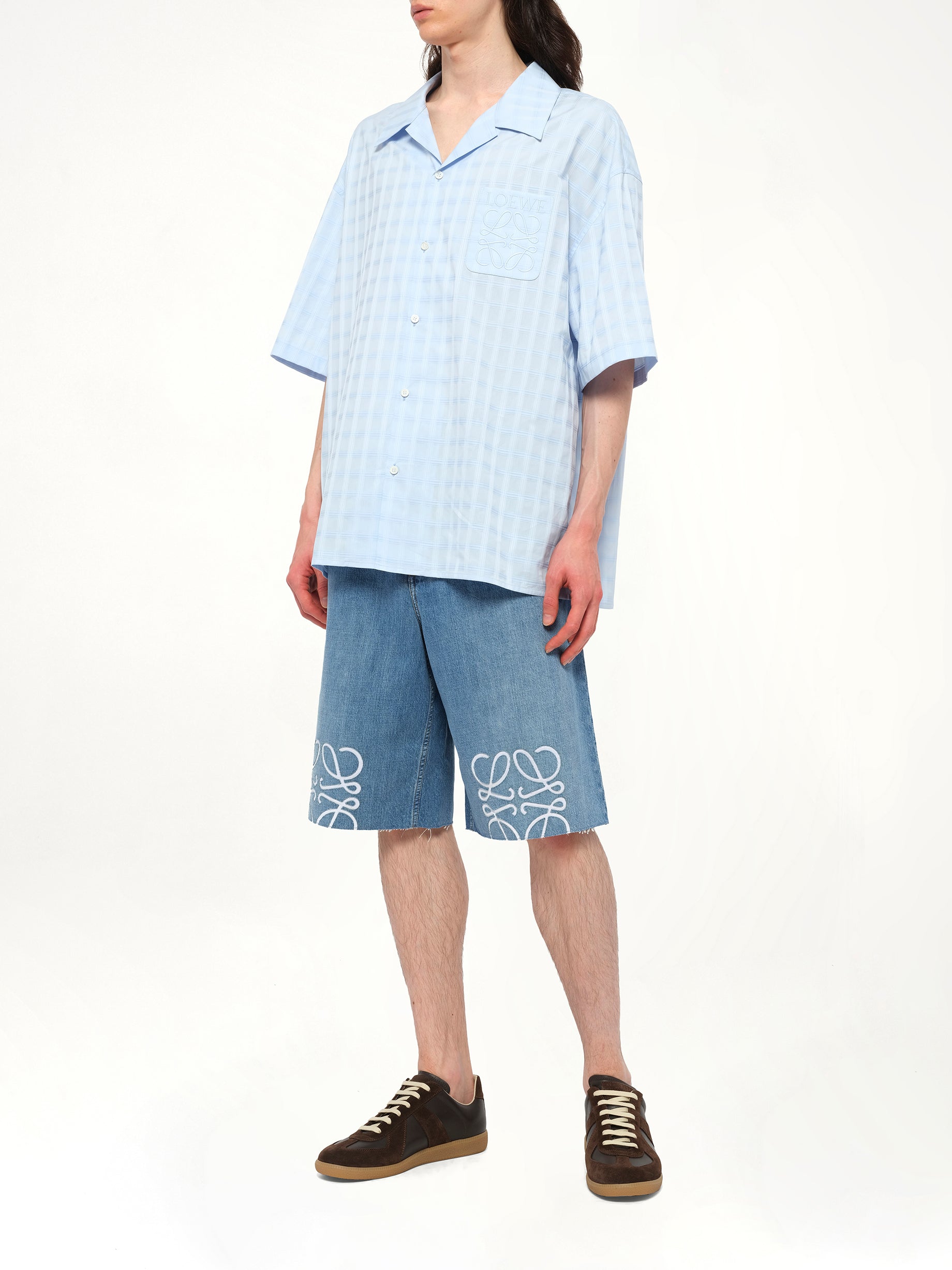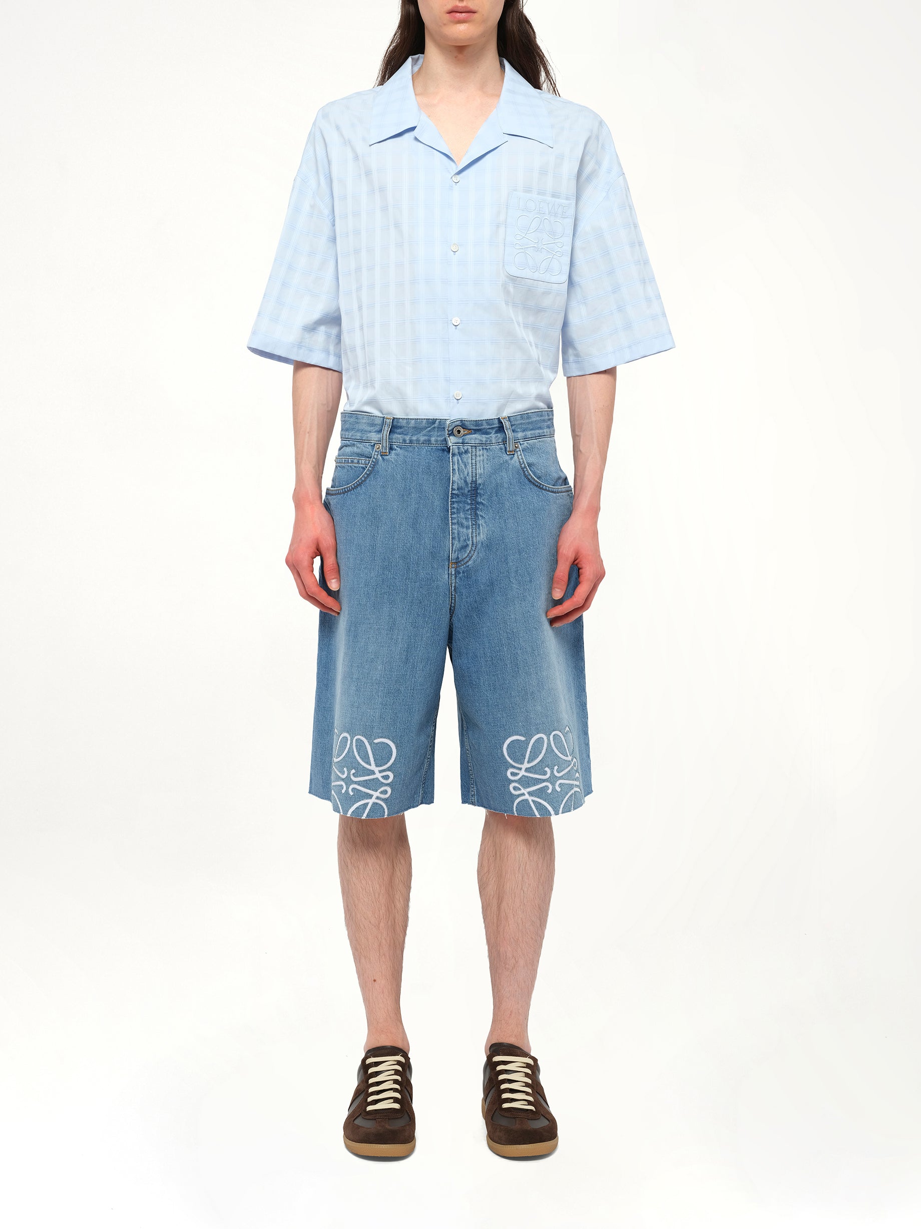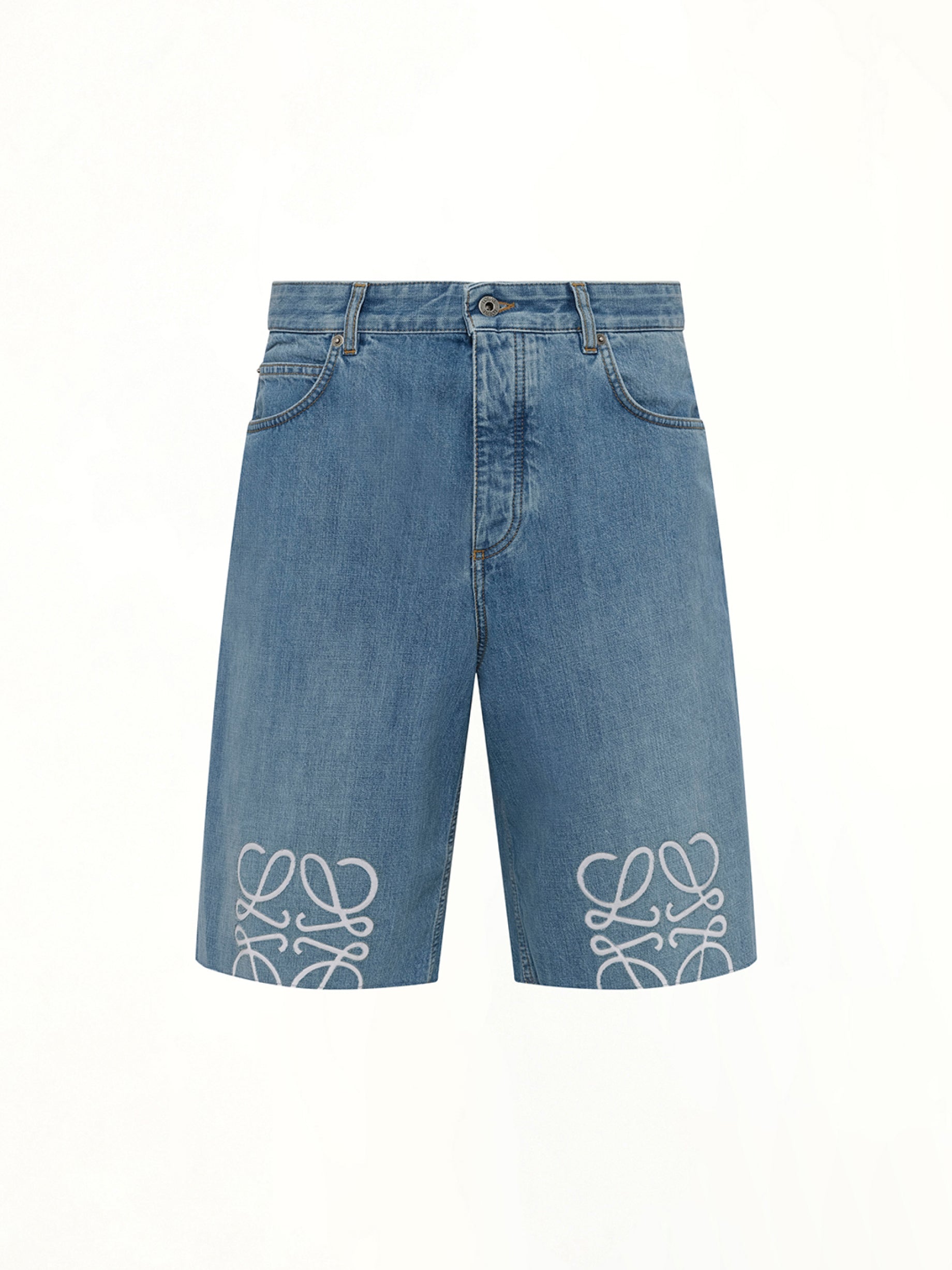 Loewe's Anagram Shorts in Washed Denim is a stylish and versatile addition to any wardrobe. These shorts combine a classic denim look with modern design elements for a unique fashion statement.