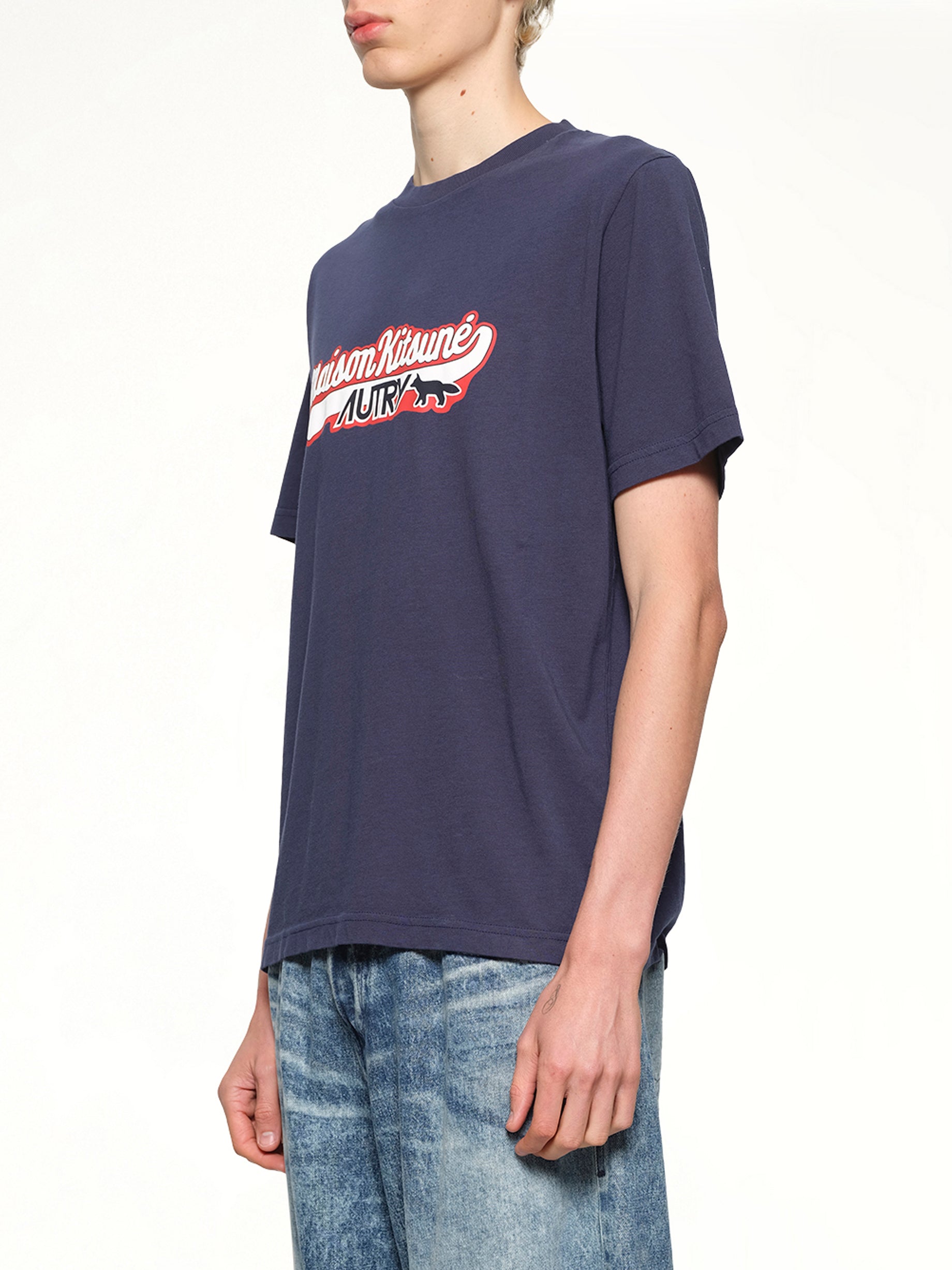 AUTRY's Autry x Maison Kitsune T-Shirt in Blue is a stylish collaboration piece that combines classic design with modern flair. This versatile t-shirt is perfect for casual outings or adding a pop of color to your everyday wardrobe.