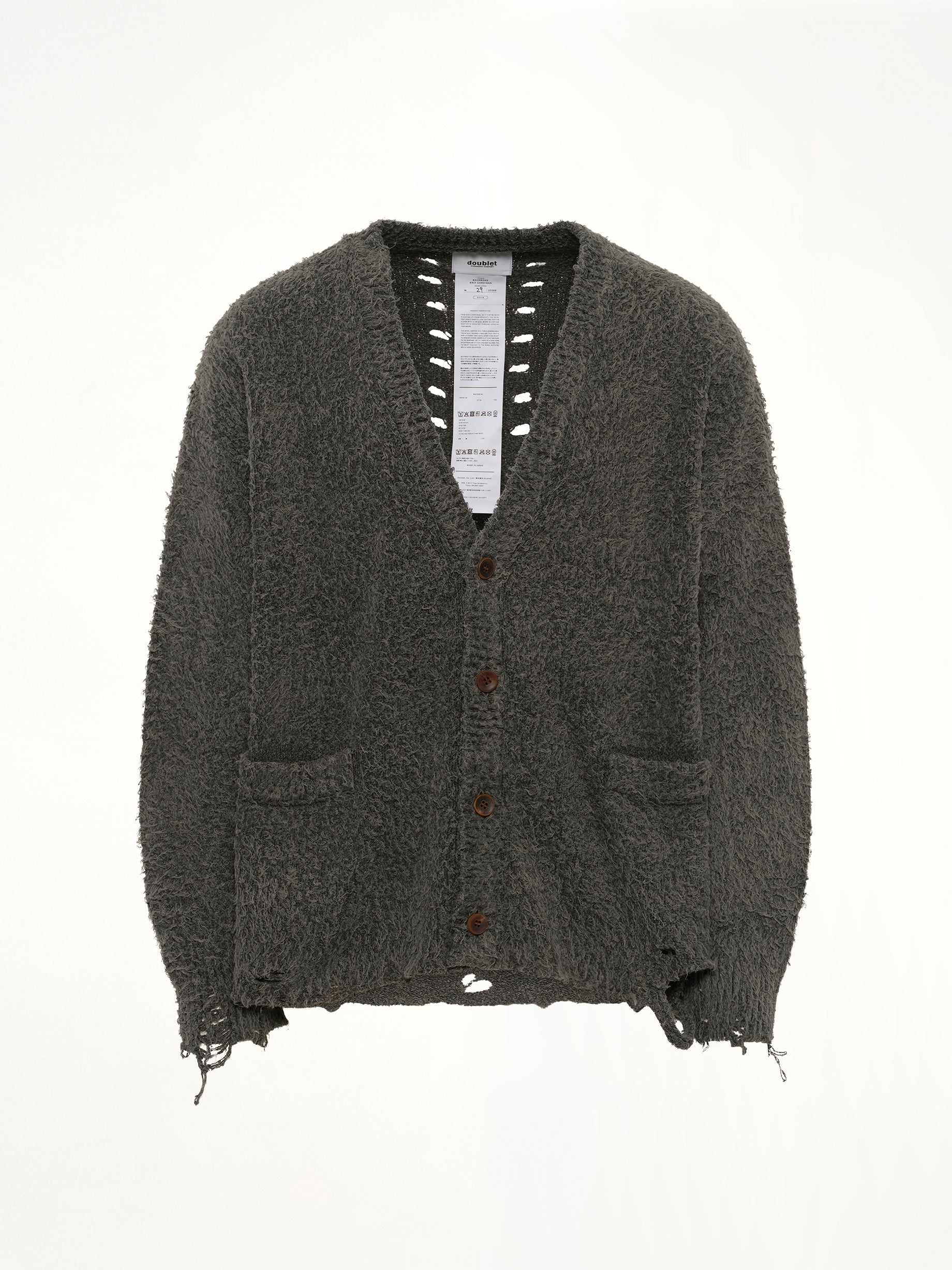 Doublet's Backbone Knit Cardigan in Grey is a stylish and versatile addition to any wardrobe. This cardigan offers a contemporary design with a comfortable fit, perfect for layering in cooler weather.