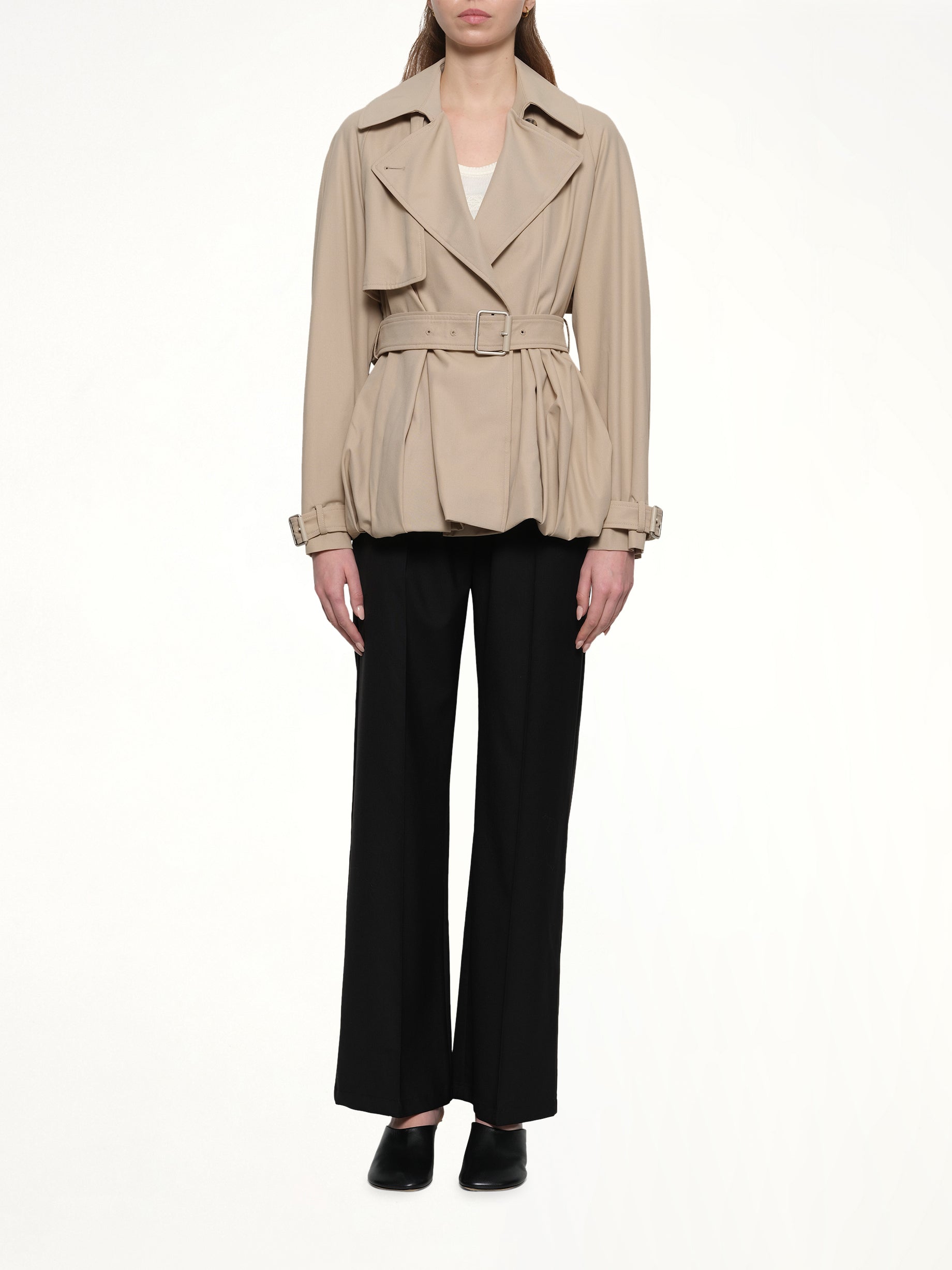 Loewe's Balloon Jacket in Beige is a sophisticated blend of modern design and timeless elegance. This jacket offers a unique silhouette that effortlessly elevates any ensemble.