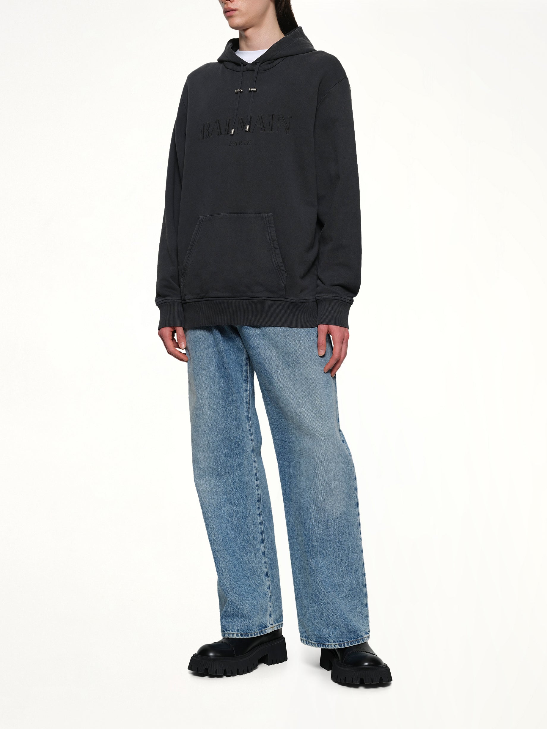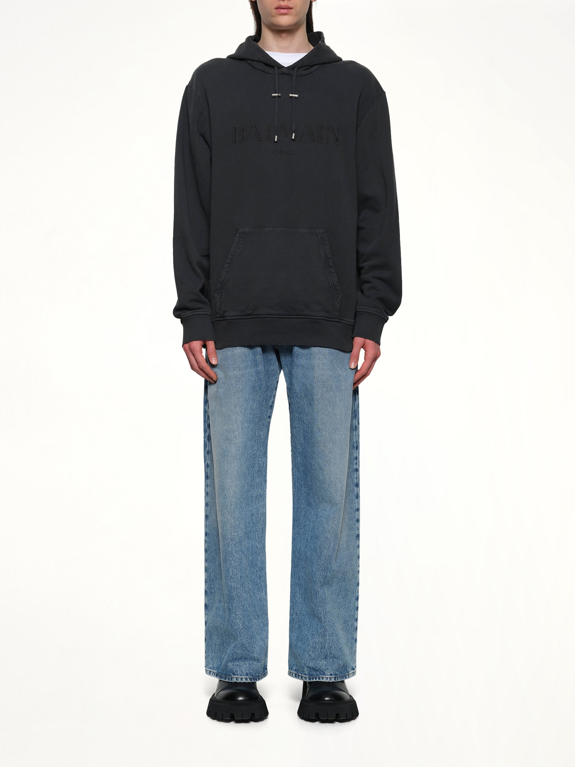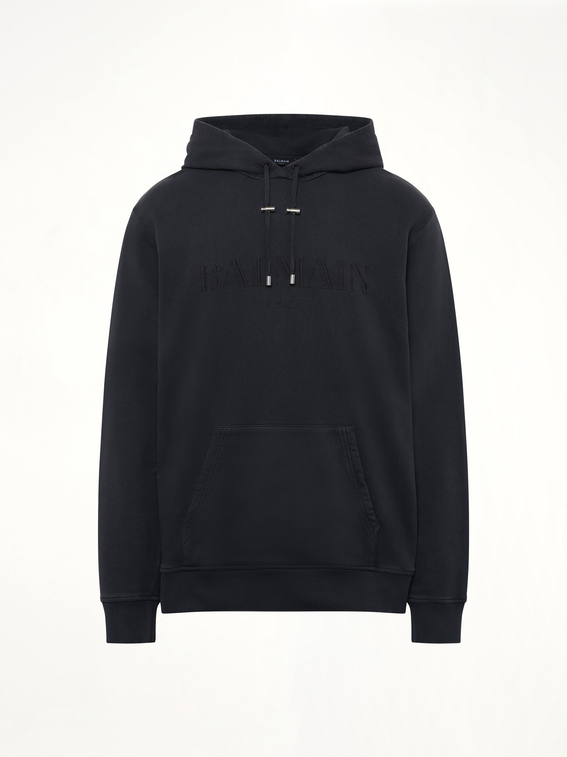 Balmain Vintage Emblem Hoodie in Vintage Black