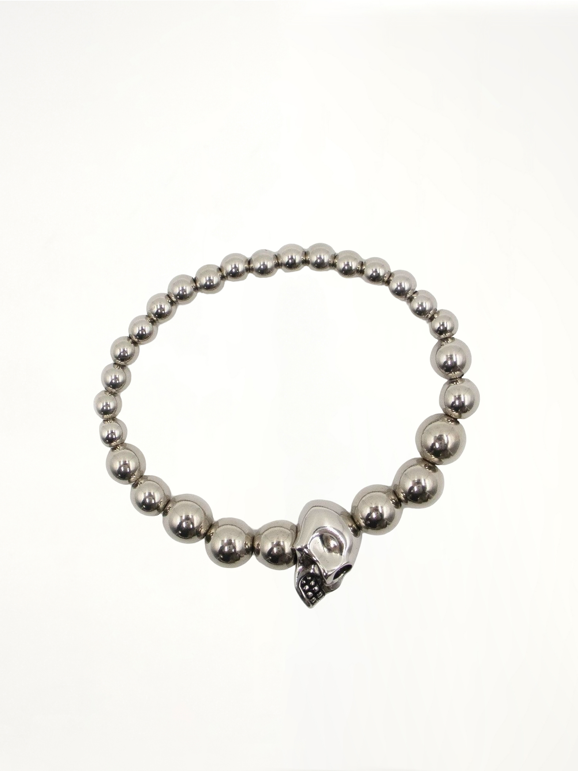 Beaded Skull Motif Bracelet in Silver