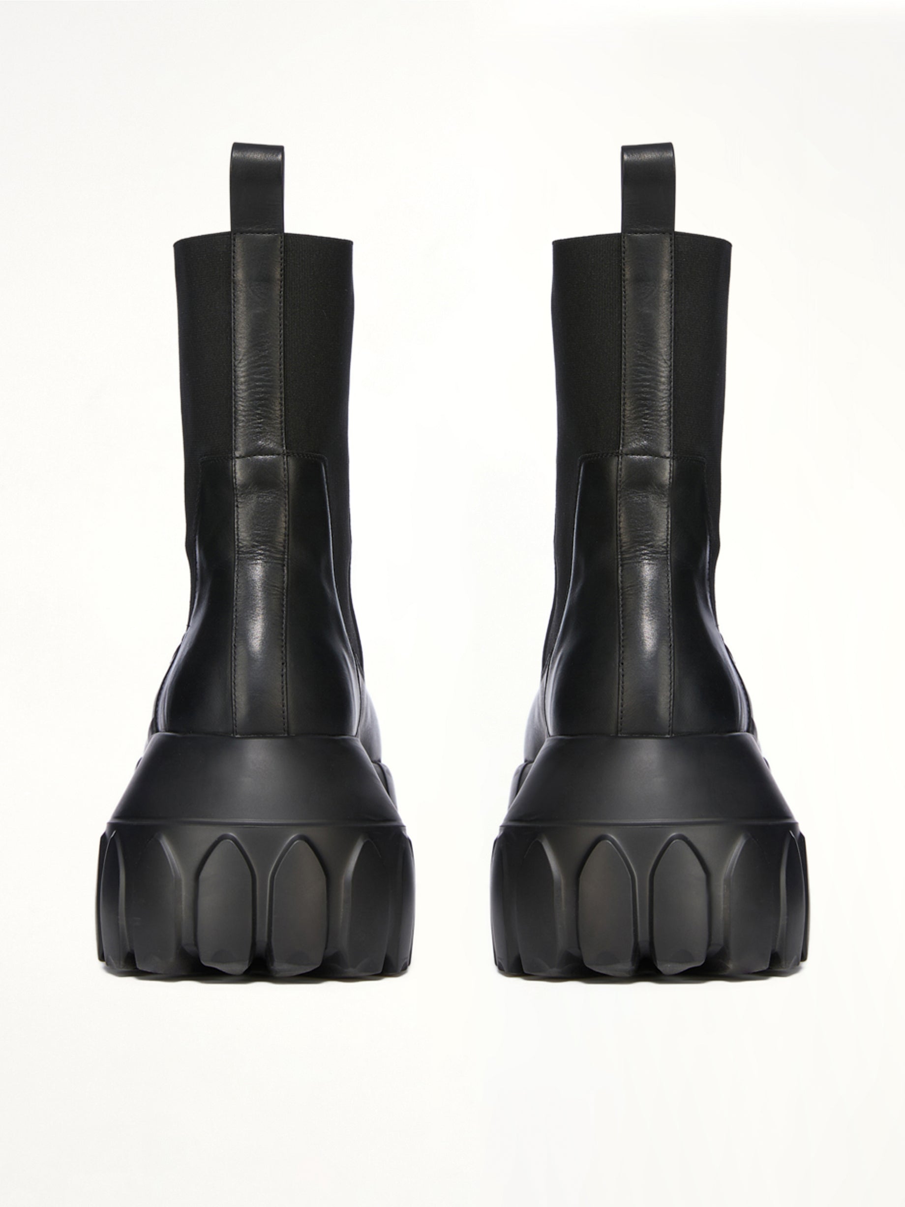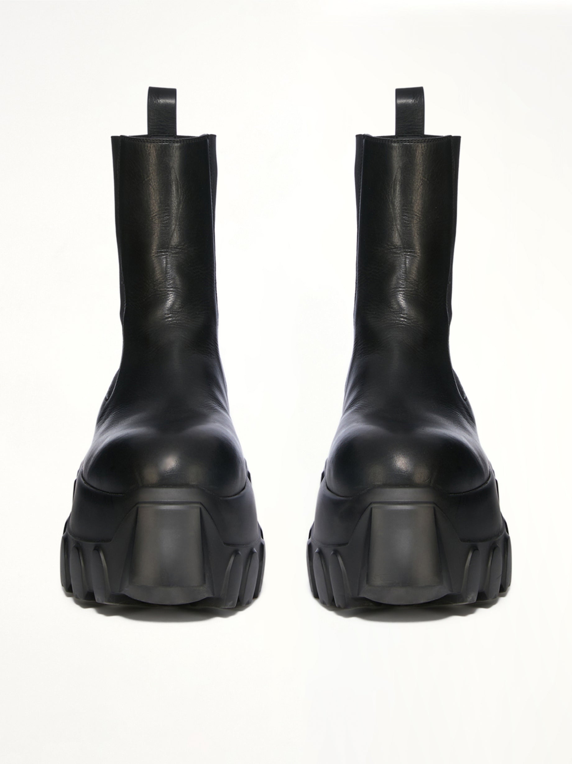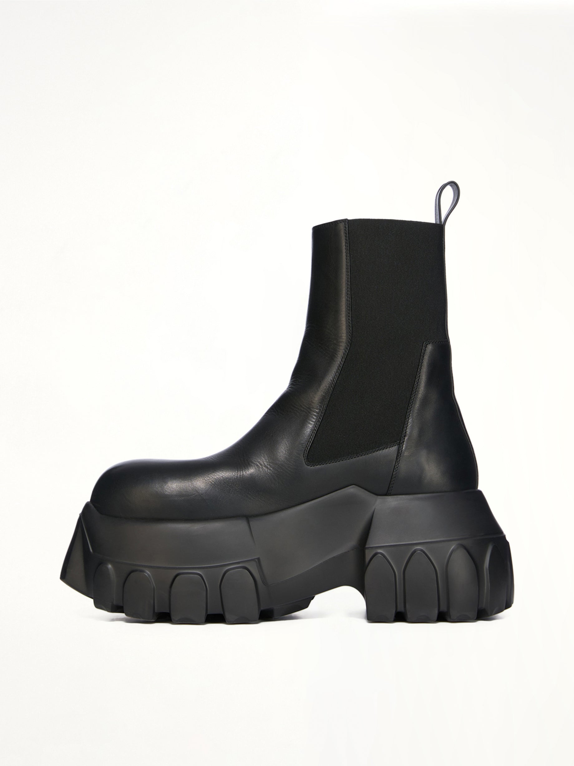 Rick Owens's Beatle Mega Tractor in Black is a bold and avant-garde footwear choice, perfect for those who want to make a statement. With its distinctive design and robust construction, it combines fashion-forward aesthetics with practical functionality.