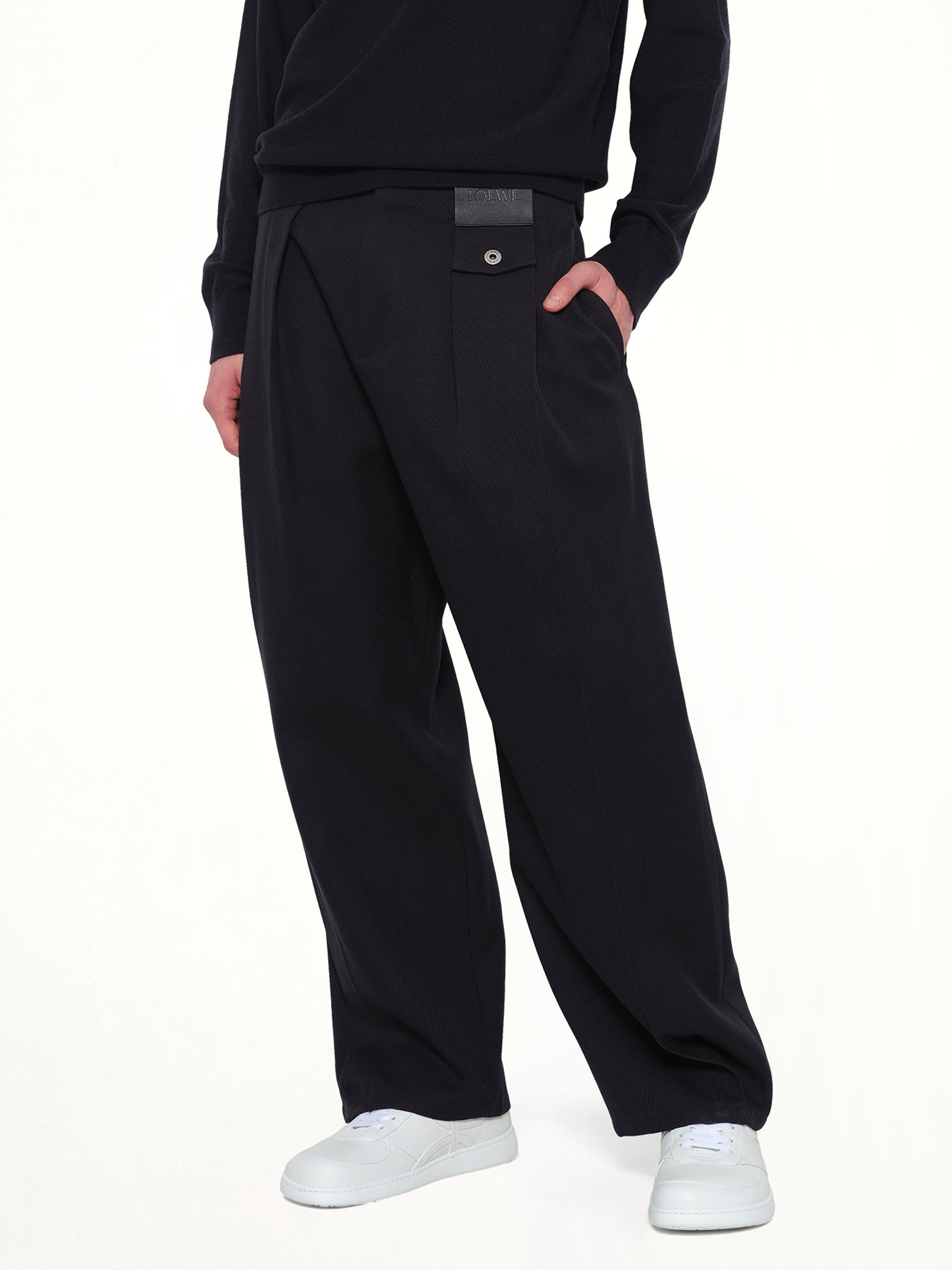 Loewe's Belted Trouser AF in Dark Navy Blue is a sophisticated addition to any wardrobe, offering a sleek silhouette and versatile style. Perfect for both formal and casual occasions, these trousers are designed to provide comfort and elegance.