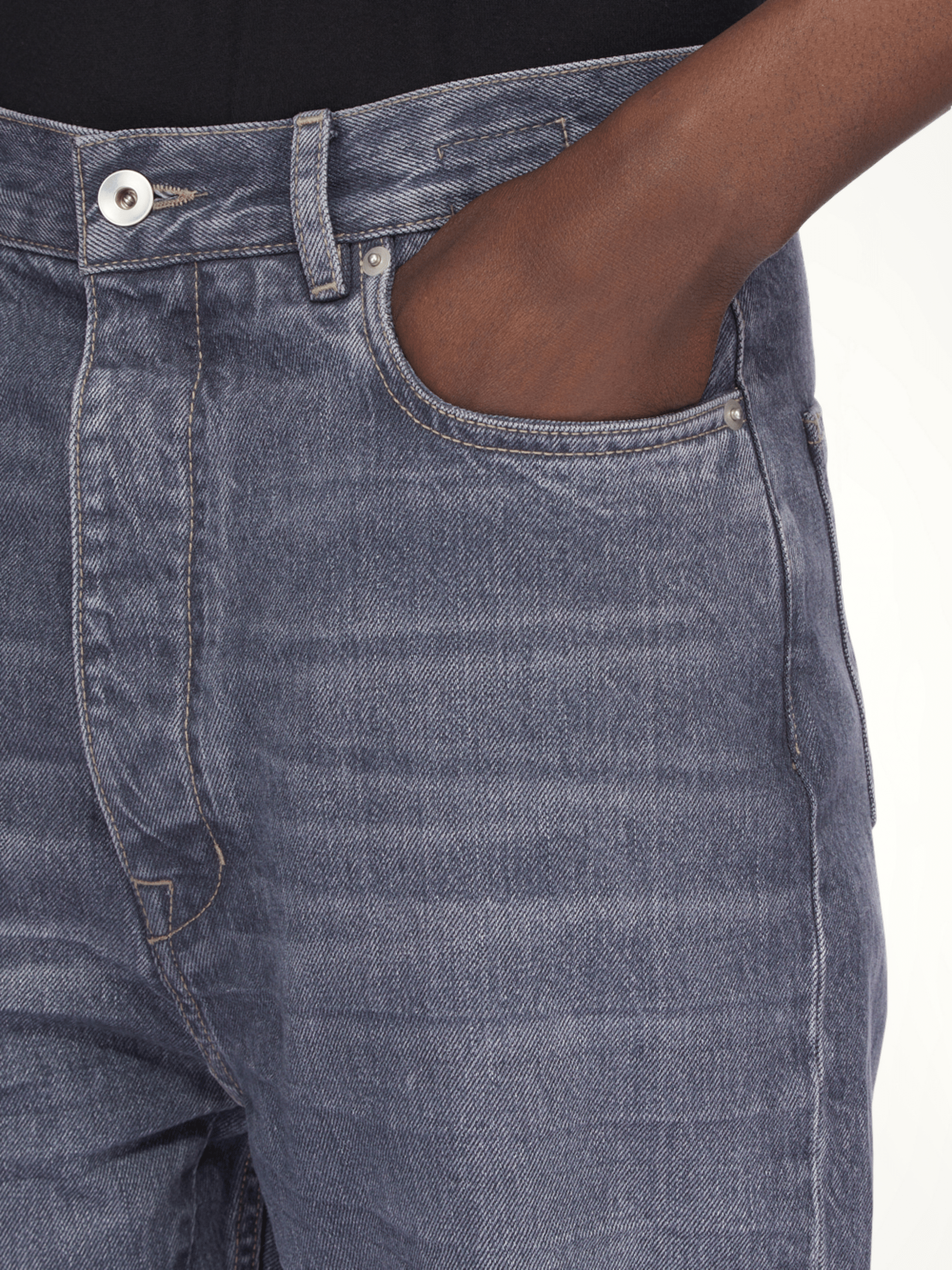 Rick Owens DRKSHDW's Bolan Bootcut in Washed Grey is a stylish and versatile addition to any wardrobe. These jeans offer a modern twist on the classic bootcut silhouette, perfect for both casual and semi-formal occasions.