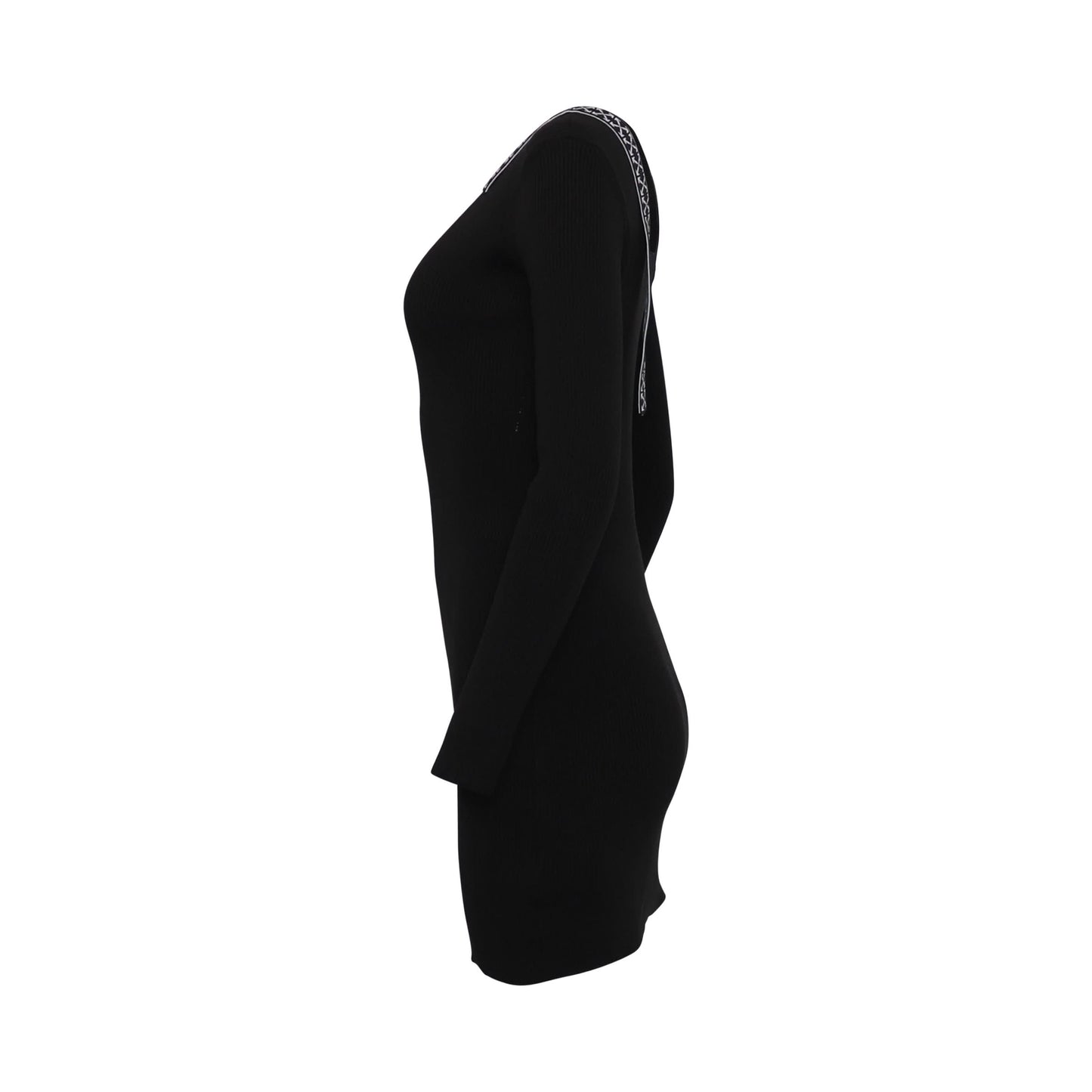 Arrow ribbed knit long sleeve dress with signature Arrows motif at one shoulder
