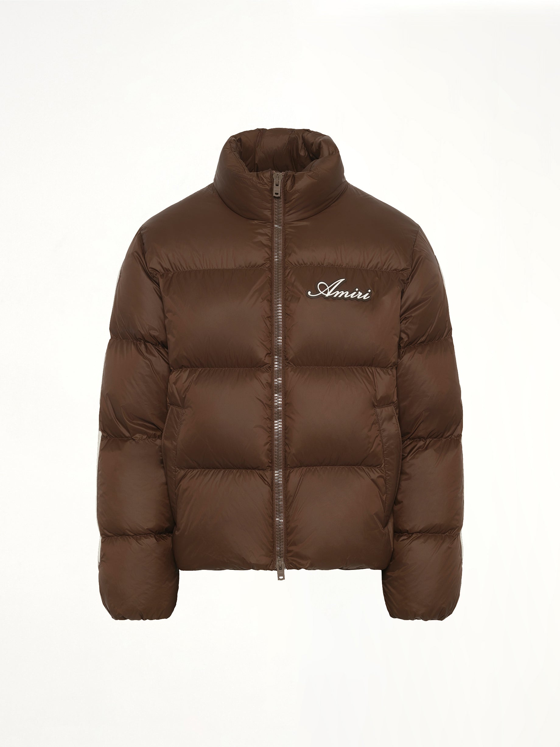 Amiri's Bones Down Jacket in Dark Brown is a stylish and functional outerwear piece designed for both warmth and fashion. This jacket combines a sleek silhouette with unique detailing, making it a standout addition to any wardrobe.