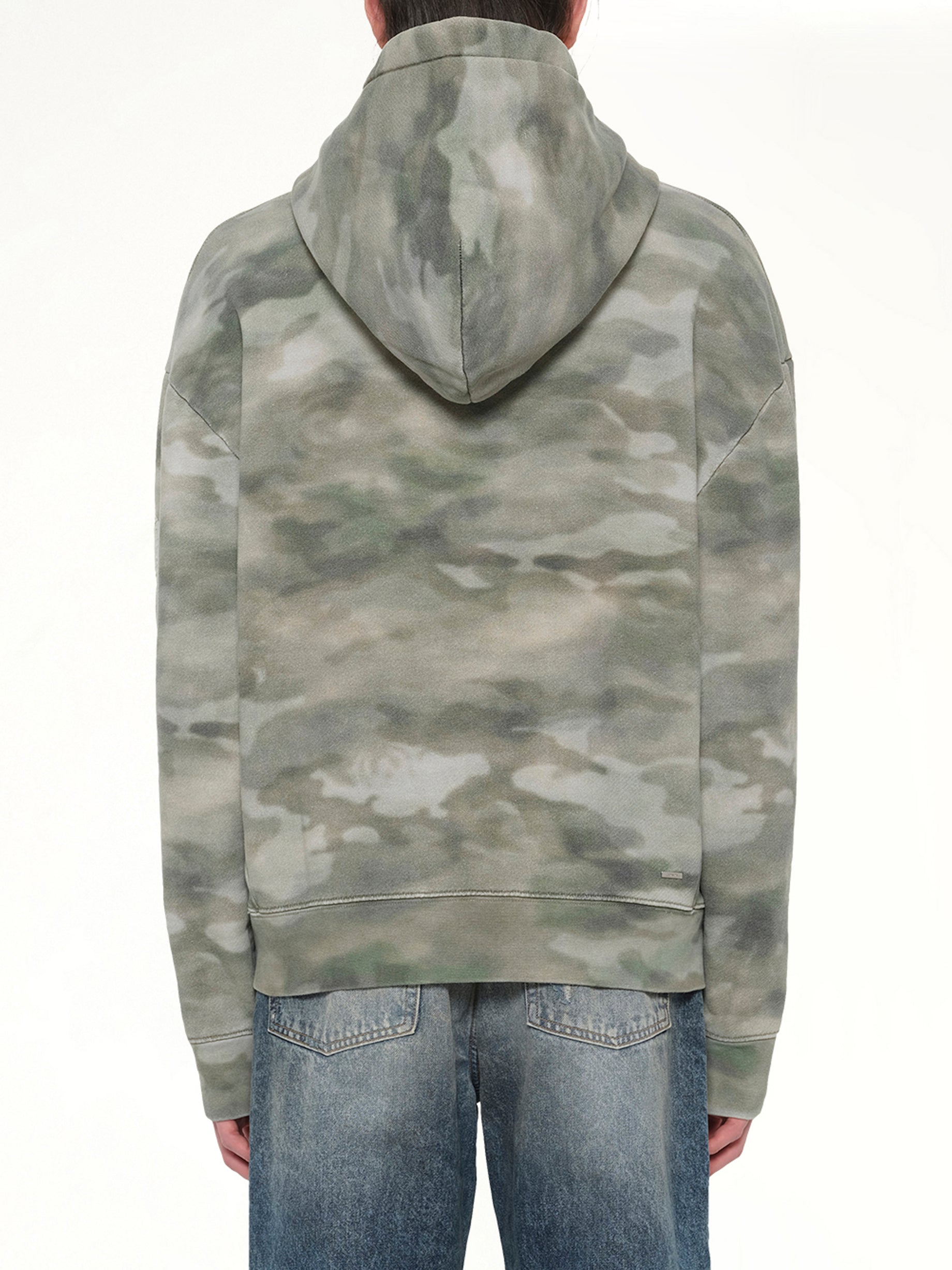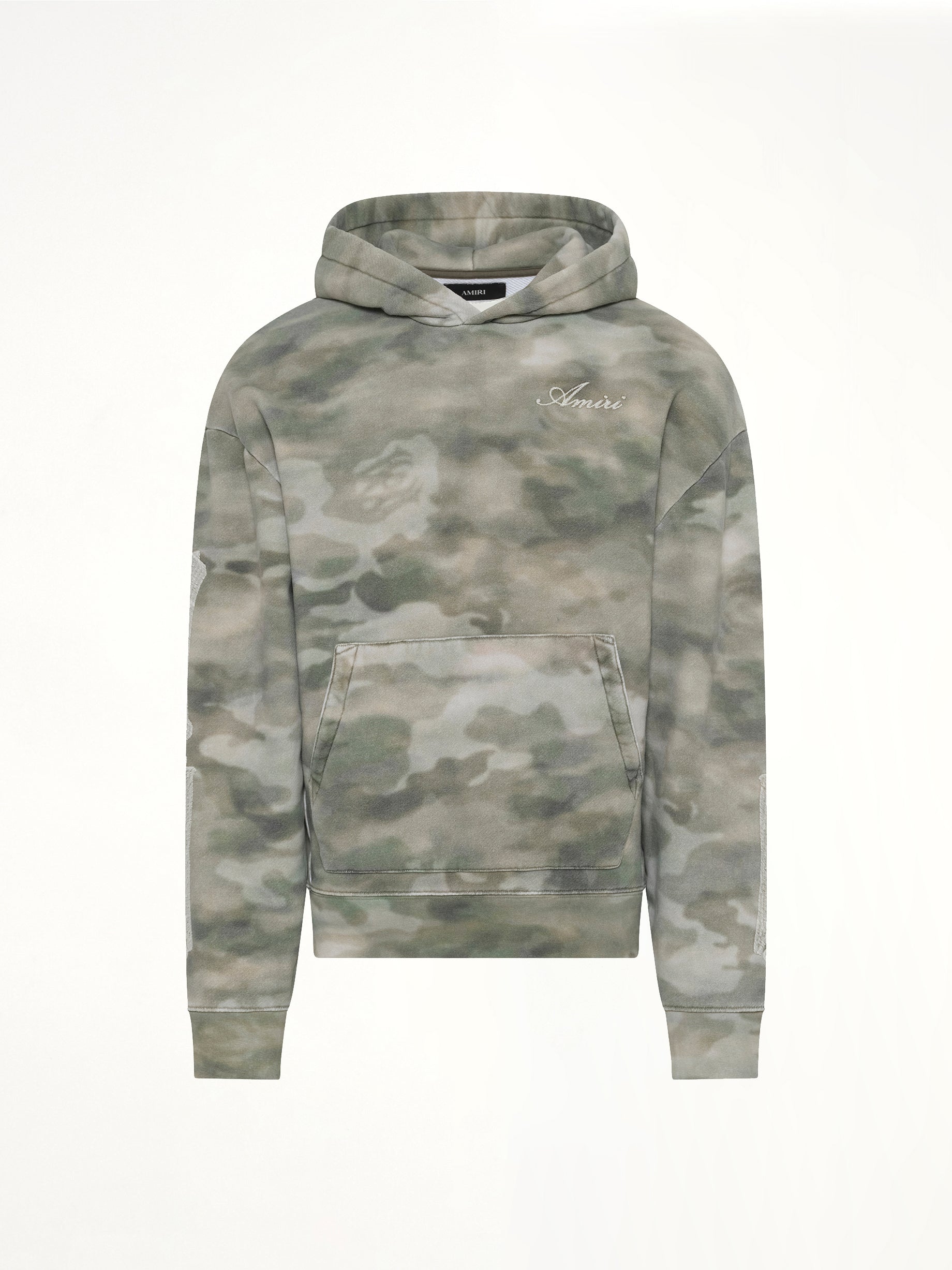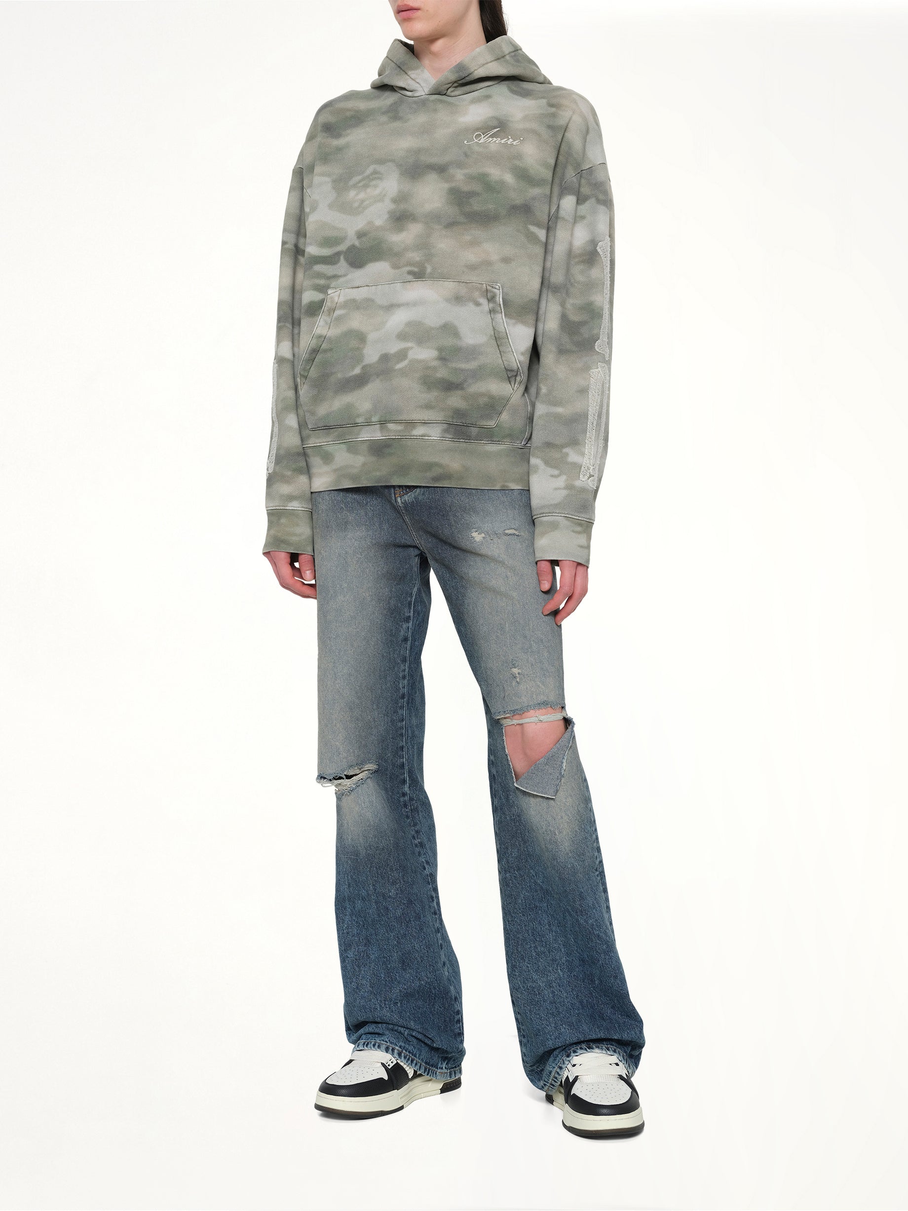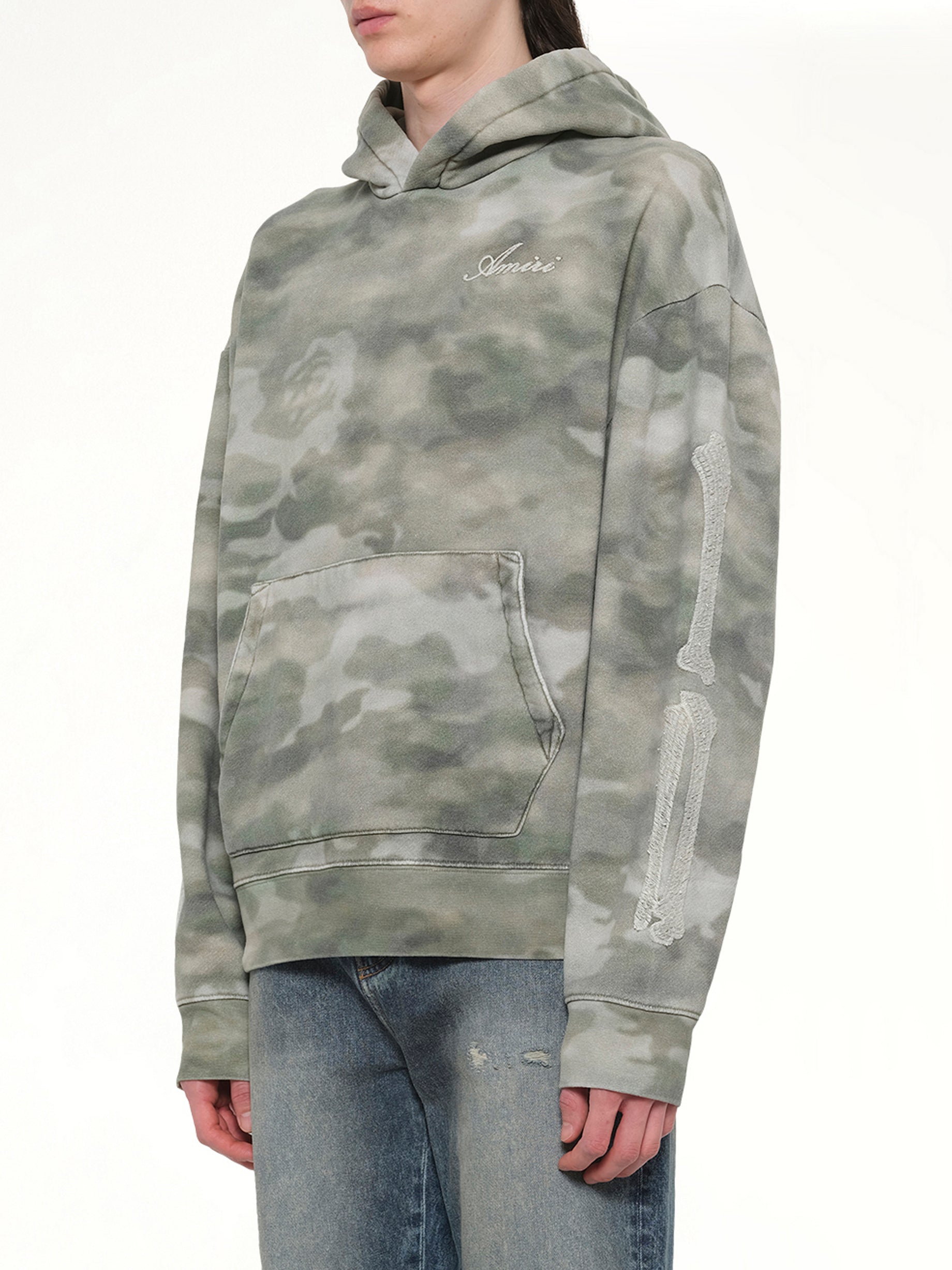 Amiri's Bones Oversized Hoodie in Camo is a statement piece that combines comfort with a bold aesthetic. This hoodie features a unique camo pattern that stands out in any wardrobe.