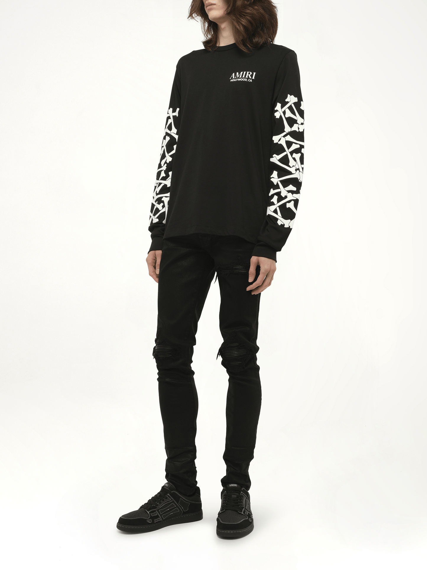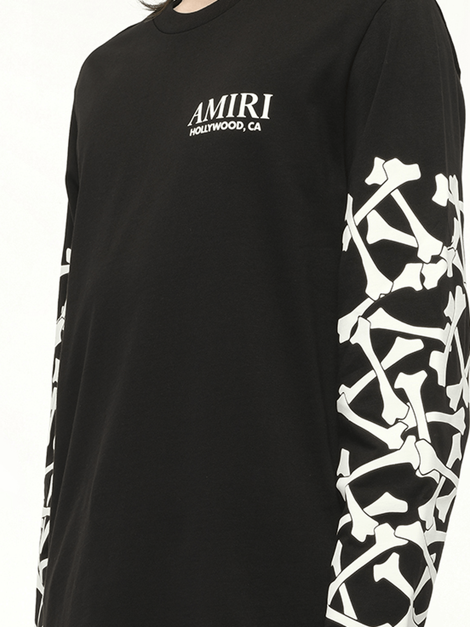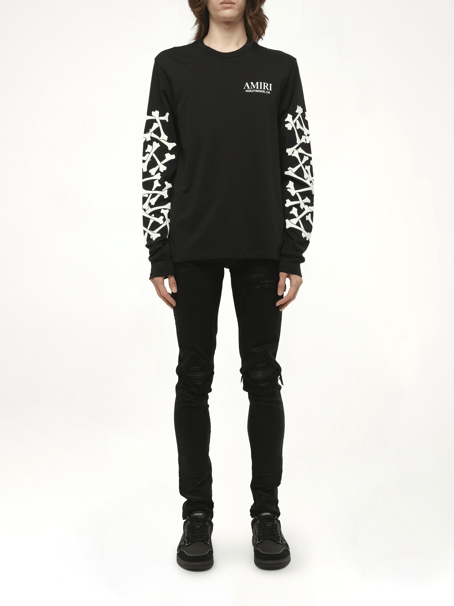 AMIRI's Bones Stacked L/S T-Shirt in Black is a striking piece that combines edgy design with premium craftsmanship. Perfect for making a bold statement, this long-sleeve tee is a must-have for any fashion-forward wardrobe.