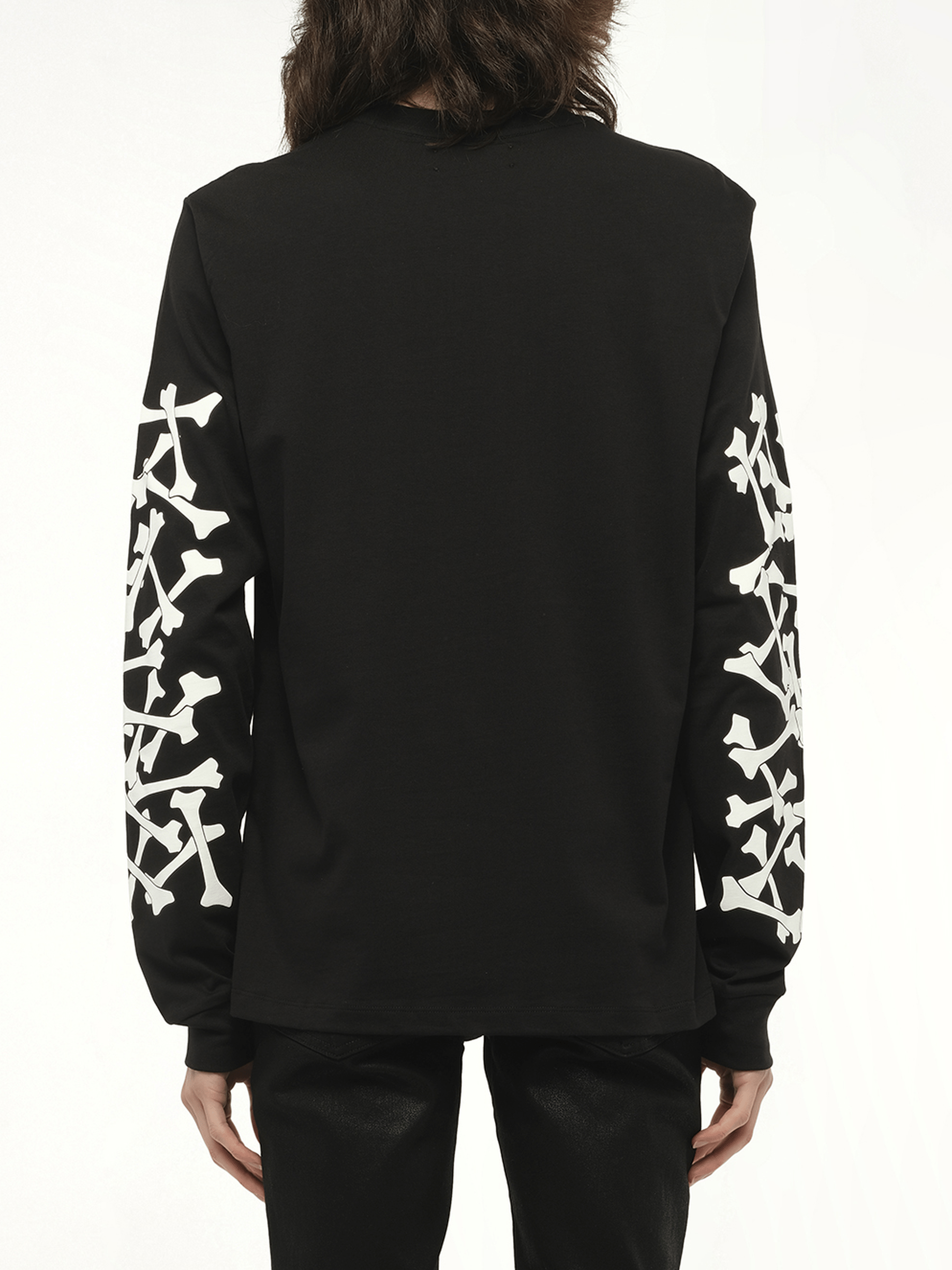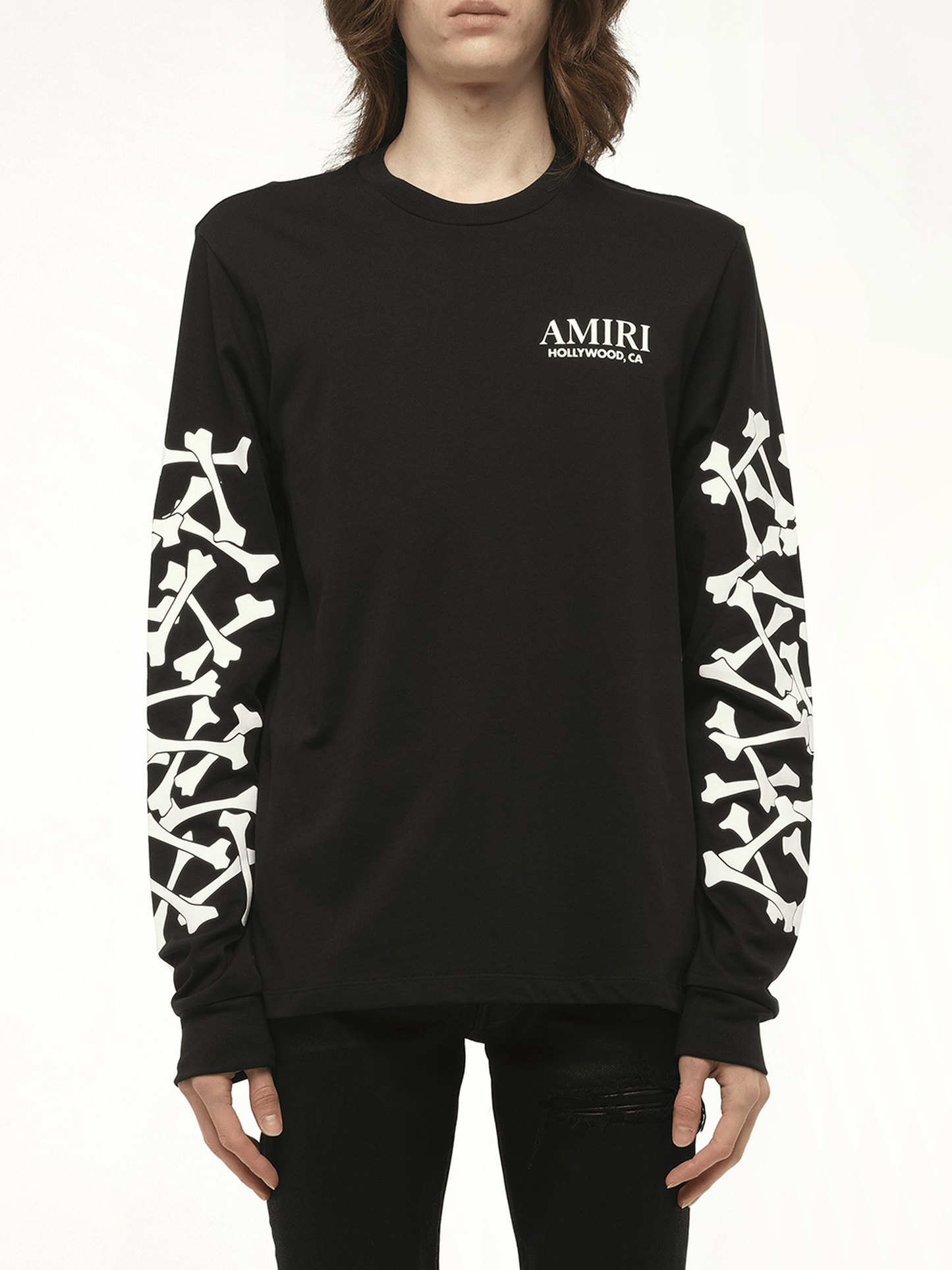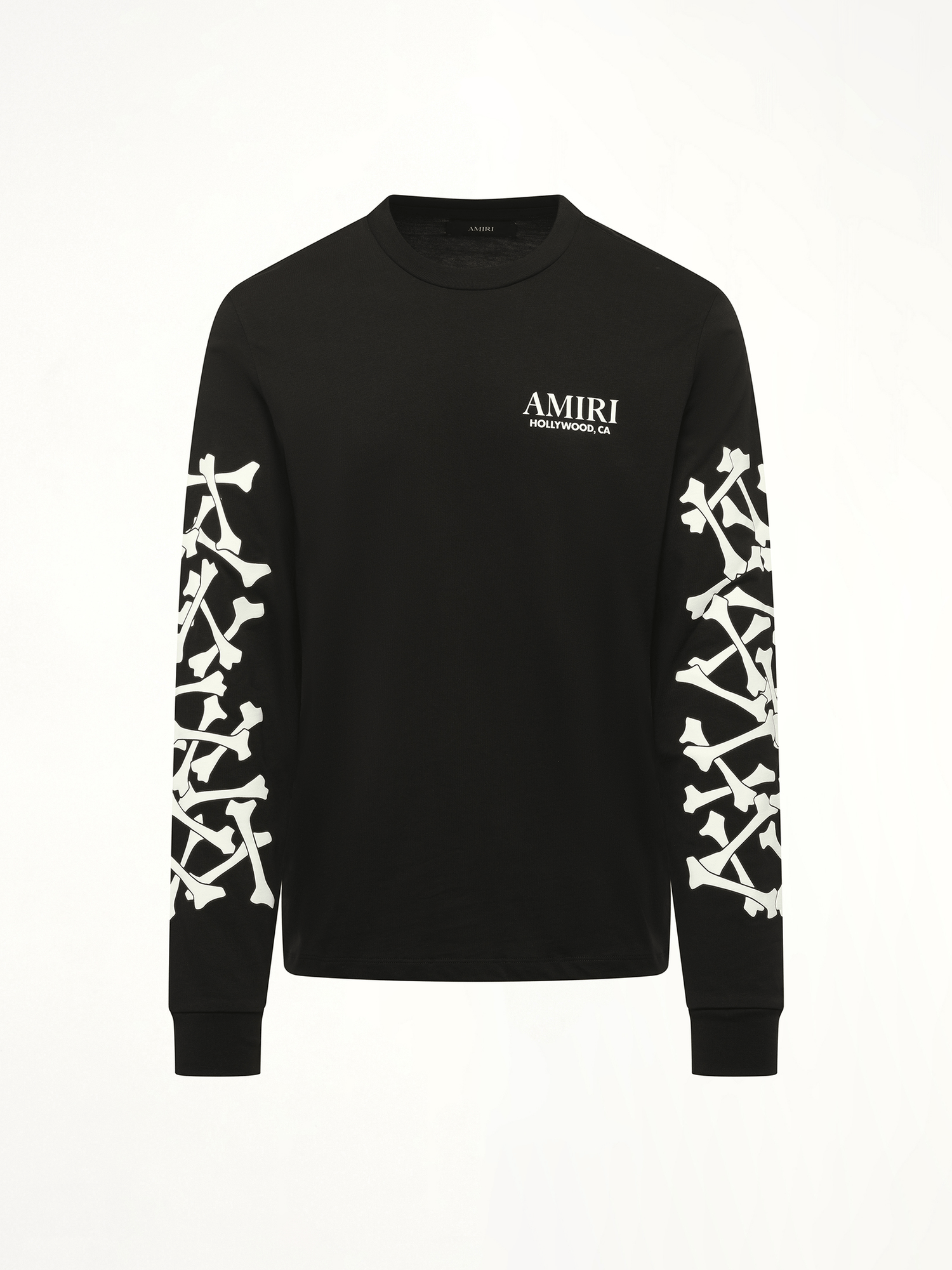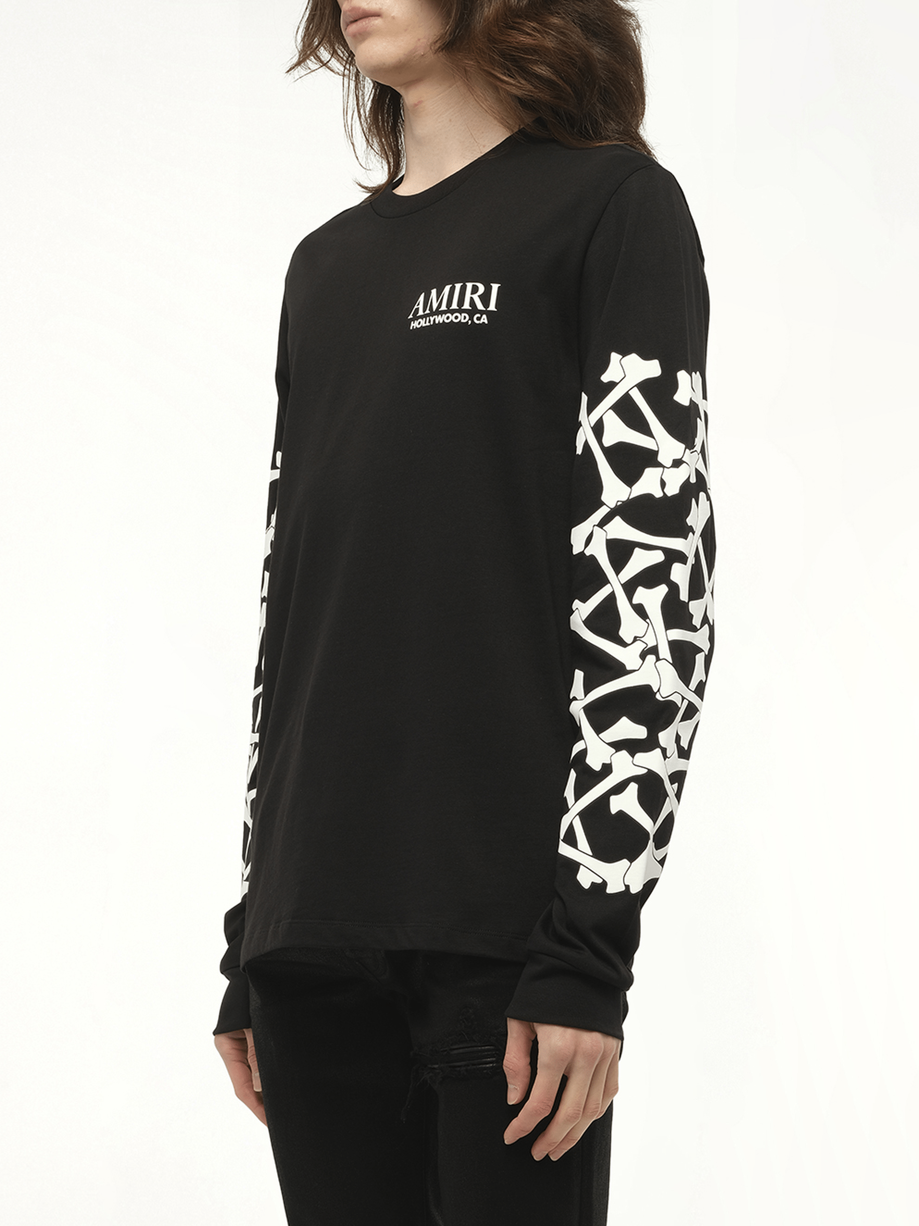 AMIRI's Bones Stacked L/S T-Shirt in Black is a striking piece that combines edgy design with premium craftsmanship. Perfect for making a bold statement, this long-sleeve tee is a must-have for any fashion-forward wardrobe.