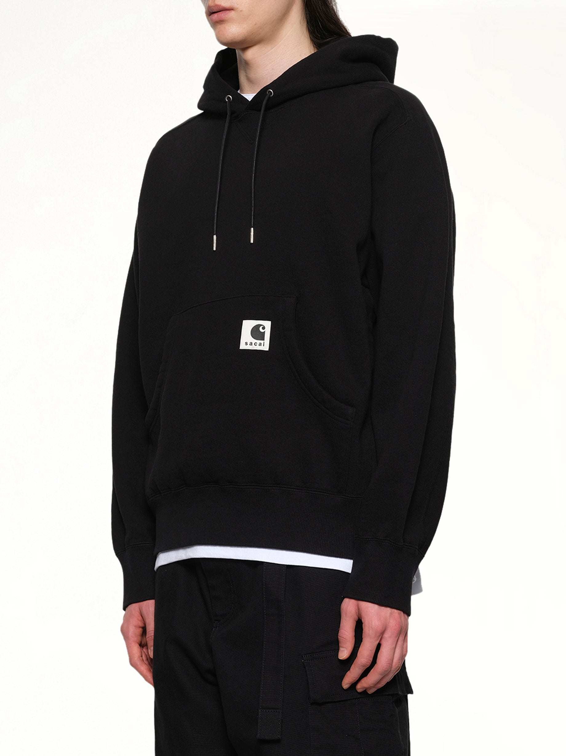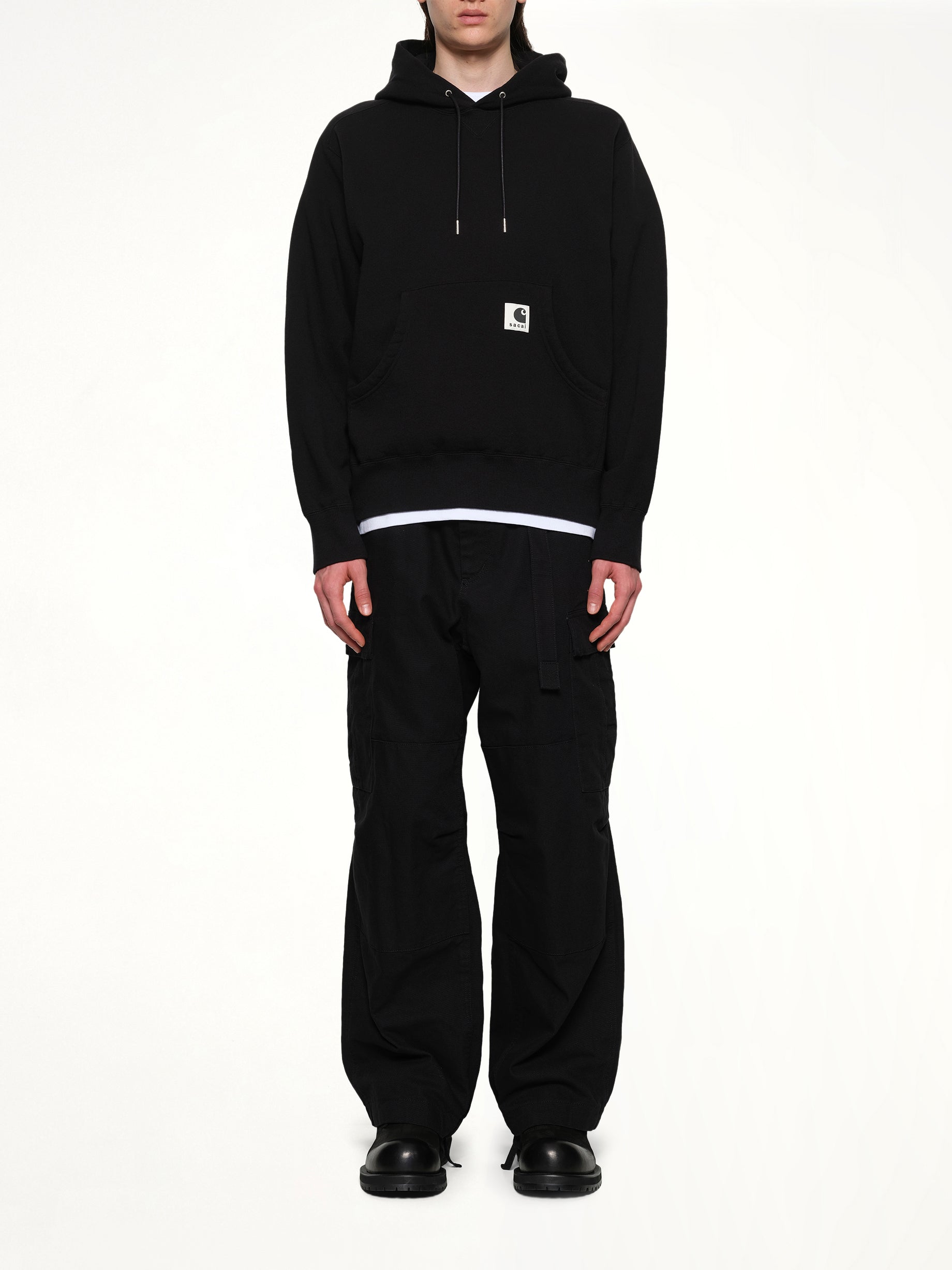 Sacai's Carhartt WIP Cotton Jersey Hoodie in Black is a versatile and stylish piece that combines comfort with a modern aesthetic. Perfect for casual wear, this hoodie offers a relaxed fit and timeless design.