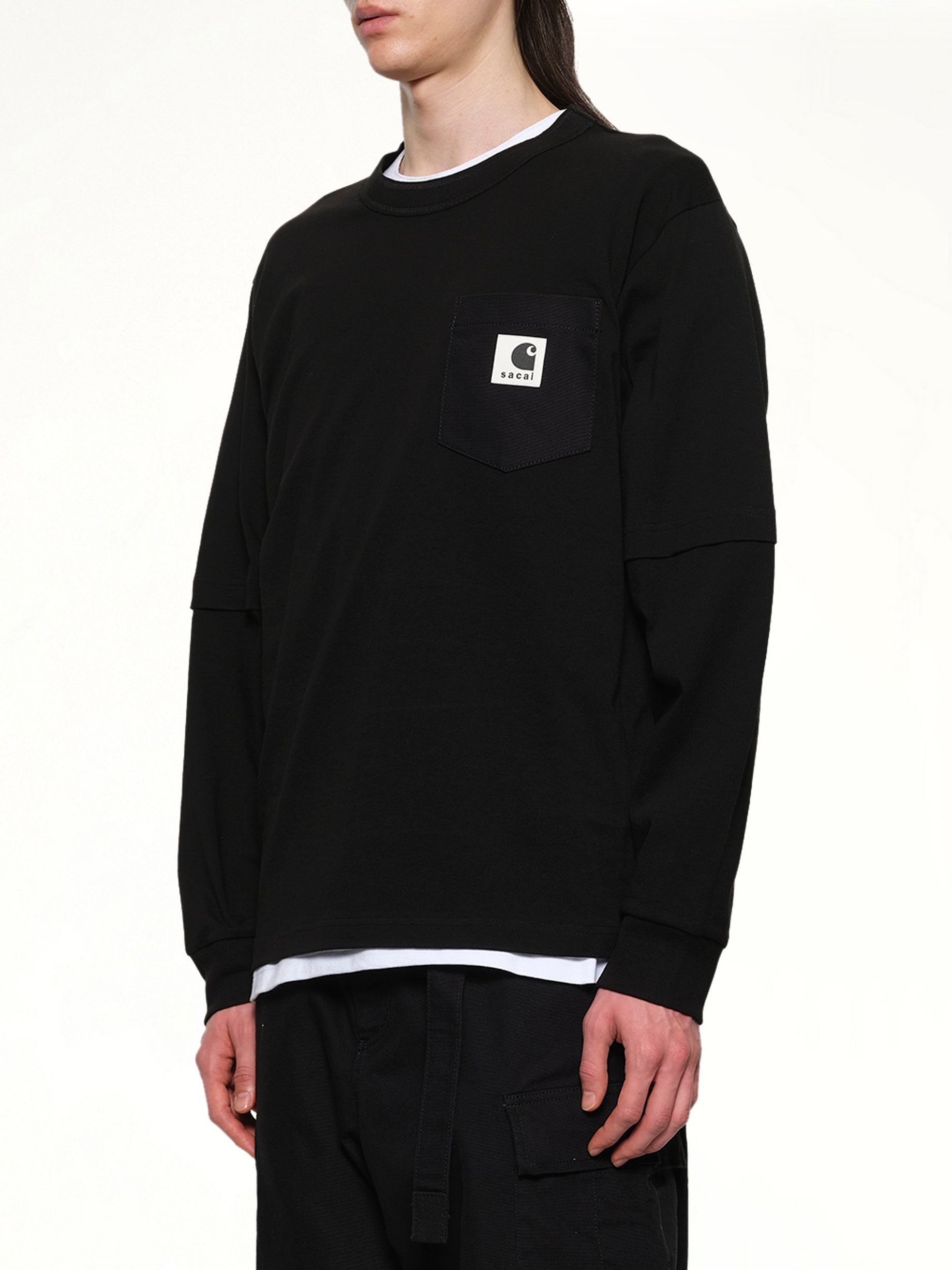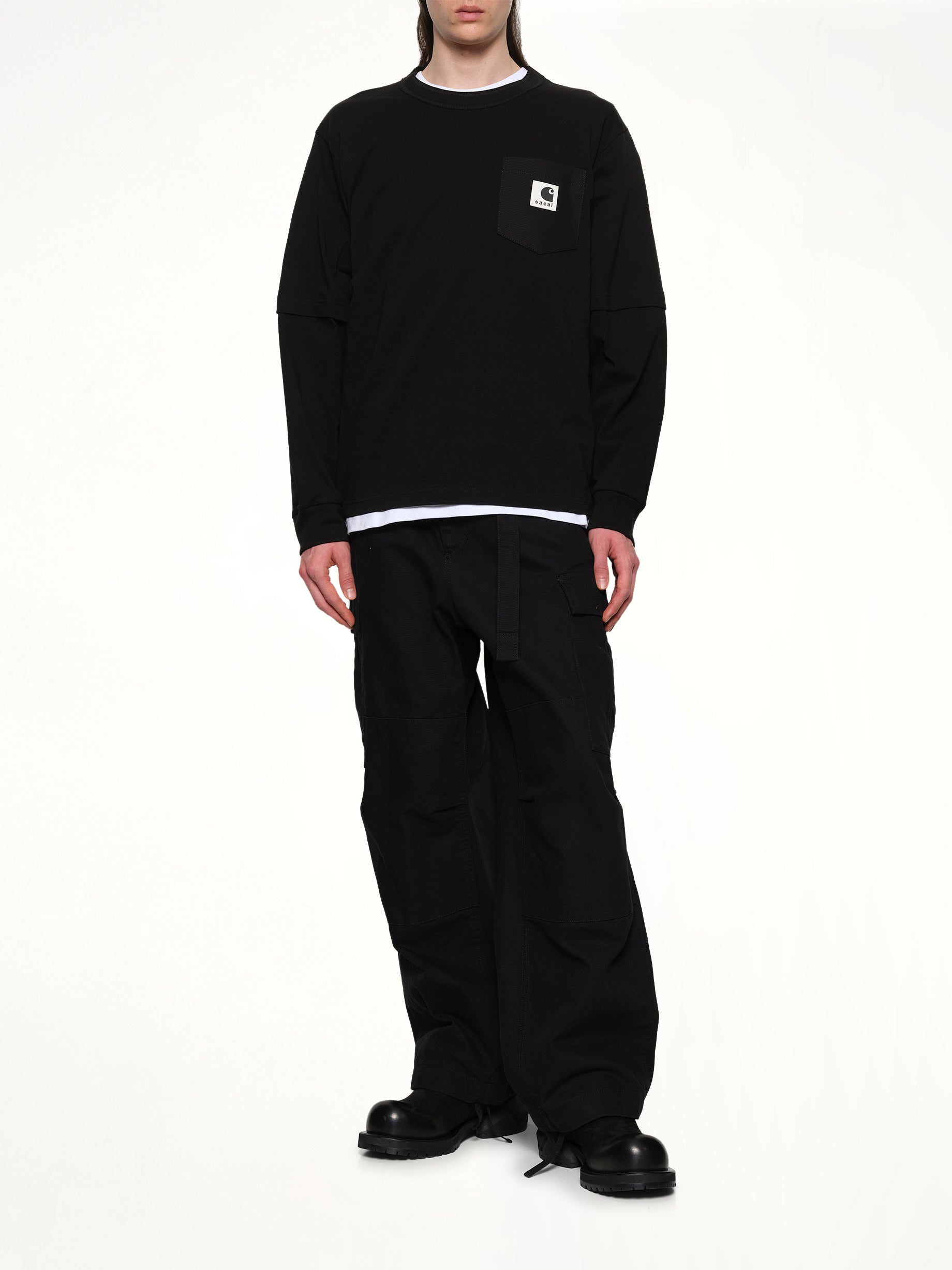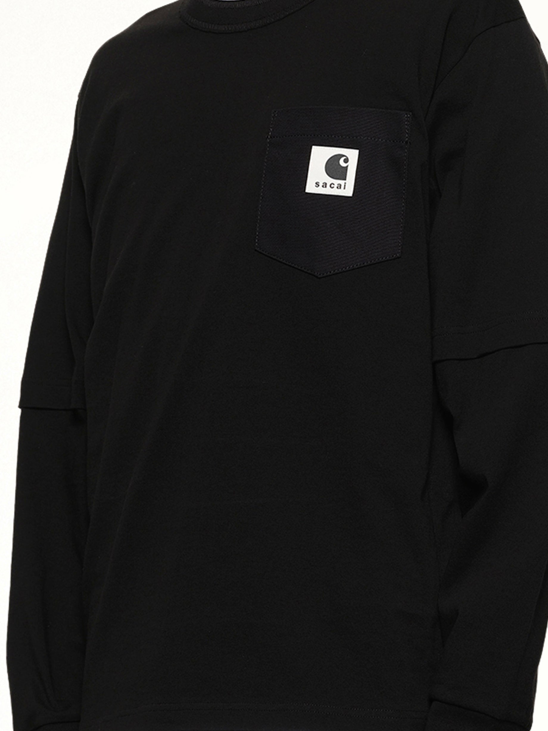 Sacai's Carhartt WIP Cotton Jersey L/S T-Shirt in Black is a versatile and stylish addition to any wardrobe. This long-sleeve tee combines comfort with a sleek design, perfect for casual or layered looks.