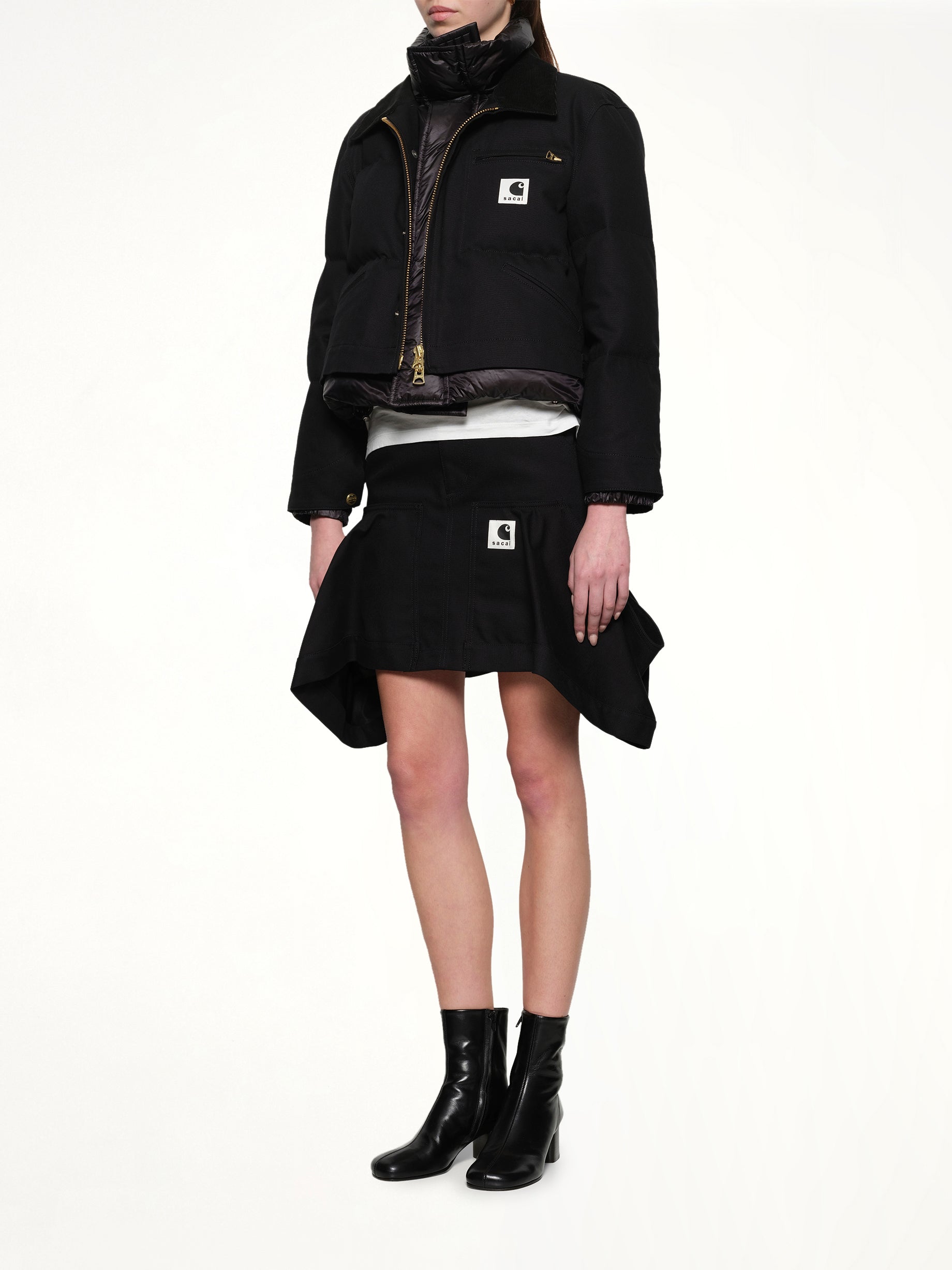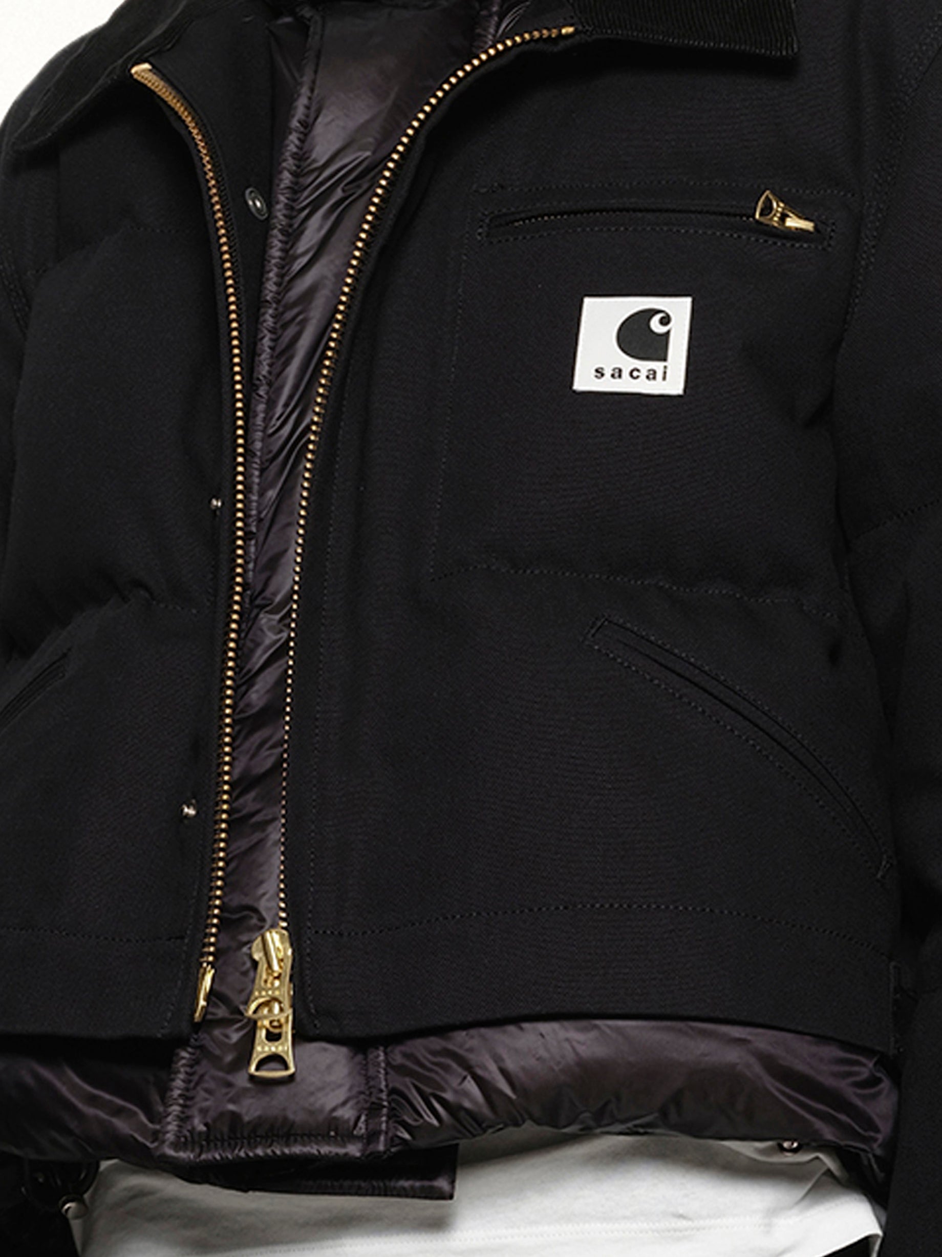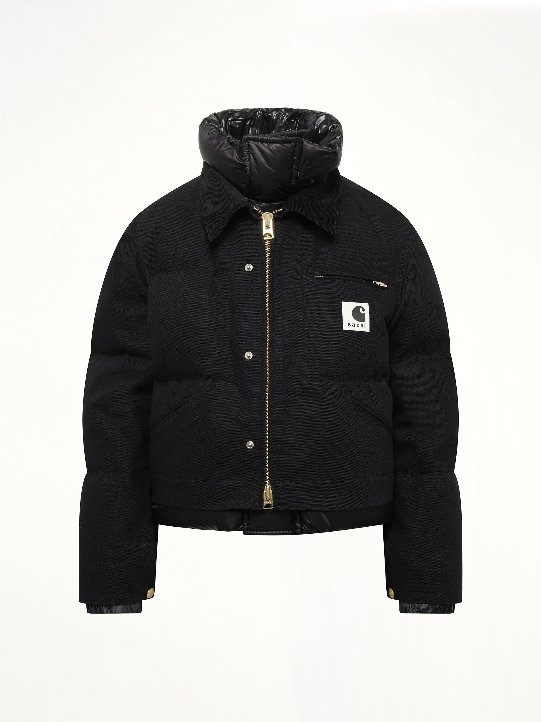 Sacai's Carhartt WIP Duck Puffer Jacket in Black is a stylish and functional outerwear piece designed for both warmth and durability. This jacket combines the rugged aesthetic of Carhartt with Sacai's innovative design approach.