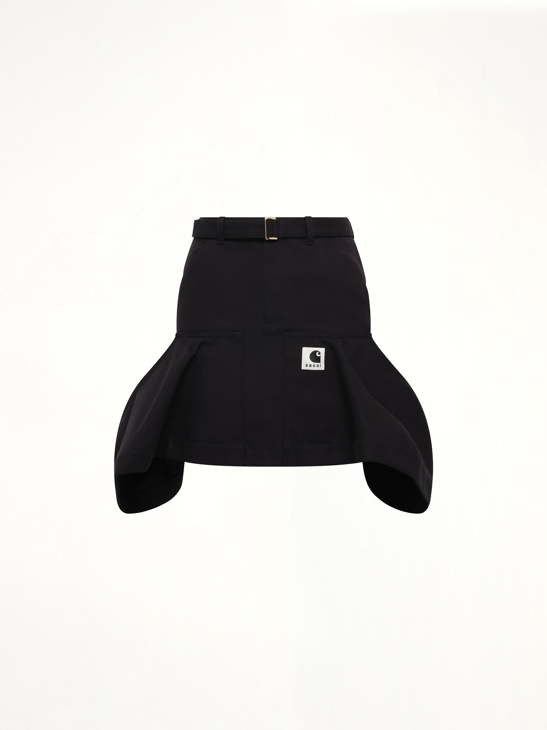 Sacai's Carhartt WIP Duck Skirt in Black is a stylish blend of workwear durability and contemporary fashion. This skirt offers a unique silhouette that combines functionality with a modern edge.