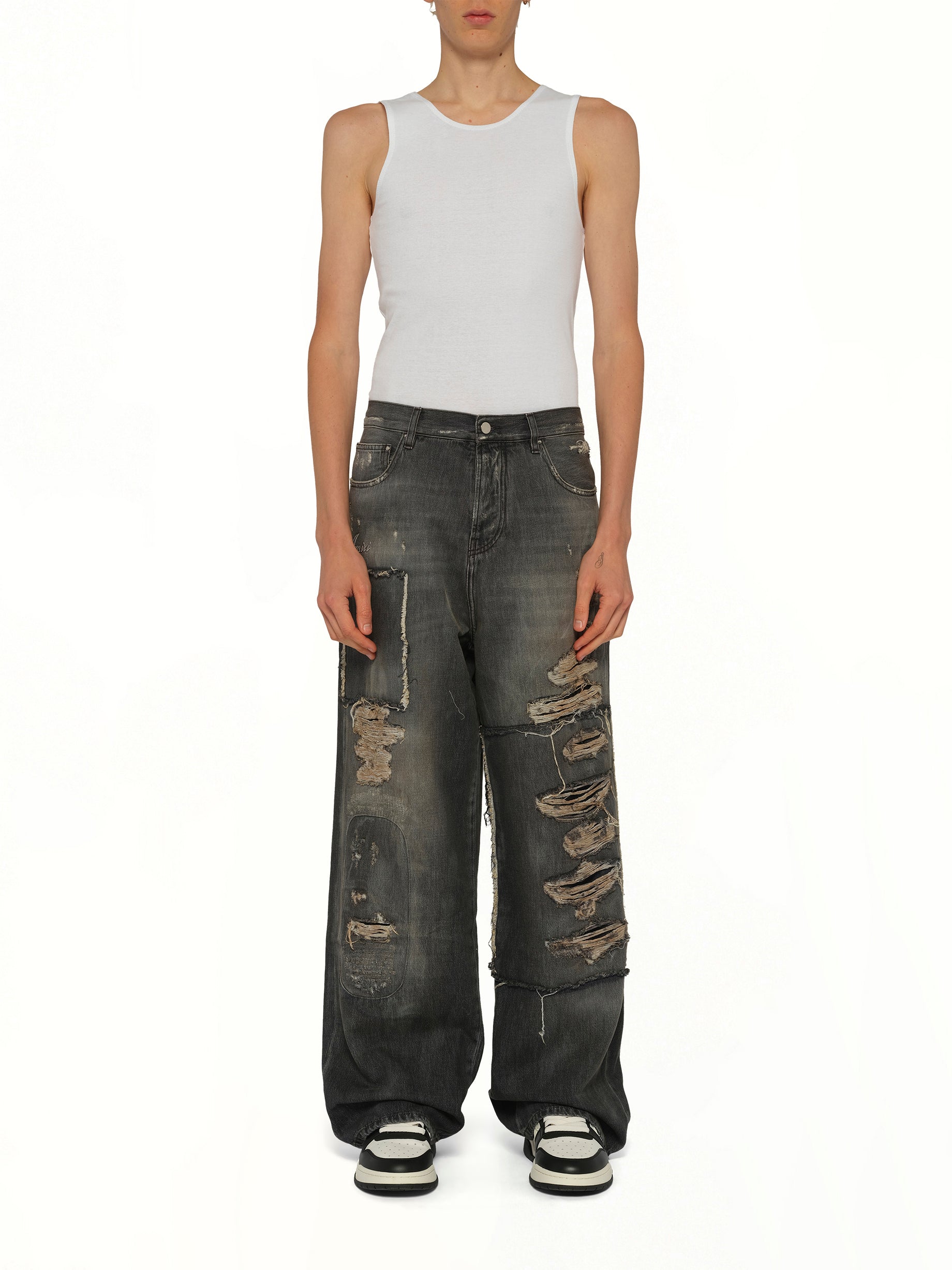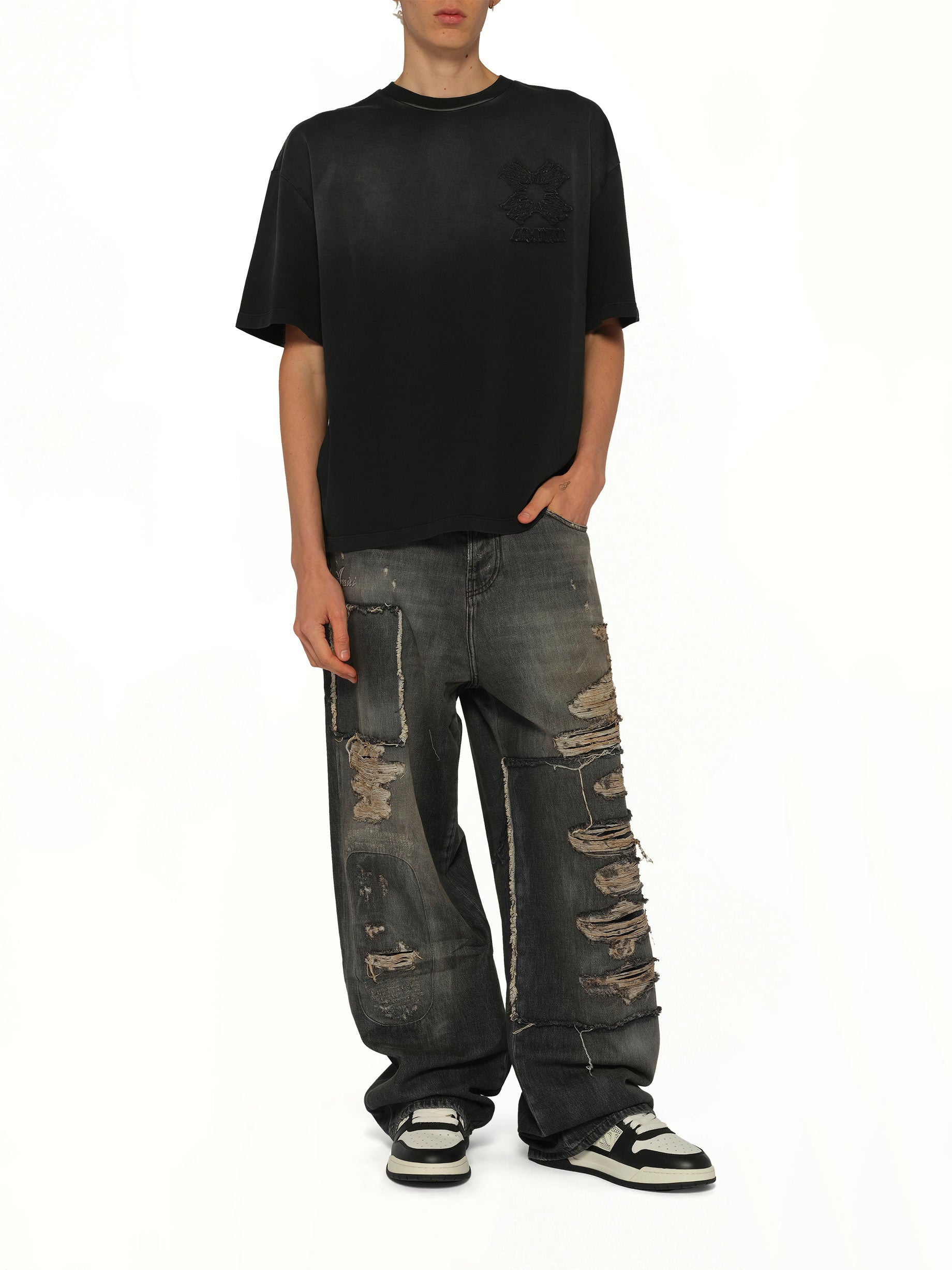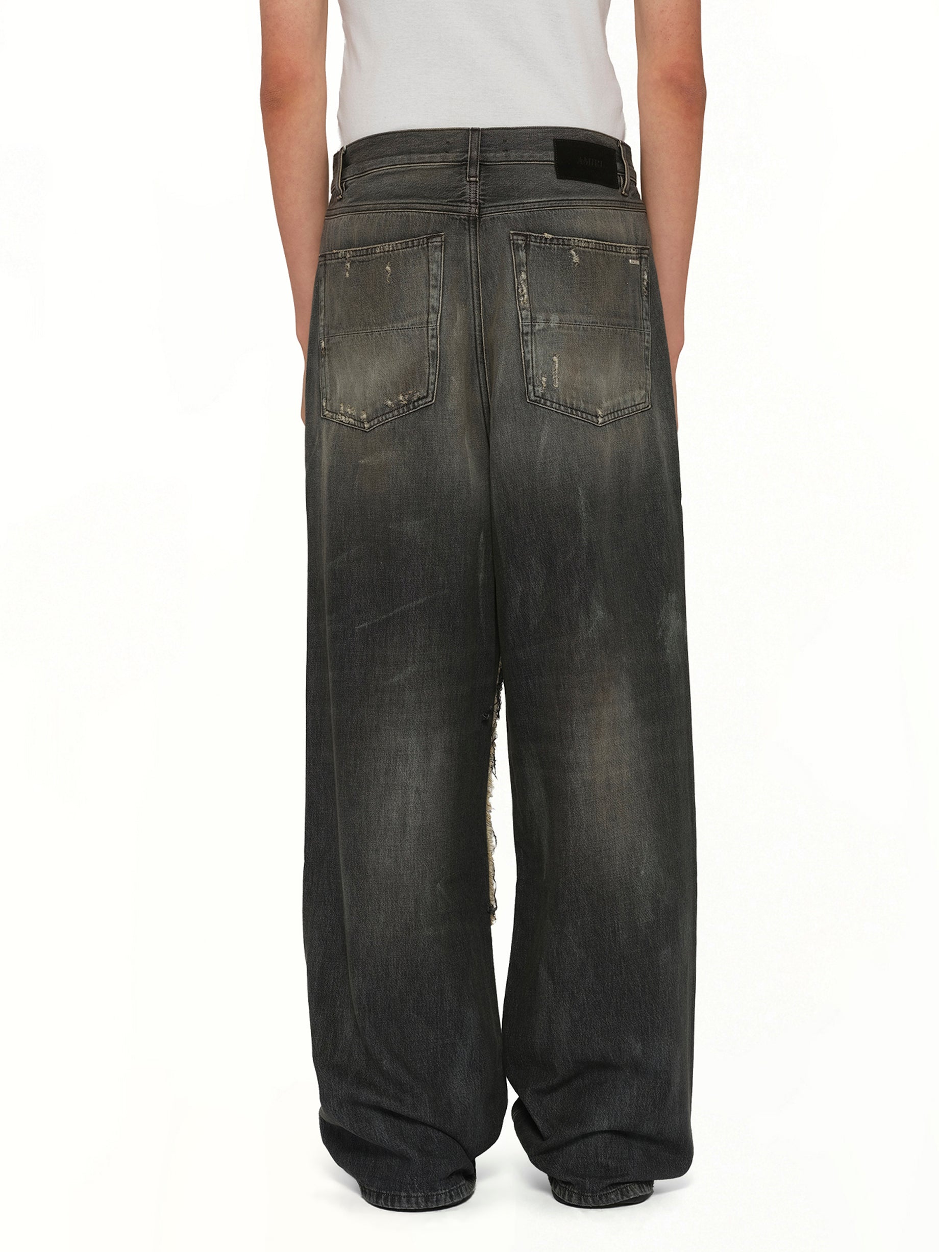 Amiri's Carpenter Repaired Baggy Jean in Crafted Black is a stylish blend of rugged design and modern fashion. These jeans feature a unique repaired look, offering a distinctive edge to any outfit.