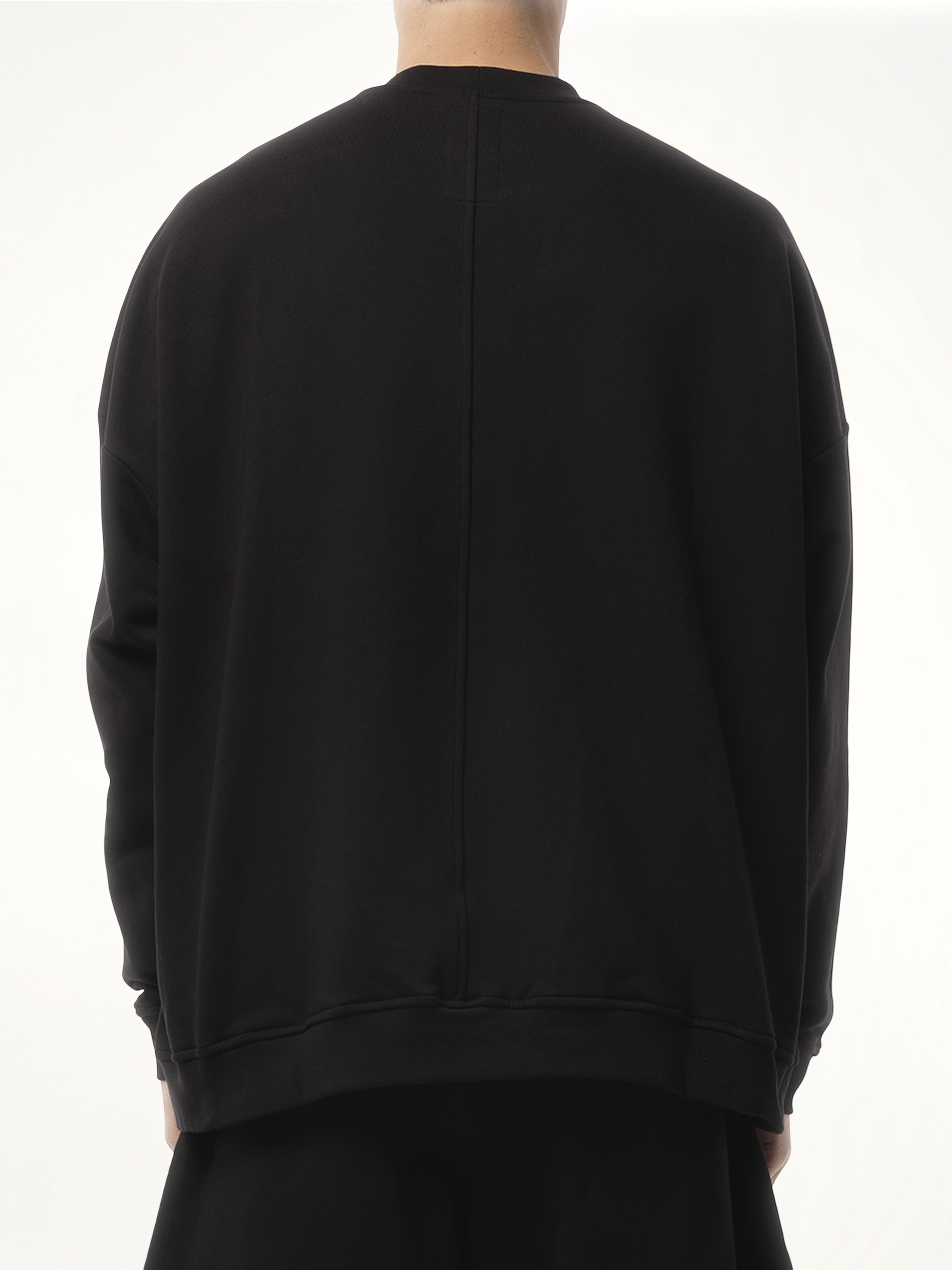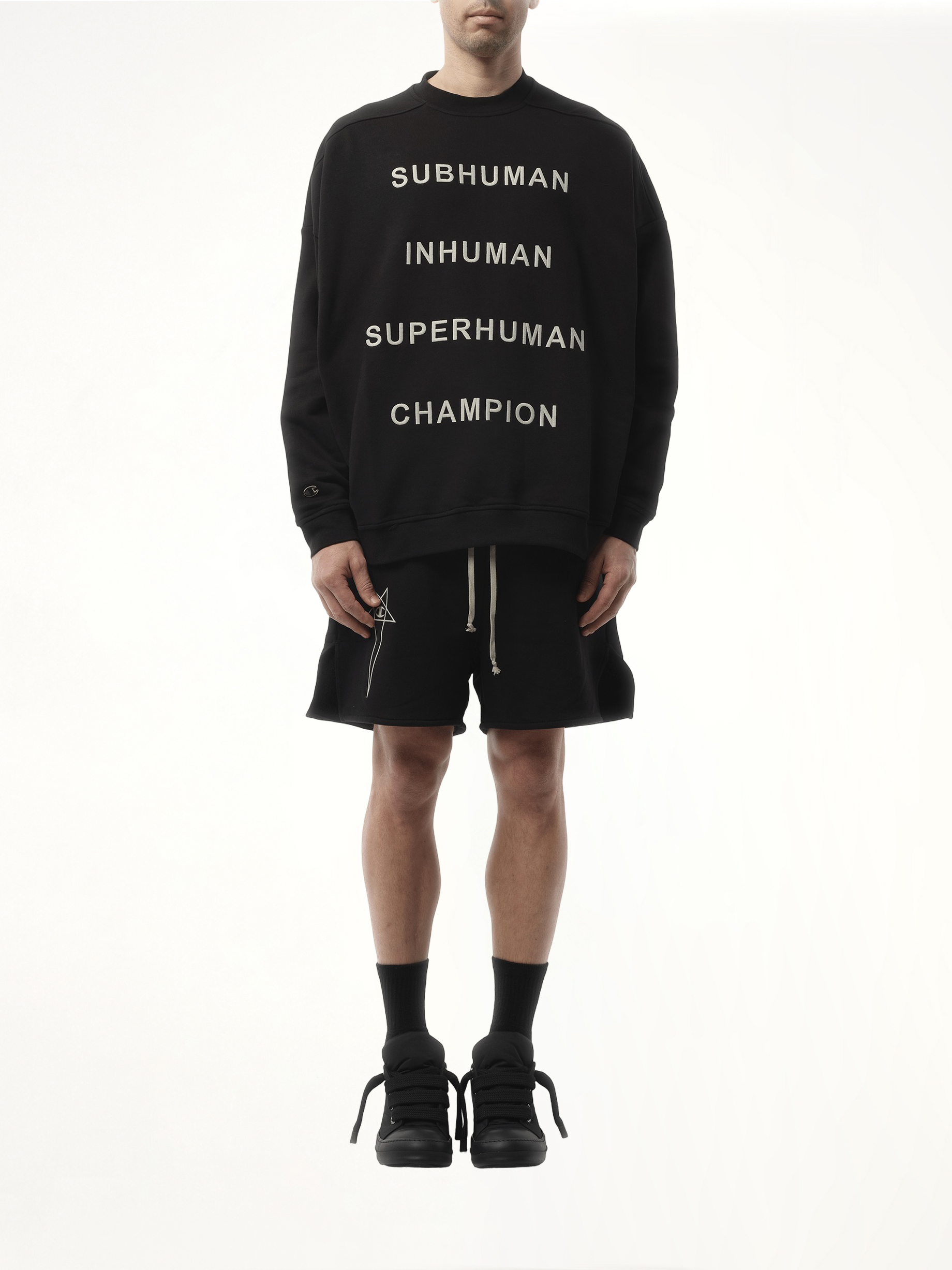 Rick Owens DRKSHDW's Champion x DRKSHDW Jumbo Sweatshirt in Black, this oversized sweatshirt is constructed from heavyweight cotton and features dropped shoulders, exaggerated proportions, and extended sleeves. A subtle co-branded detail at the chest nods to the collaborative roots.