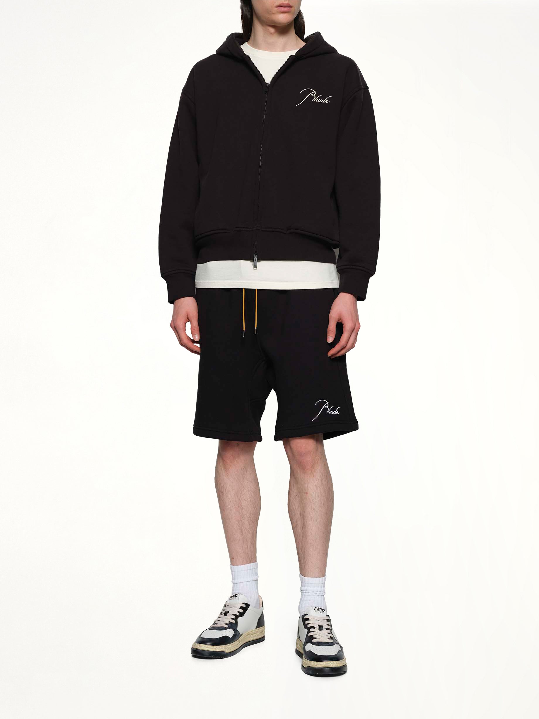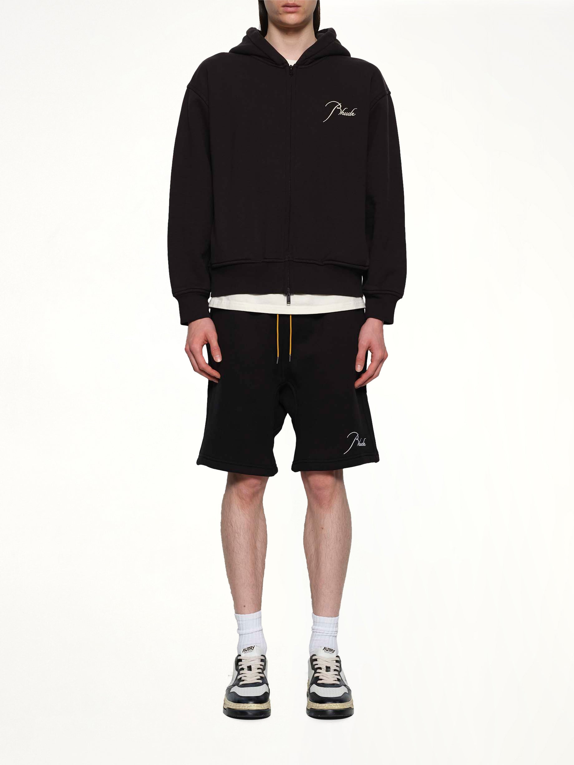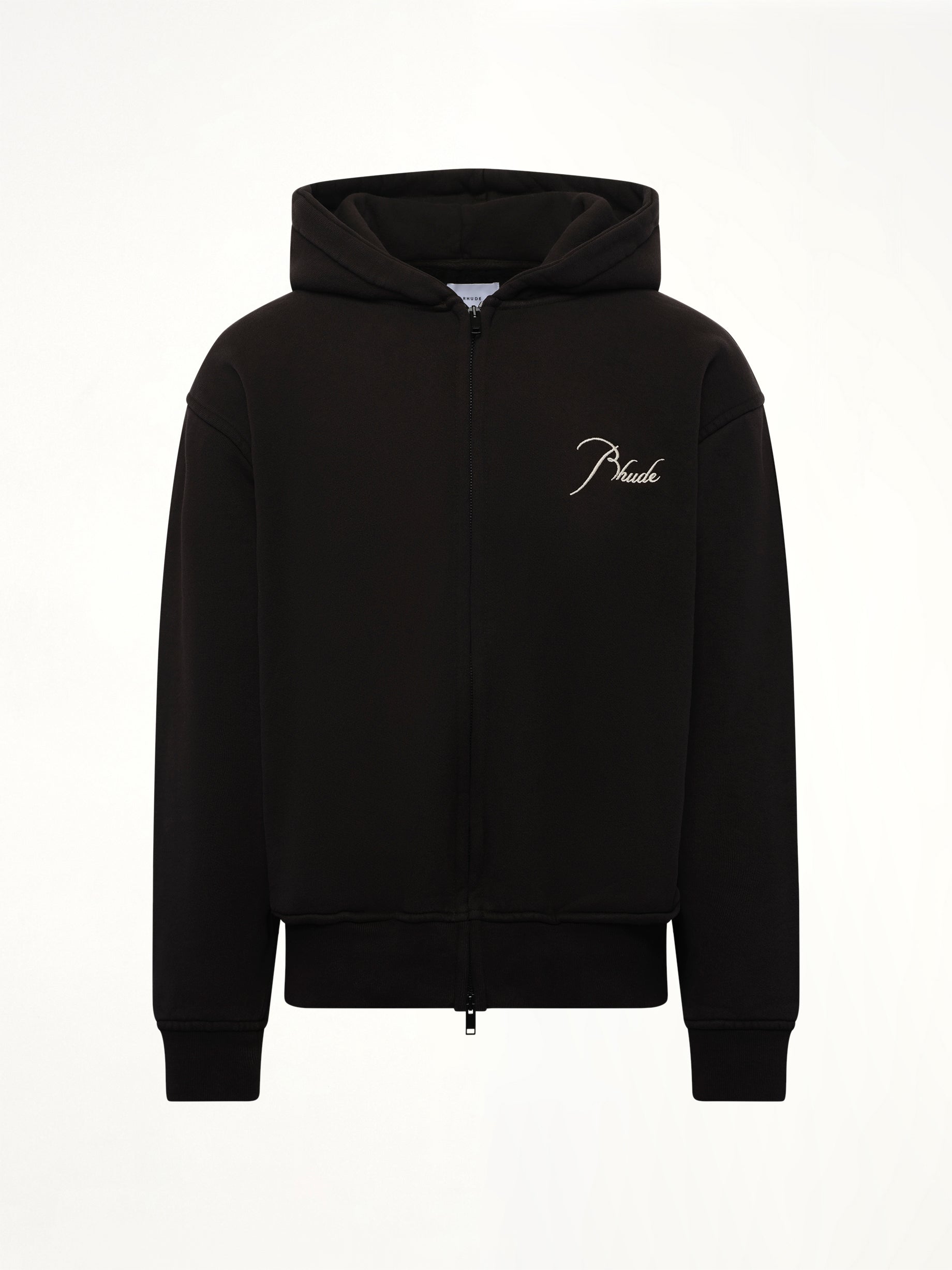 Rhude's Classique Zip Up Hoodie in Black/White is a stylish and versatile addition to any wardrobe. This hoodie combines comfort with a modern aesthetic, making it perfect for casual outings or relaxed days at home.