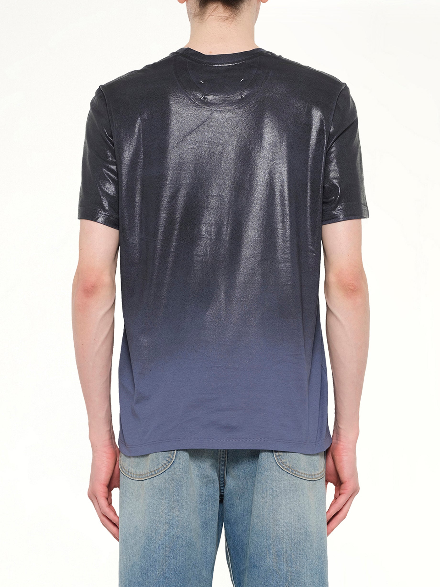 Maison Margiela's Coated T-Shirt in Lapis Blue is a striking piece that combines contemporary design with a bold color palette. This t-shirt features a unique coated finish that adds a modern twist to a classic silhouette.