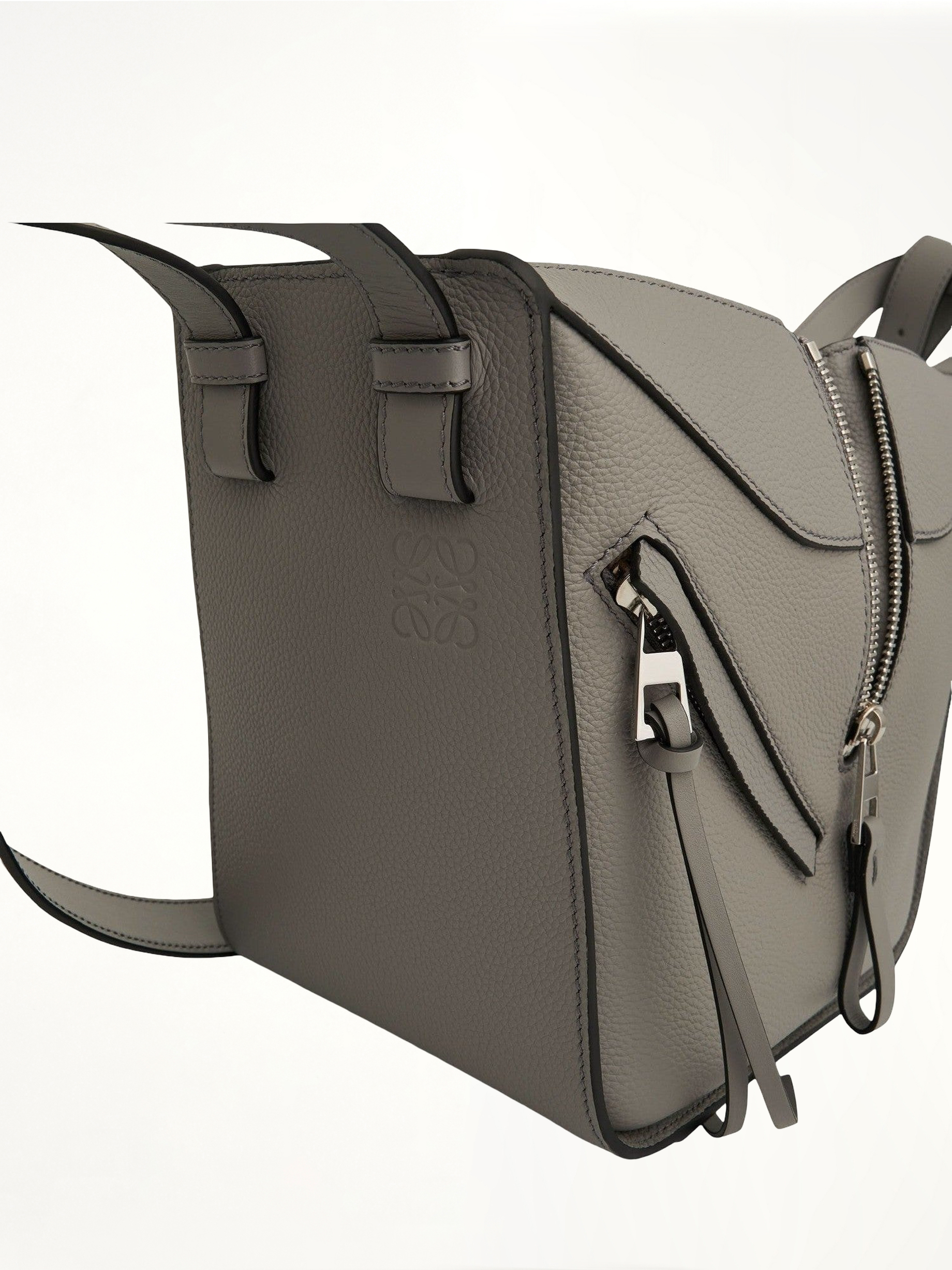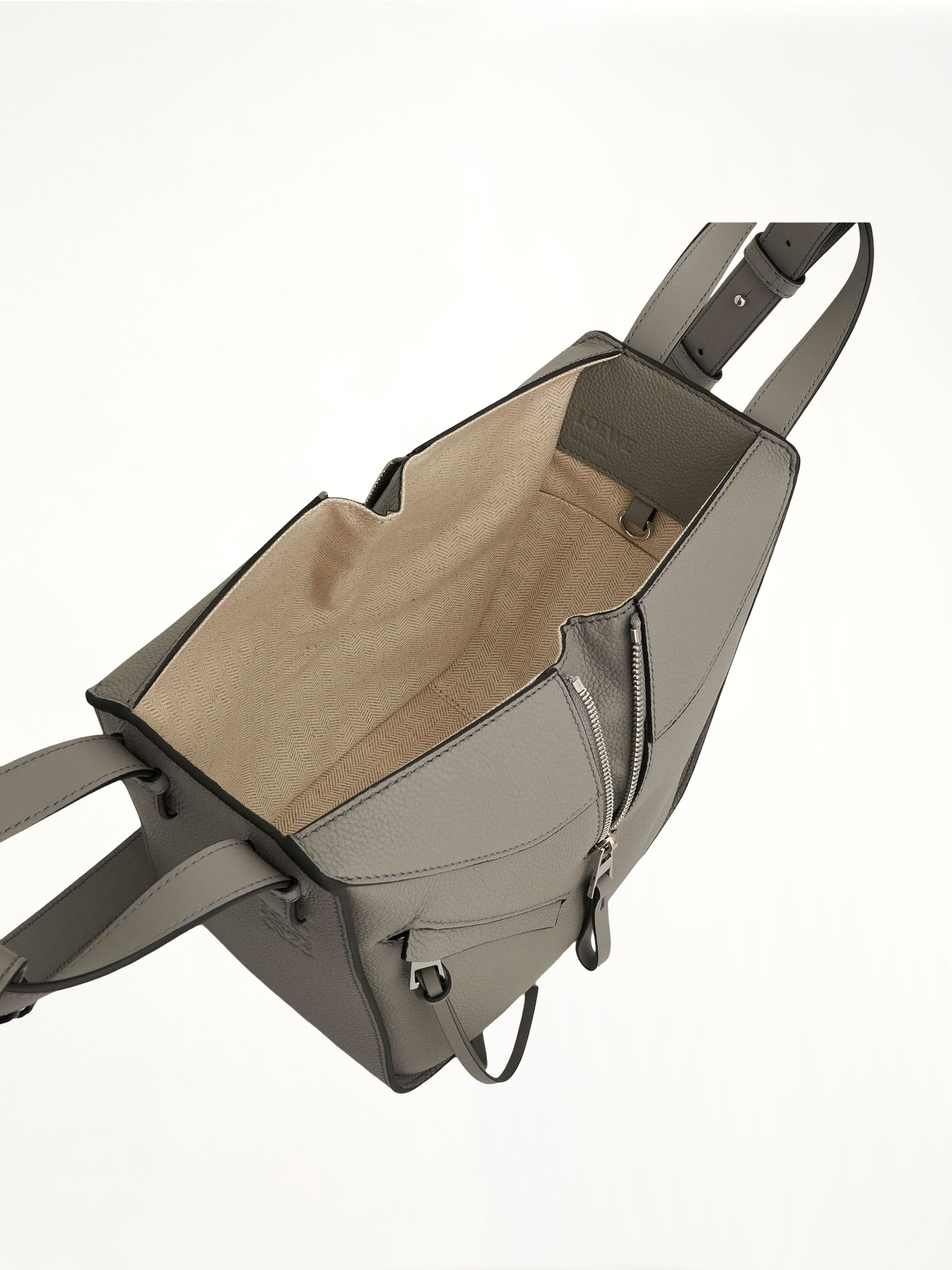 Compact Hammock Bag in Soft Grained Calfskin in Pearl Grey