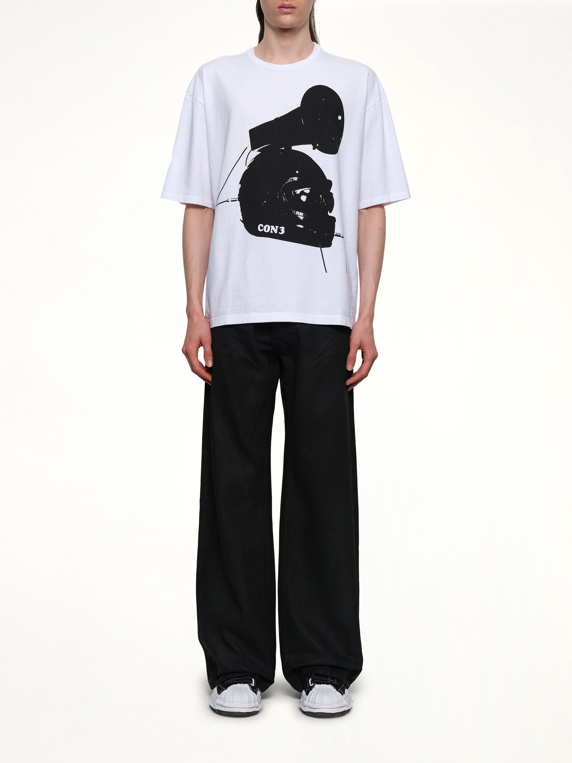 Undercover's Con 3 T-Shirt in White is a stylish and versatile piece that effortlessly blends comfort with contemporary design. Perfect for casual outings or layering, this t-shirt is a must-have addition to any wardrobe.