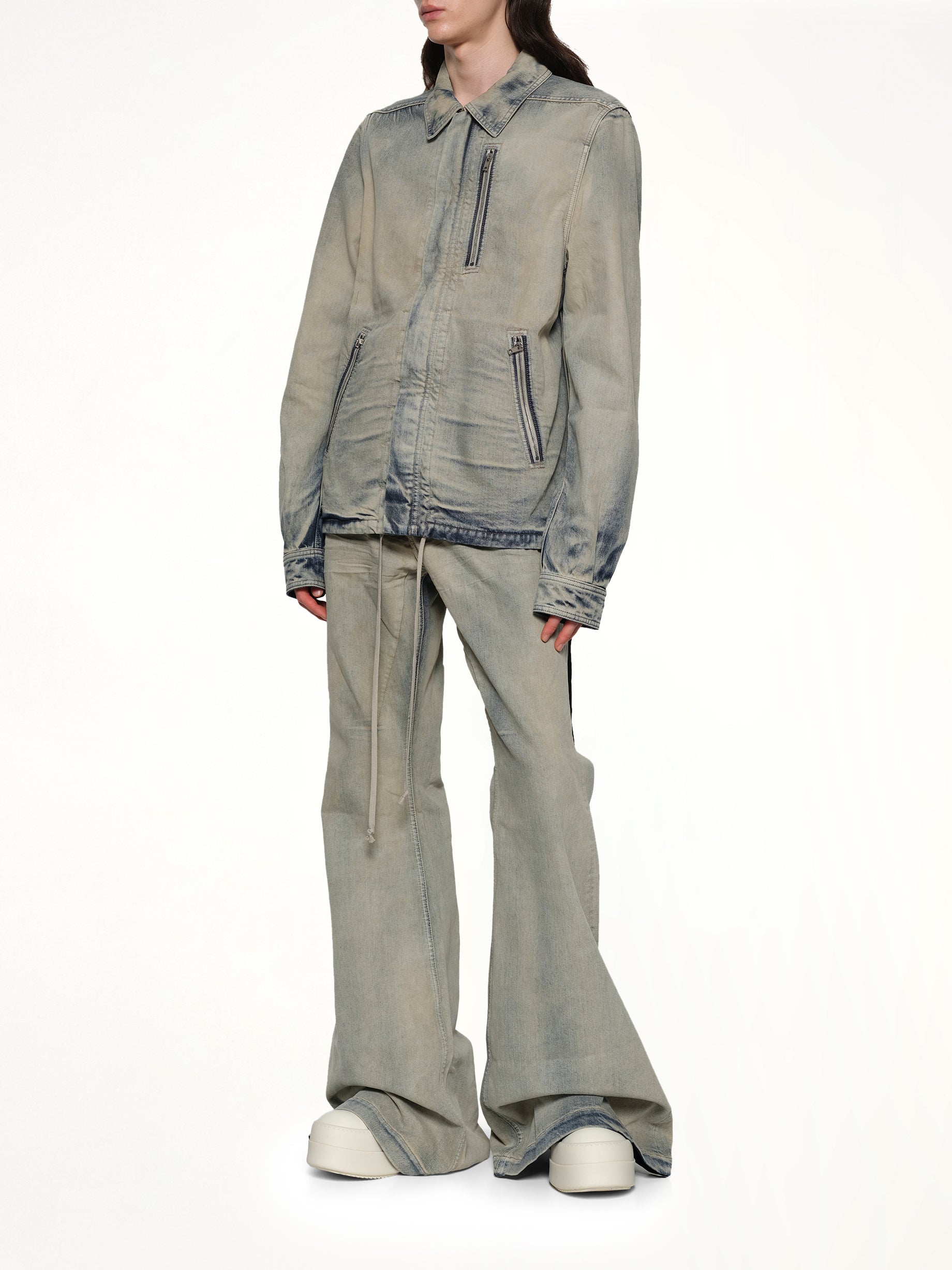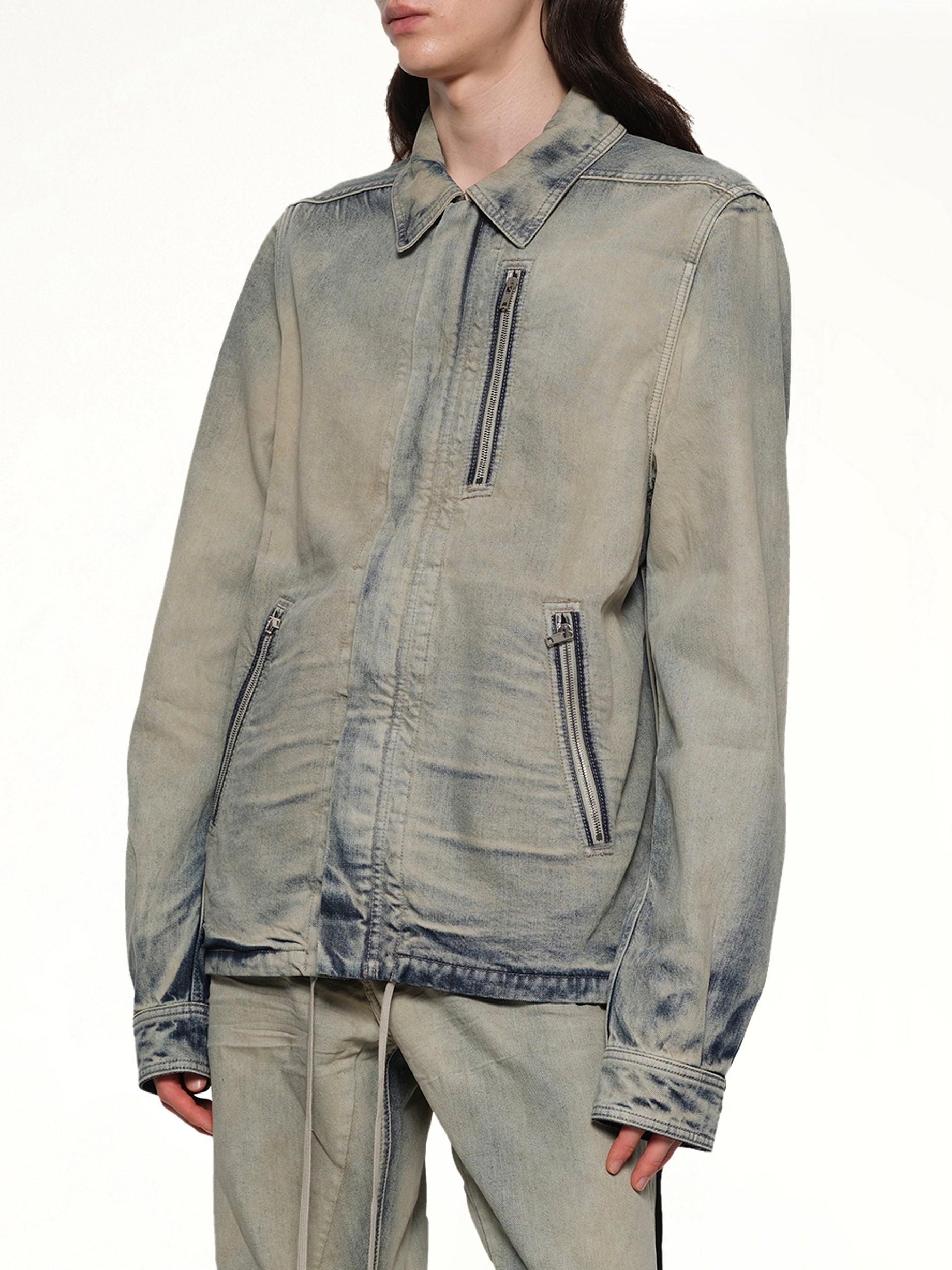 DRKSHDW's Concealed Zip Front Jacket in Mineral Pearl is a sleek and modern outerwear piece designed for versatility and style. Its minimalist design and unique color make it a standout addition to any wardrobe.